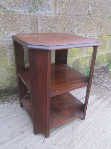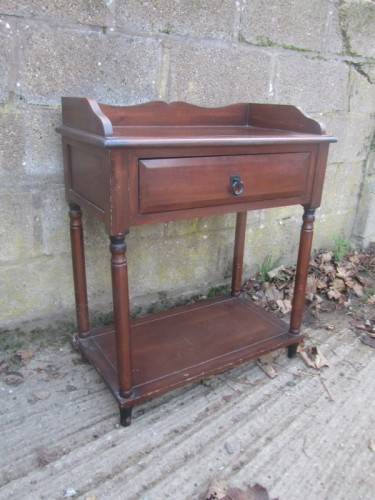 SMALL MAHOGANY EFFECT TABLE / SHELVES