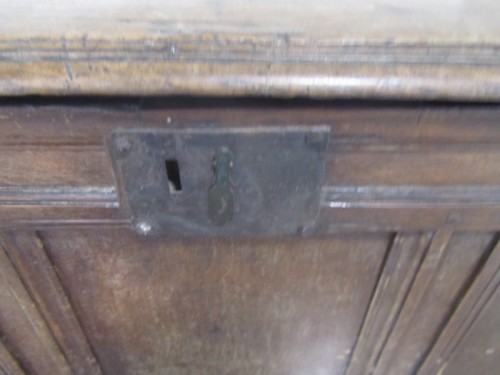 THIS IS A SOLID OAK CHEST. IT IS A RUSTIC COUNTRY PIECE DATING FROM THE 1700s. SIMPLE DESIGN. IT LIFTS UP TO GIVE STORAGE SPACE INSIDE.