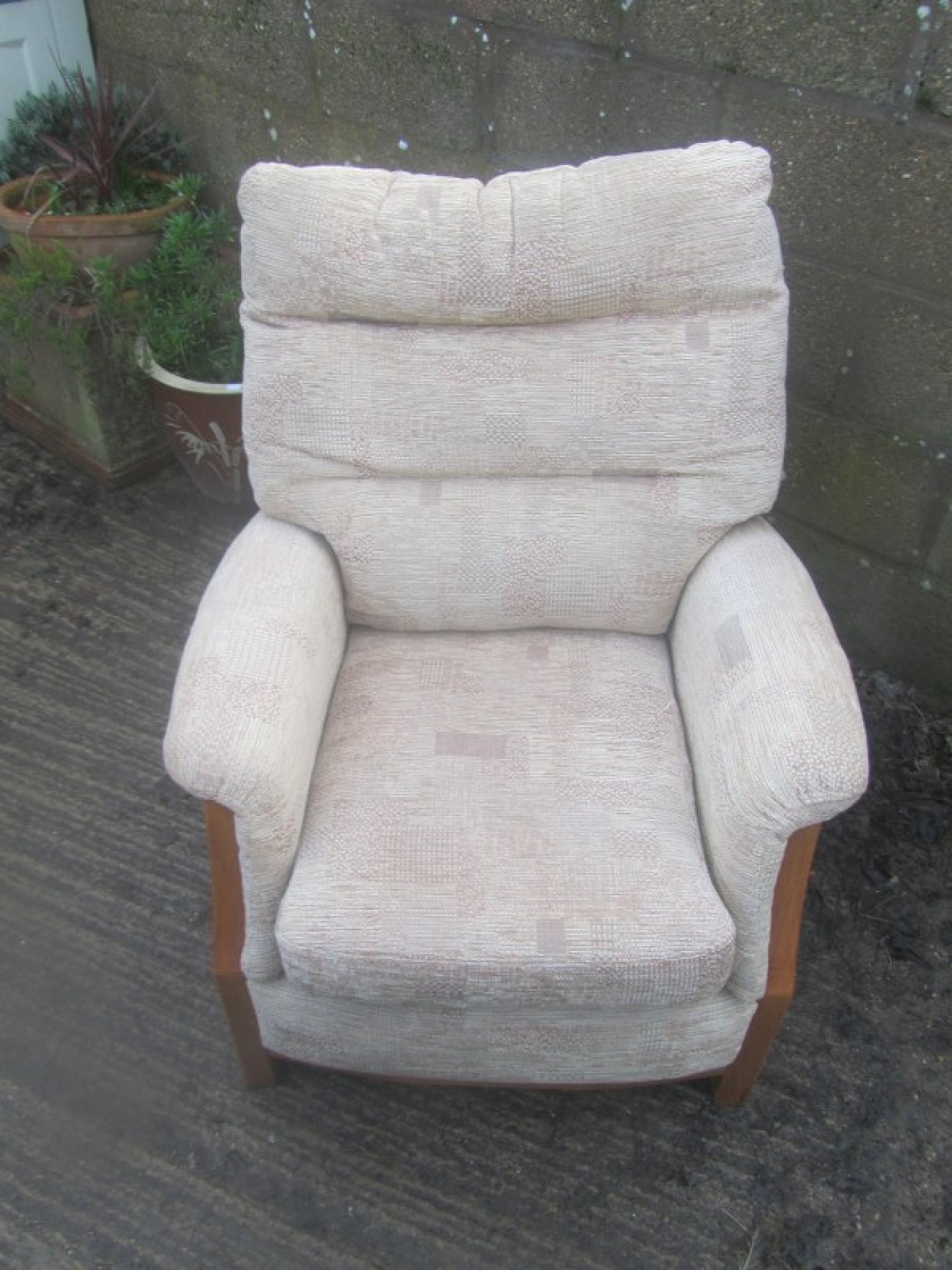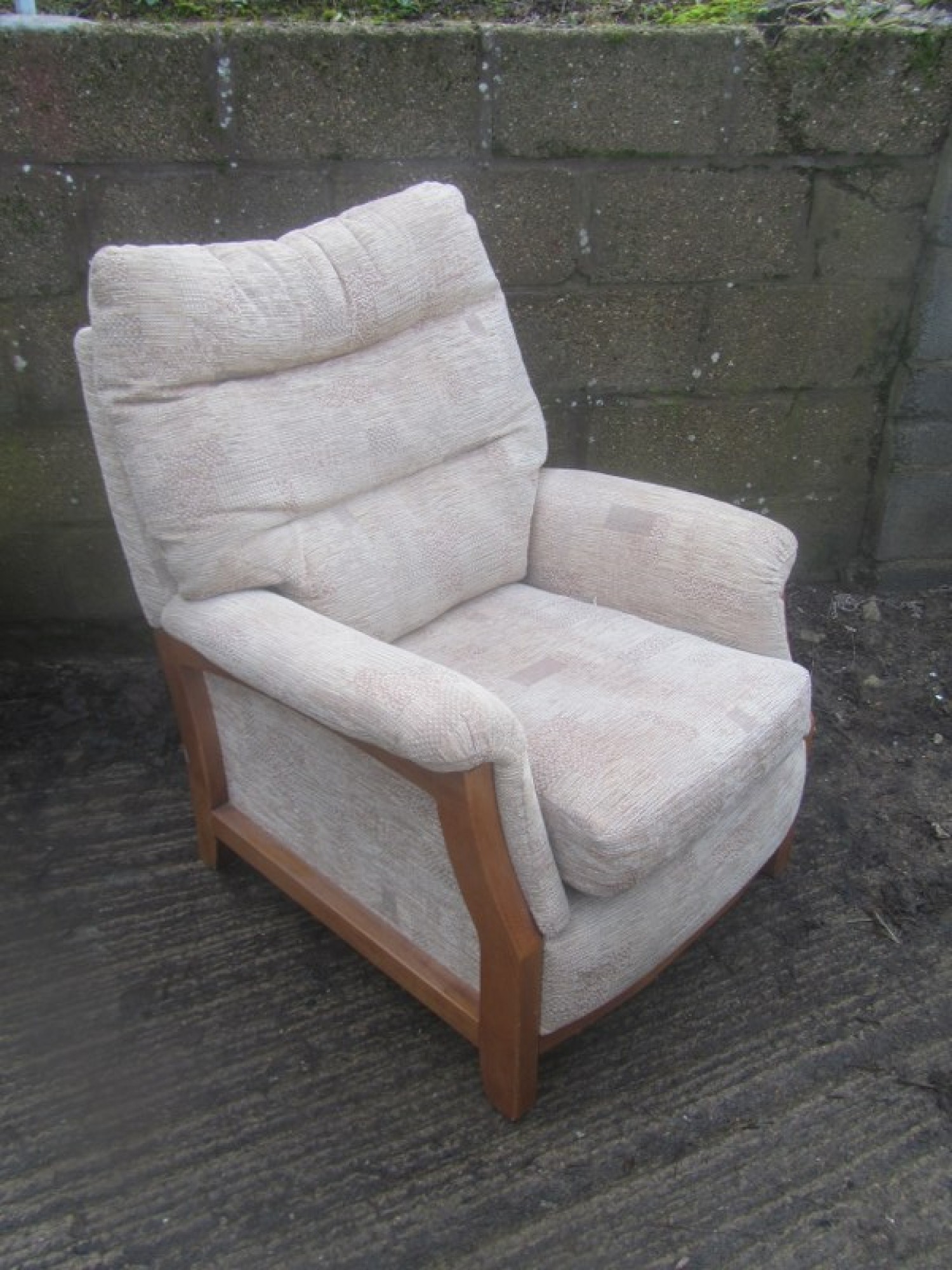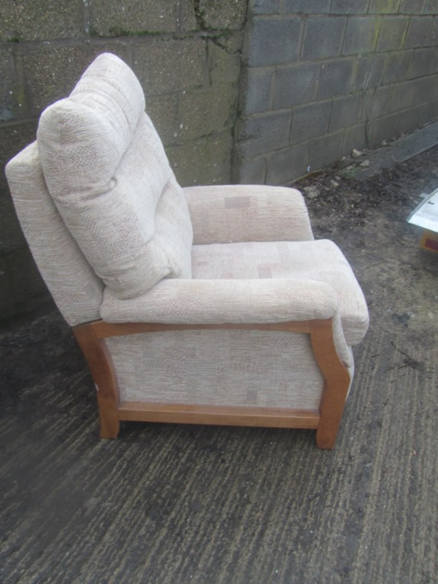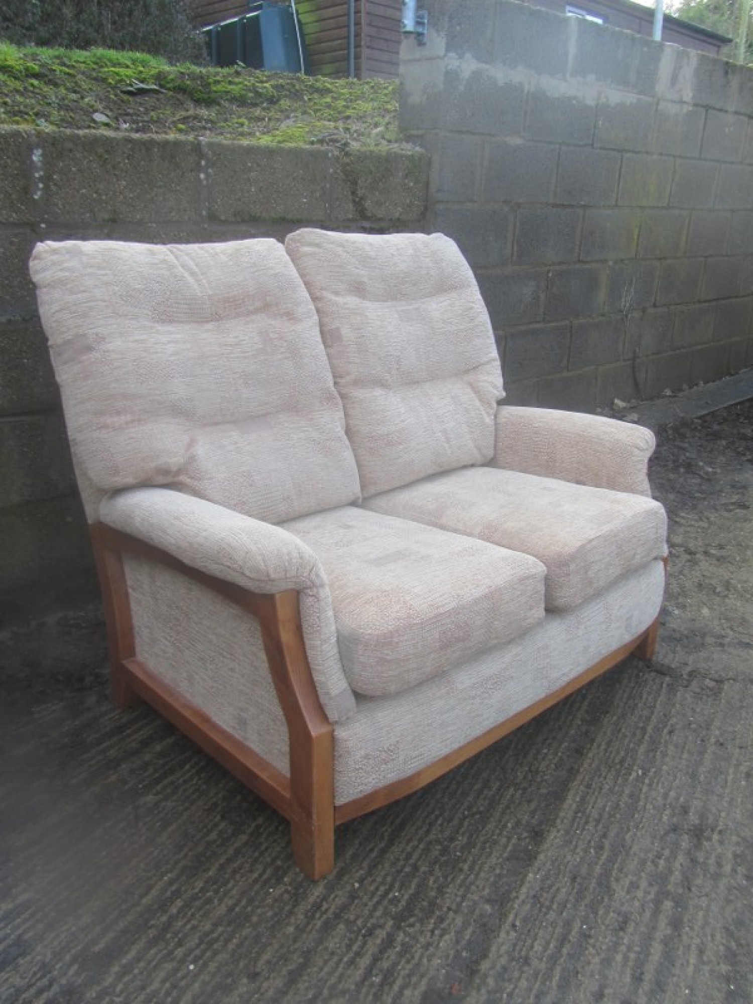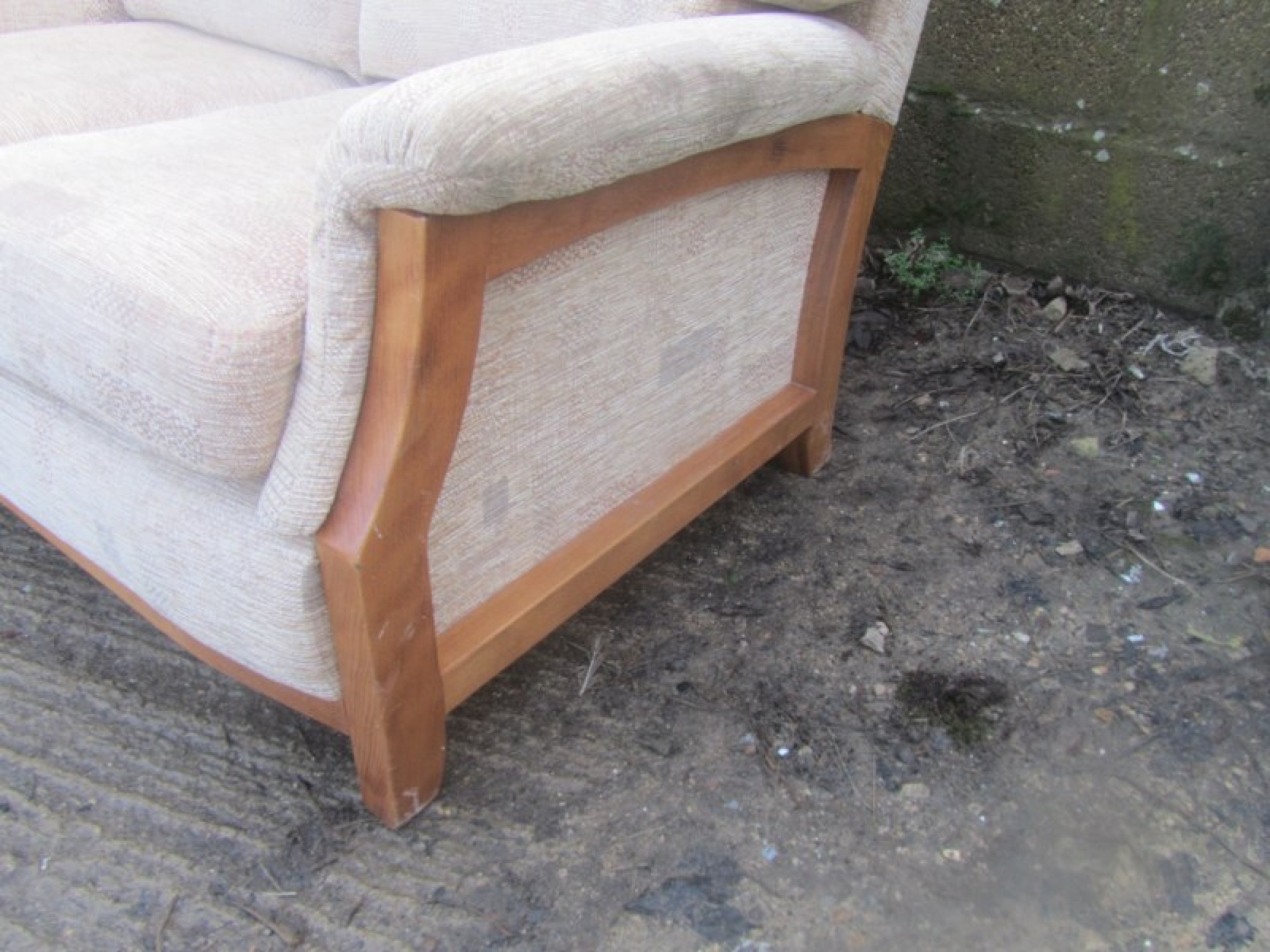 THIS IS A 2 PIECE SUITE, THERE IS A 3 SEATER SOFA AND 1 ARMCHAIR. THE SUITE IS COVERED IN CREAM COLOURED MATERIAL, REMOVABLE COVERS. IT IS COMFORTABLE, AVERAGE CONDITION. THE SOFA SIZES ARE BELOW. SEAT HEIGHT ON SOFA & CHAIRS IS 46cm. FOR SALE AS A SET.