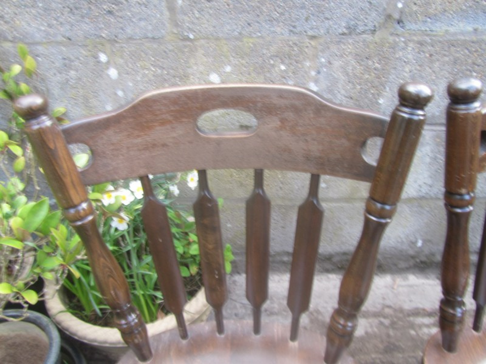 THIS IS A SET OF 4 CHAIRS FOR THE KITCHEN OR DINING ROOM. MADE IN SOLID BEECH, PLYWOOD SEAT, IN A DARK COLOUR. THIS IS A SET OF 4 CHAIRS. HEIGHT TO SEAT IS 44cm.