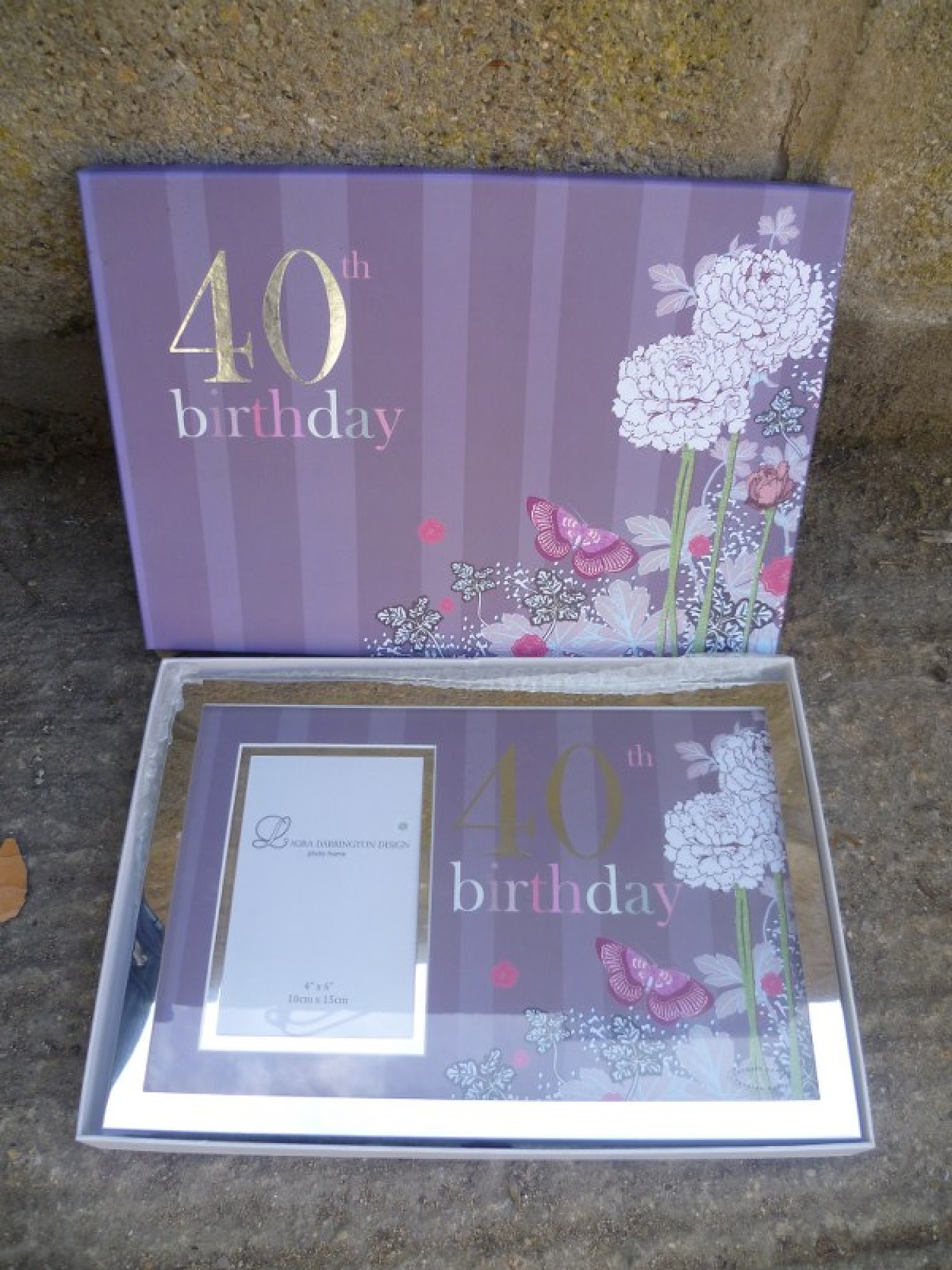 Items for Sale 40th BIRTHDAY PICTURE FRAME Share: View Larger Image Select to enlarge £ 3 A 40th BIRTHDAY PICTURE FRAME. ADDITIONAL DETAILS RESERVE ITEM Condition:GOOD Height:23 cms Length:33 cms Quantity:1 Item Number:28488 * Please complete all the fields below to send an enquiry about this product. Please reserve this item for me… Reset Send