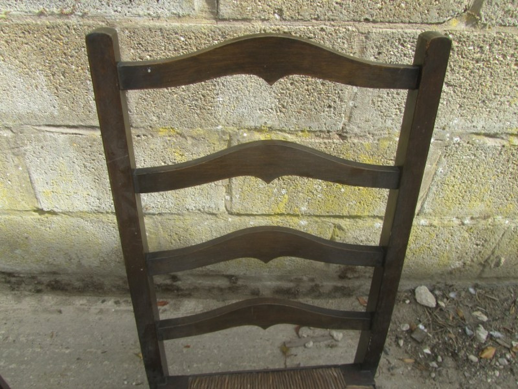 THIS IS A PAIR OF SOLID WOOD CHAIRS IN A TRADITIONAL DESIGN. A SIMPLE STYLISH BACK. THE THE SEATS ARE WOVEN. SOME WEAR.
