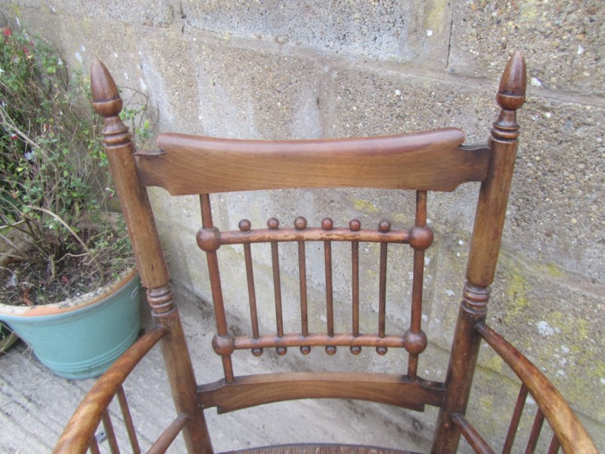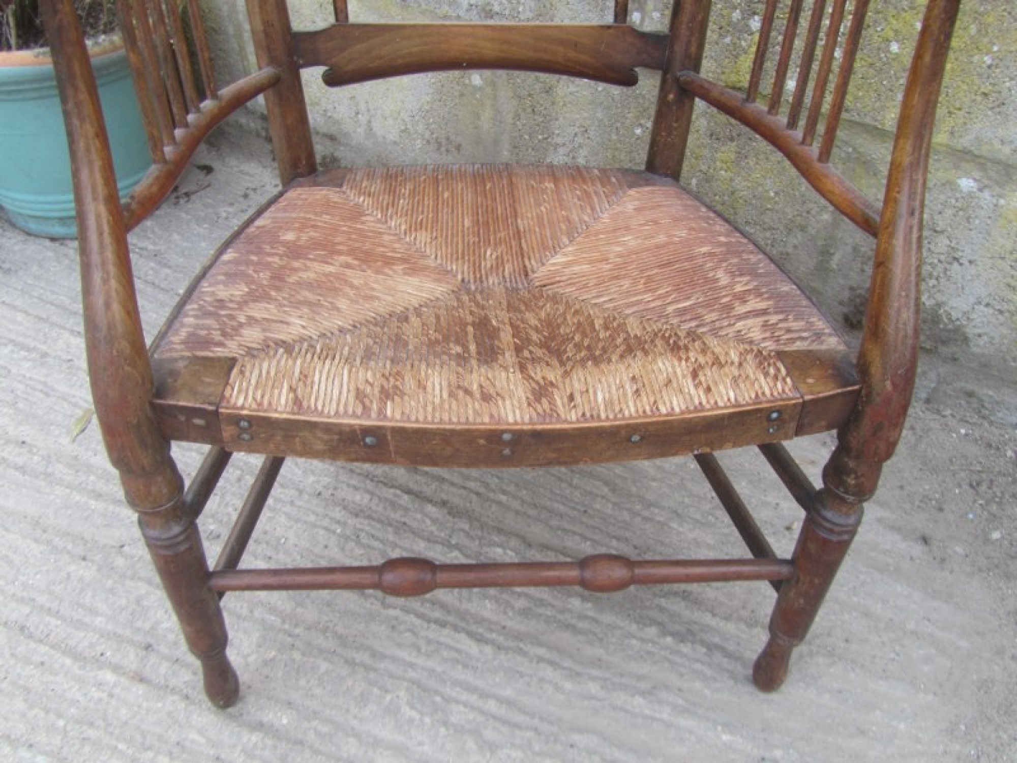 THIS IS A SOLID WOOD ARMCHAIR IN A SECESSIONIST STYLE DESIGN. A SIMPLE STYLISH CHAIR WITH WOVEN BACK REST. THIS DATES FROM AROUND THE 1900s. THE CHAIR IS IN AVERAGE CONDITION, HEIGHT TO SEAT - 38cm.