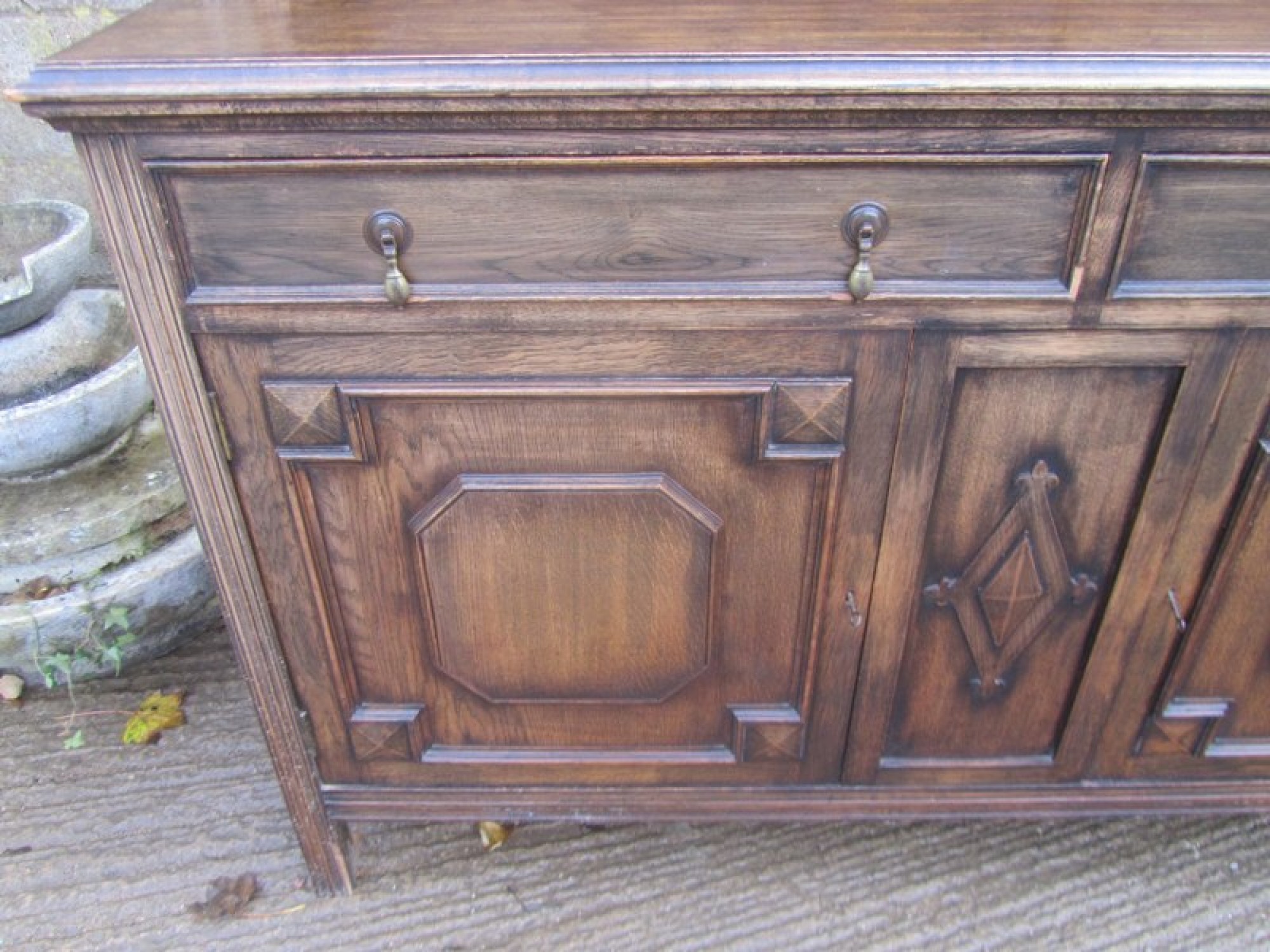 THIS IS A LARGE SIDEBOARD FROM THE 1930s. IT HAS A CABINET EACH SIDE. THERE ARE DRAWERS ABOVE AND PLENTY OF STORAGE SPACE.