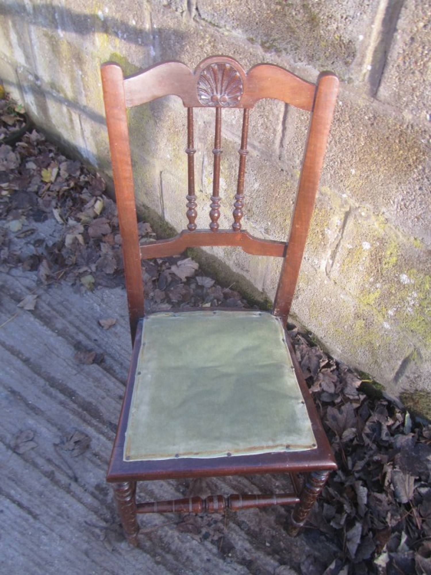 A BEDROOM CHAIR FROM AROUND THE 1900s. THERE IS a DECORATIVE BACK REST. HEIGHT TO SEAT IS 44cm. THE SEATS MATERIAL, EASY TO RECOVER.