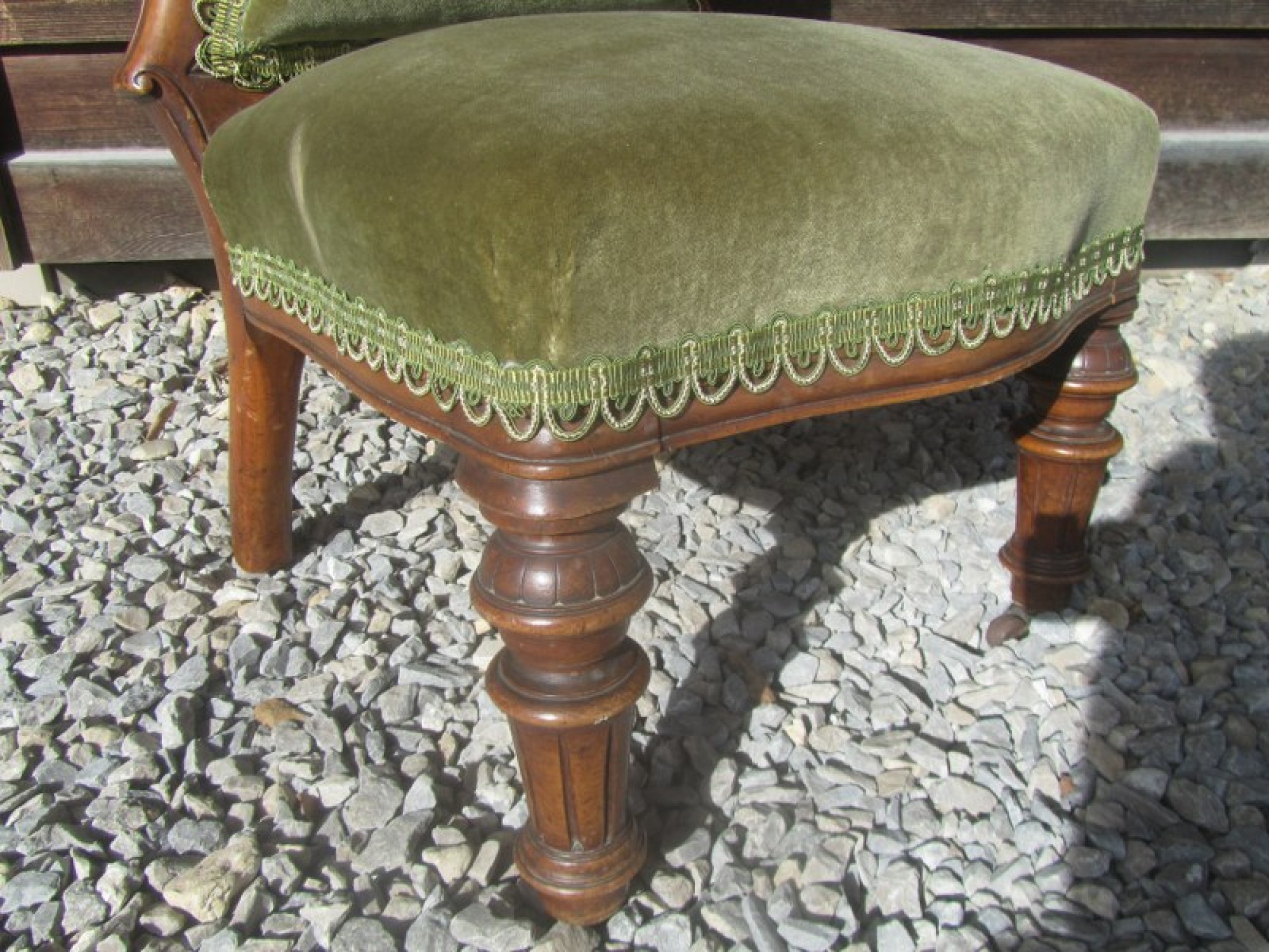 THIS IS A LOW NURSING CHAIR. IT DATES FROM AROUND THE 1880s. THERE IS DECORATIVE DETAIL ON THE LEGS. THE FRAME IS FAIRLY STURDY. IN GOOD CONDITION. IDEAL FOR ANYWHERE IN THE HOME. MINOR WEAR AND TEAR. HEIGHT TO SEAT IS 37cm.