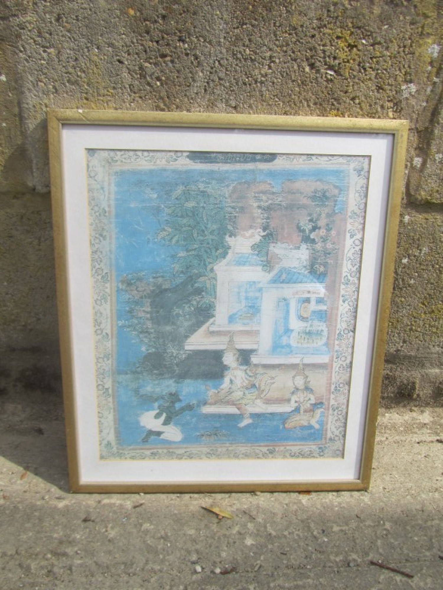 LARGE FRAMED COLOUR PRINT. IN A FRAME. TITLED VESSANTARA JATAKA.