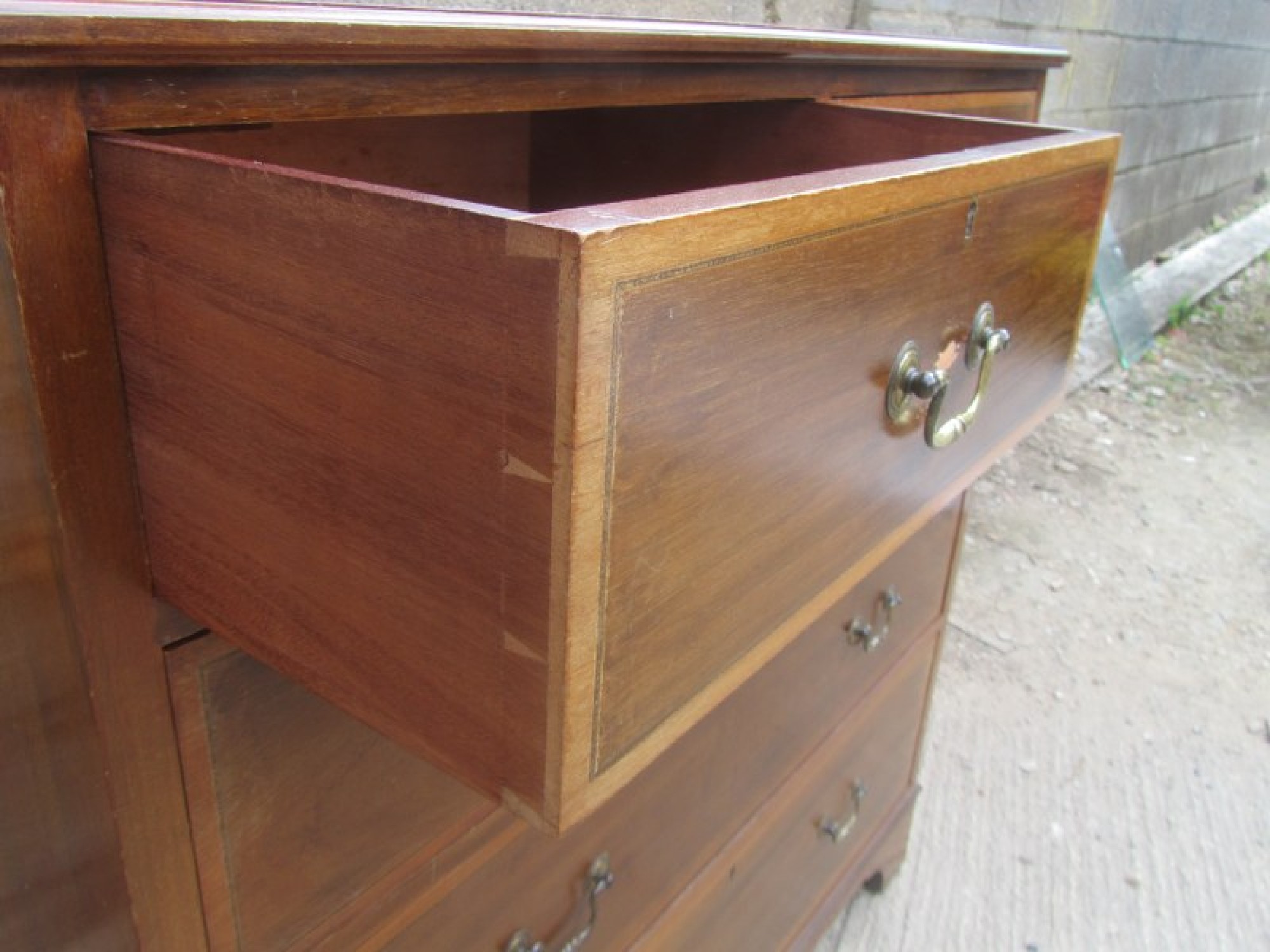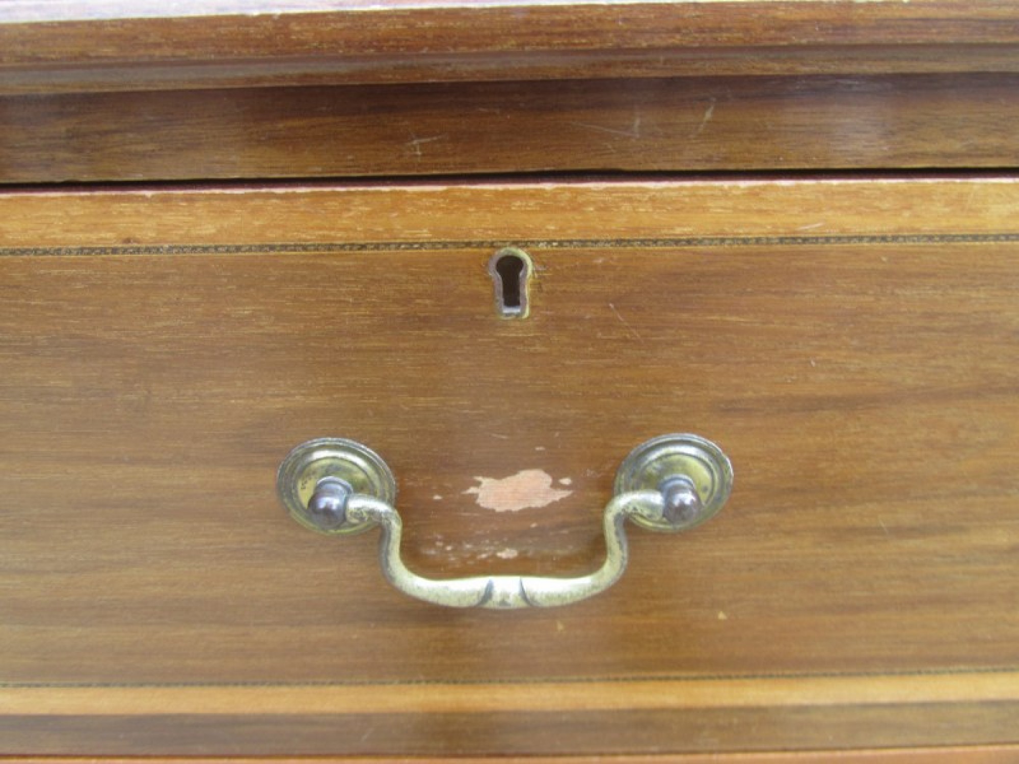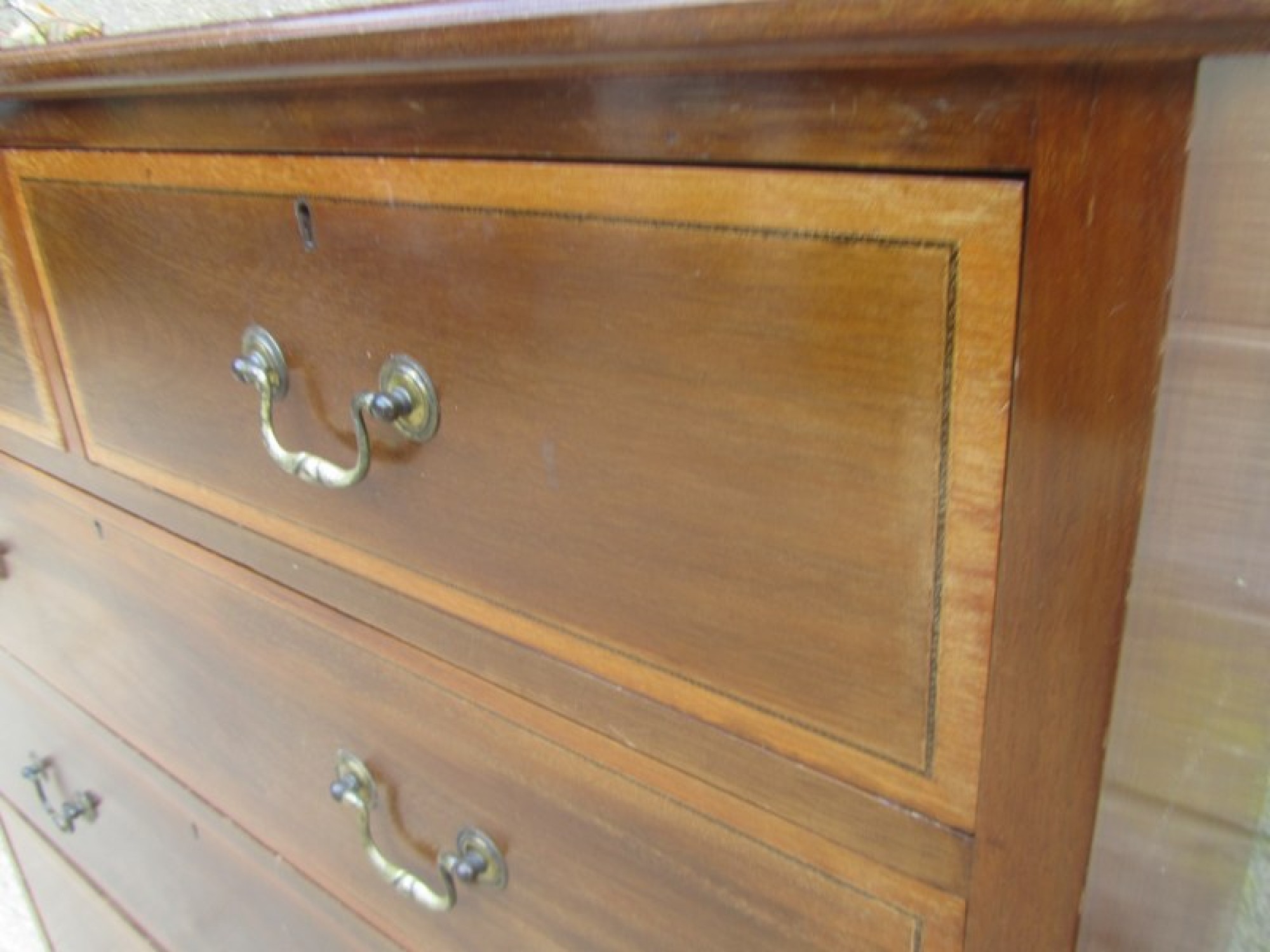 THIS IS A LARGE CHEST OF DRAWERS FROM THE EDWARDIAN PERIOD. IT HAS 2 SMALL DRAWERS OVER LARGE GRADUATED DRAWERS. EACH DRAWER HAS METAL HANDLES AND HAND CUT DOVETAIL JOINTS.