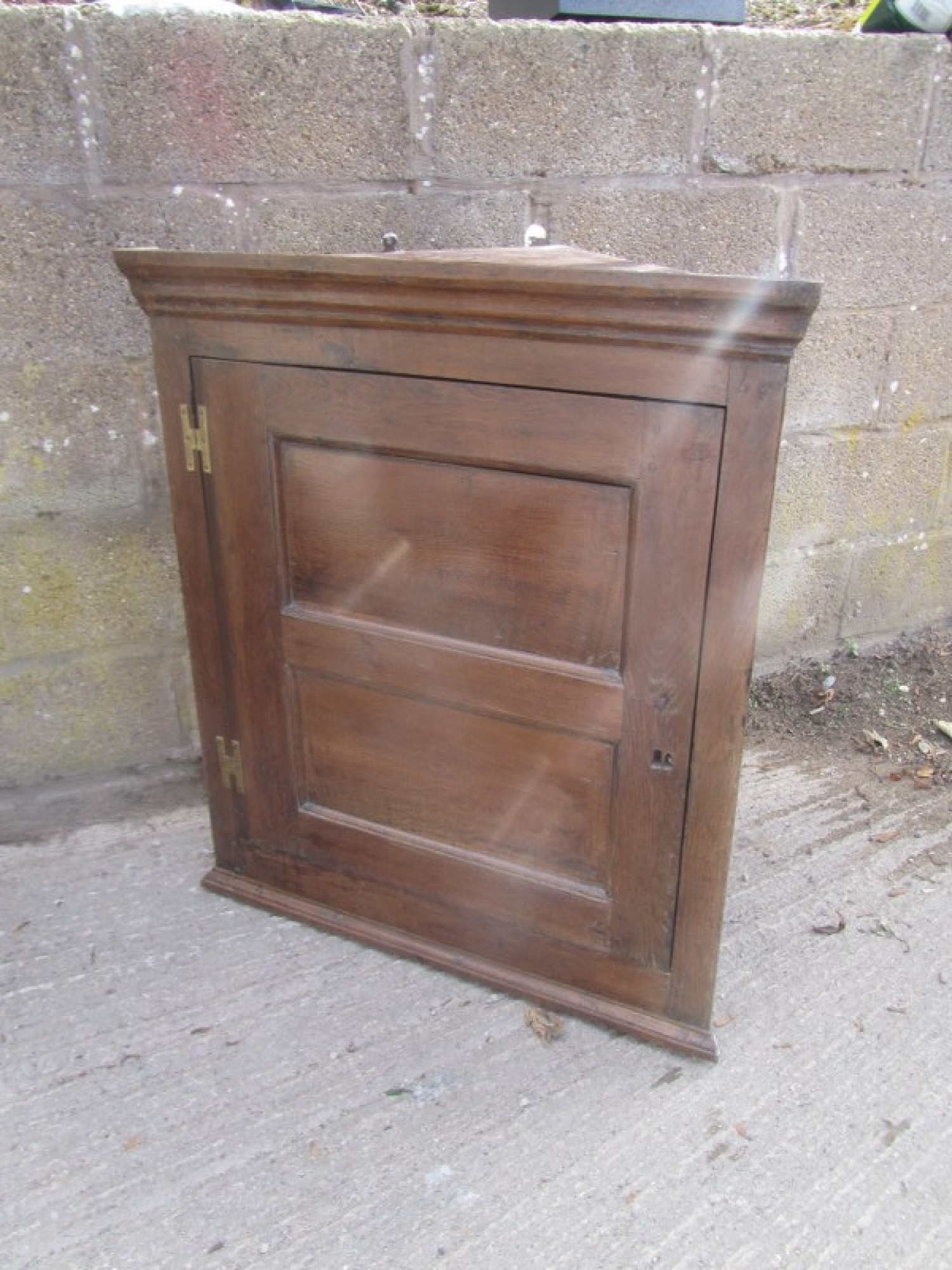 A LARGE WALL HANGING OAK CABINET FOR ANYWHERE IN THE HOME. AN EARLY 19th CENTURY CABINET, HEAVY OAK. SHELVES INSIDE.