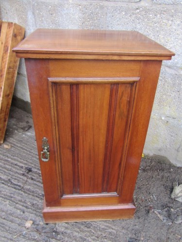 AN ANTIQUE BEDSIDE CABINET WITH A SINGLE DOOR, SATINWOOD. SOME MARKS.