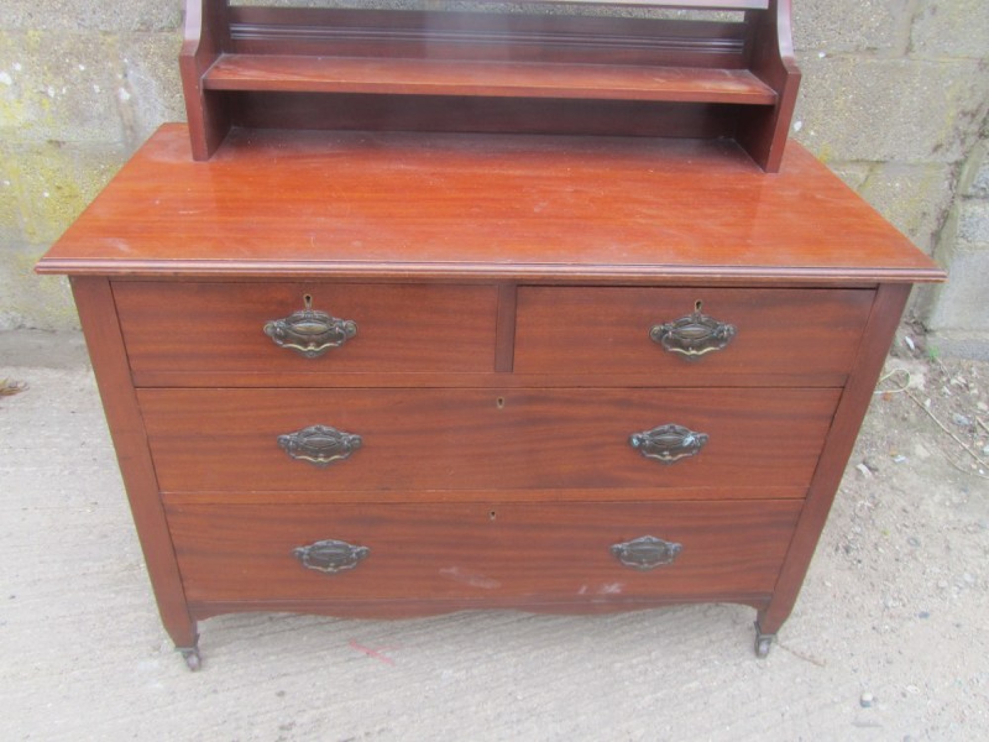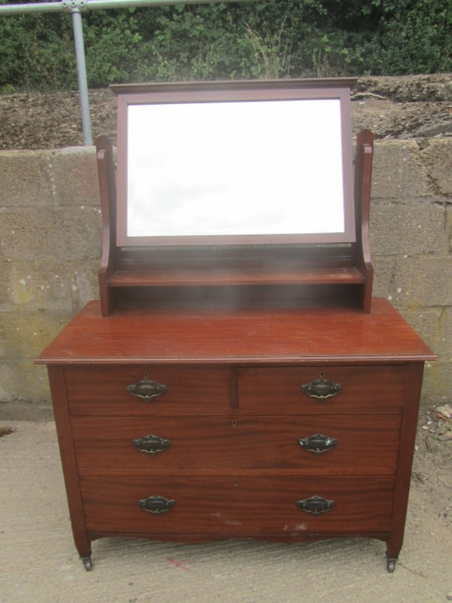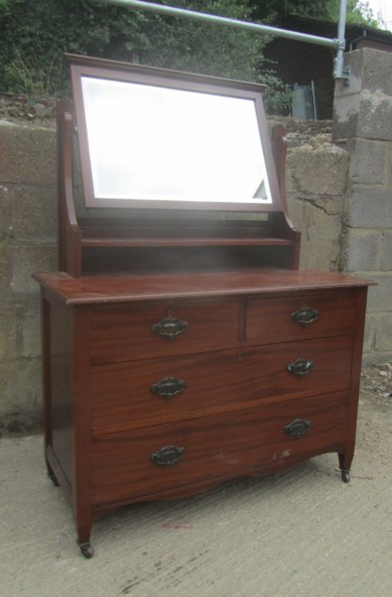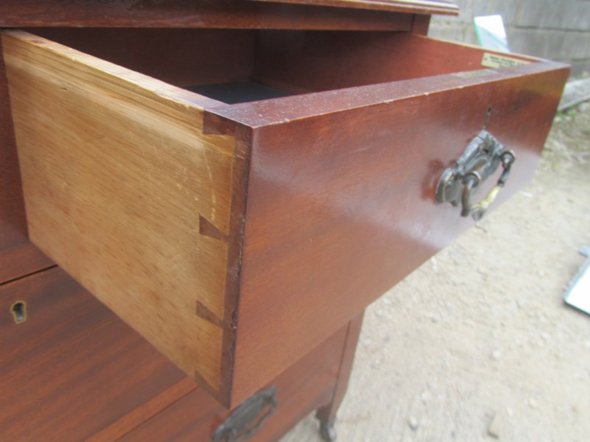 THIS IS A STYLISH ANTIQUE DRESSING TABLE, THE DRAWERS ARE DOVETAILED. GOOD QUALITY. IT IS STRONG AND STURDY. MIRROR ABOVE.