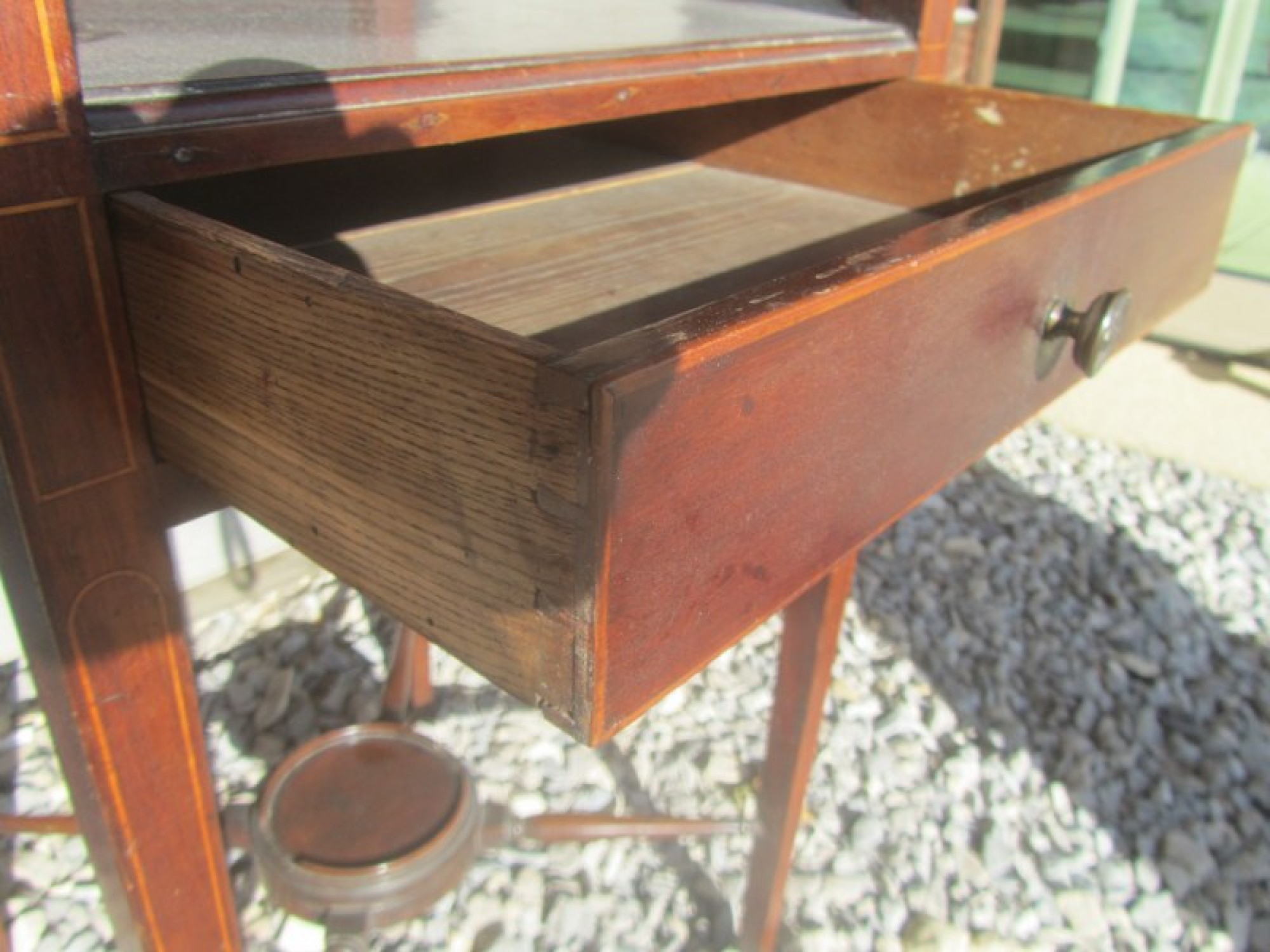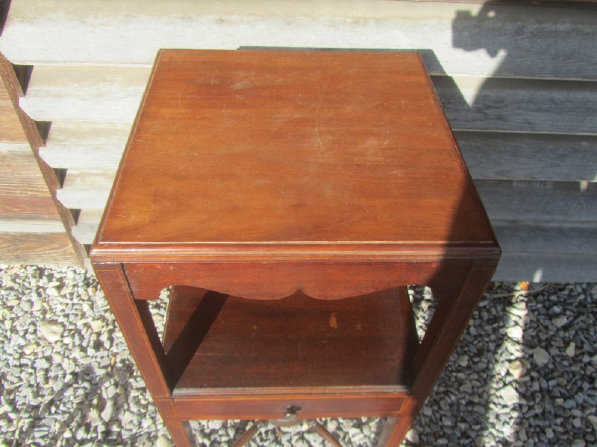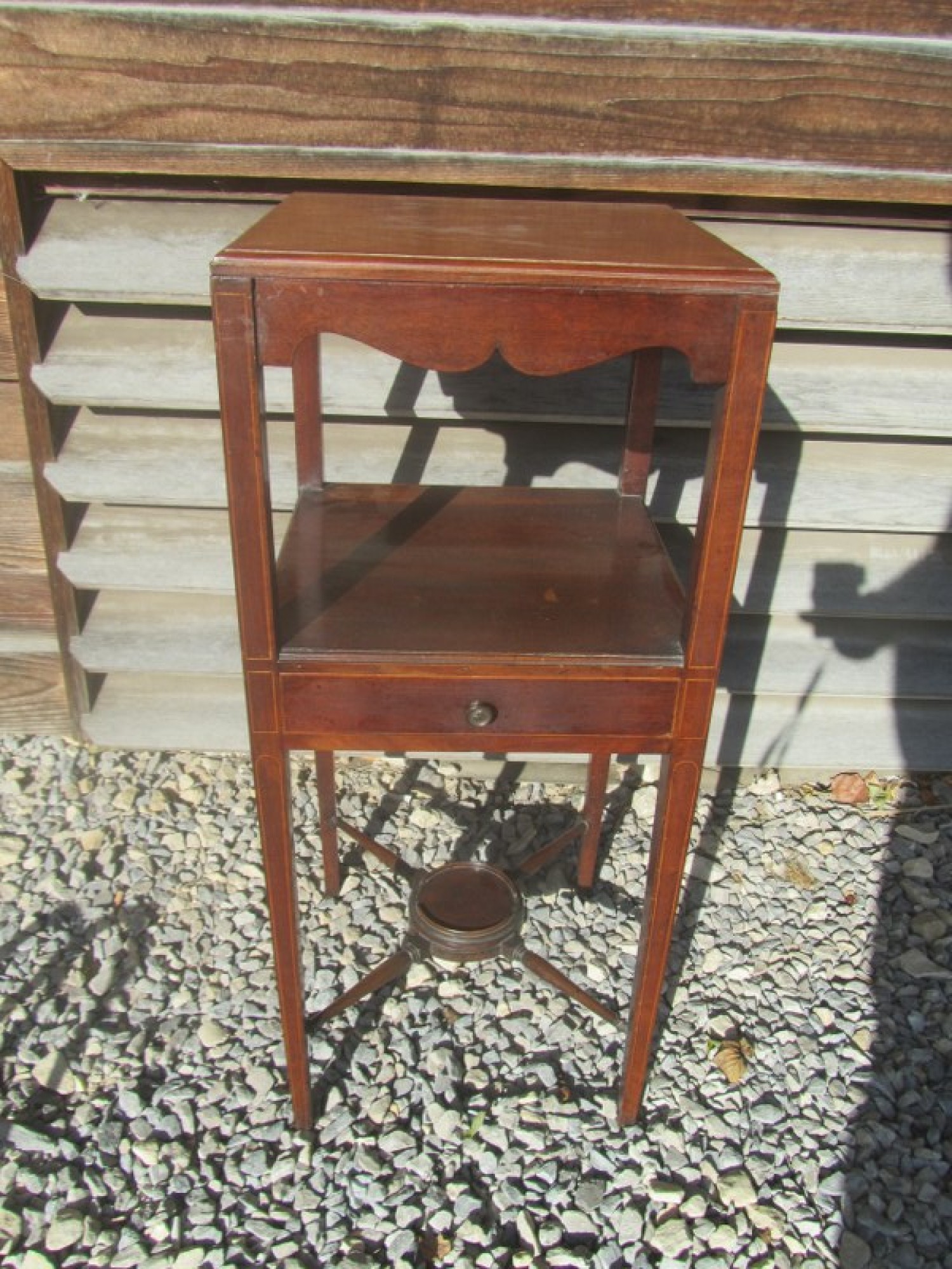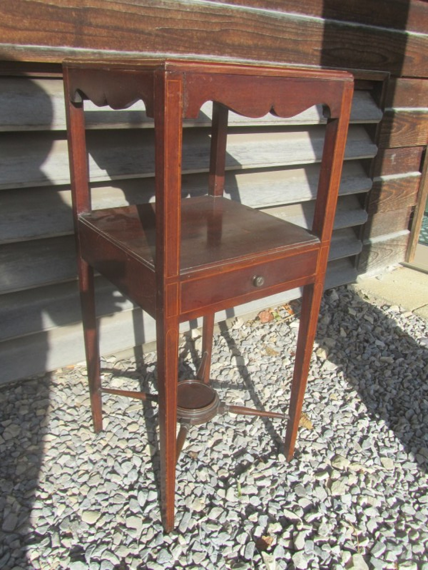THIS IS AN ANTIQUE VICTORIAN WASH STAND. IT IS MAHOGANY AND STANDS ON TURNED LEGS, WITH DRAWER. IT HAS SUFFERED WITH WOOD WORM IN THE PAST, IT IS PROBABLY LONG DEAD! BUT I WOULD RECOMMEND TREATING IT TO BE SURE.
