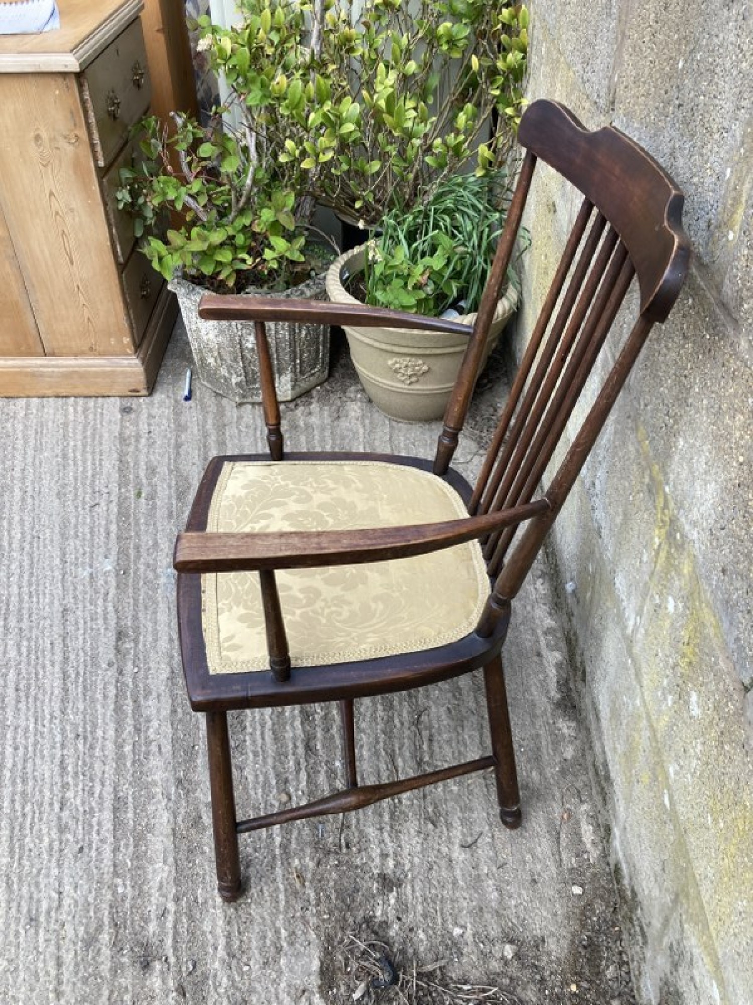 THIS IS A STUNNING WALNUT CHAIR FROM THE EARLY 20th CENTURY. SOLID BEECH FRAME. THE SEAT'S UPHOLSTERED IN MATERIAL.