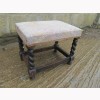 THIS IS A VINTAGE STOOL OR TABLE FROM THE 1920s. MADE FROM SOLID OAK WITH BARLEY TWIST LEGS AND A MATERIAL SEAT.
