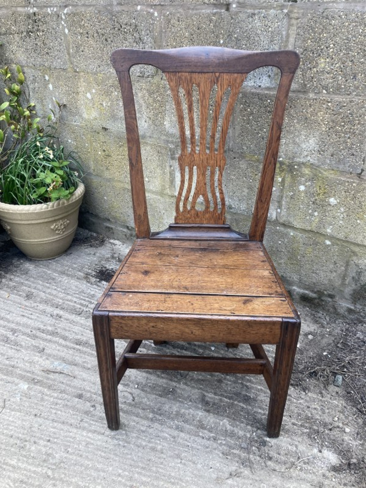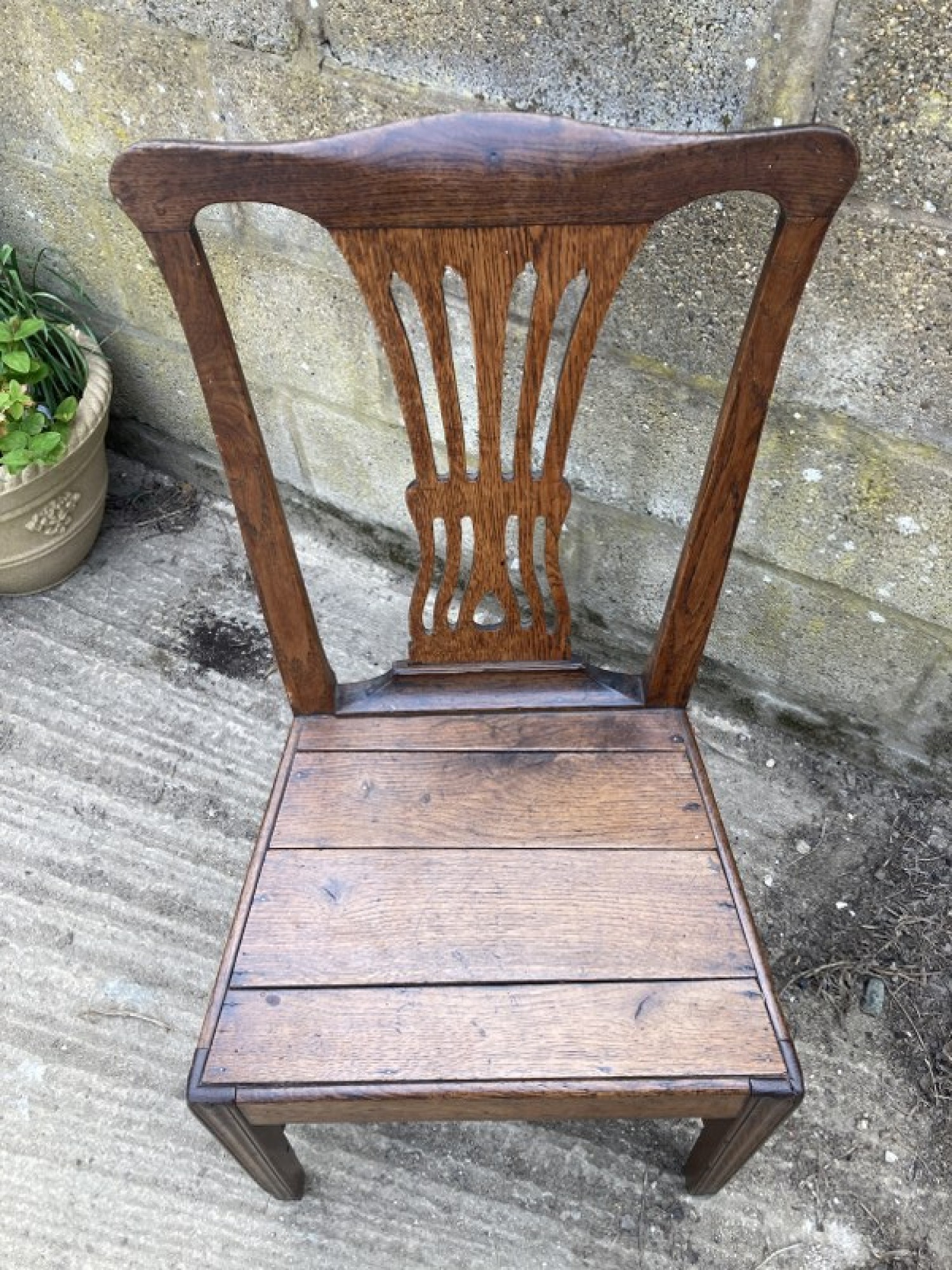 A STUNNING ANTIQUE OAK CHAIR. STRONG AND STURDY, PEGGED JOINTS, SOME OLD REPAIRS. AVERAGE CONDITION, AN ATTRACTIVE CHAIR. SEAT HEIGHT IS 43cm. DATES FROM THE 1800s, POSSIBLY EARLIER.
