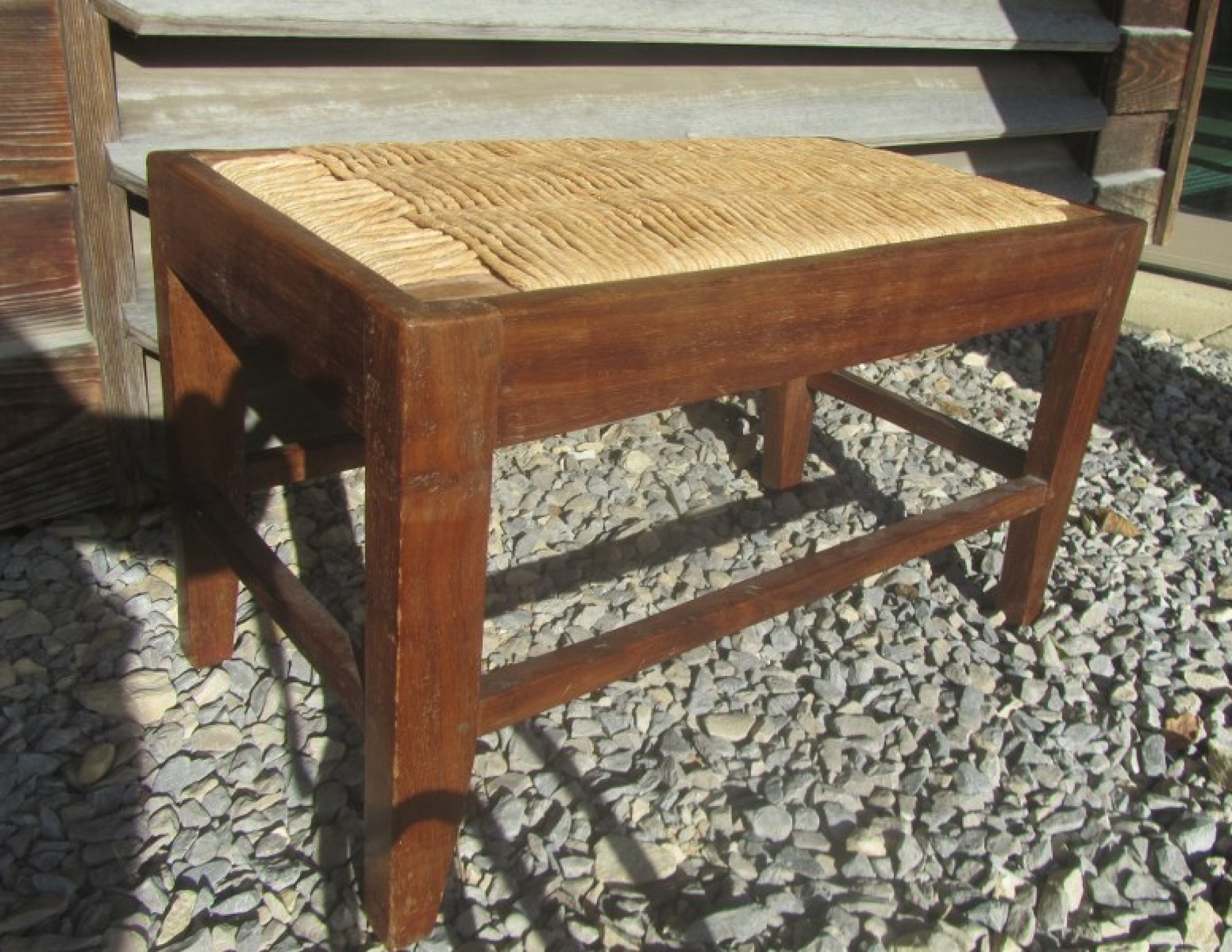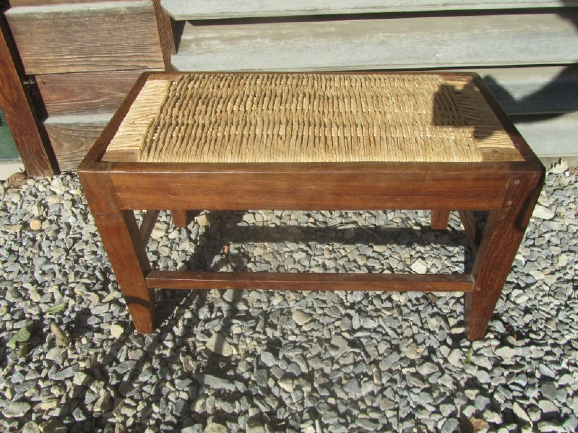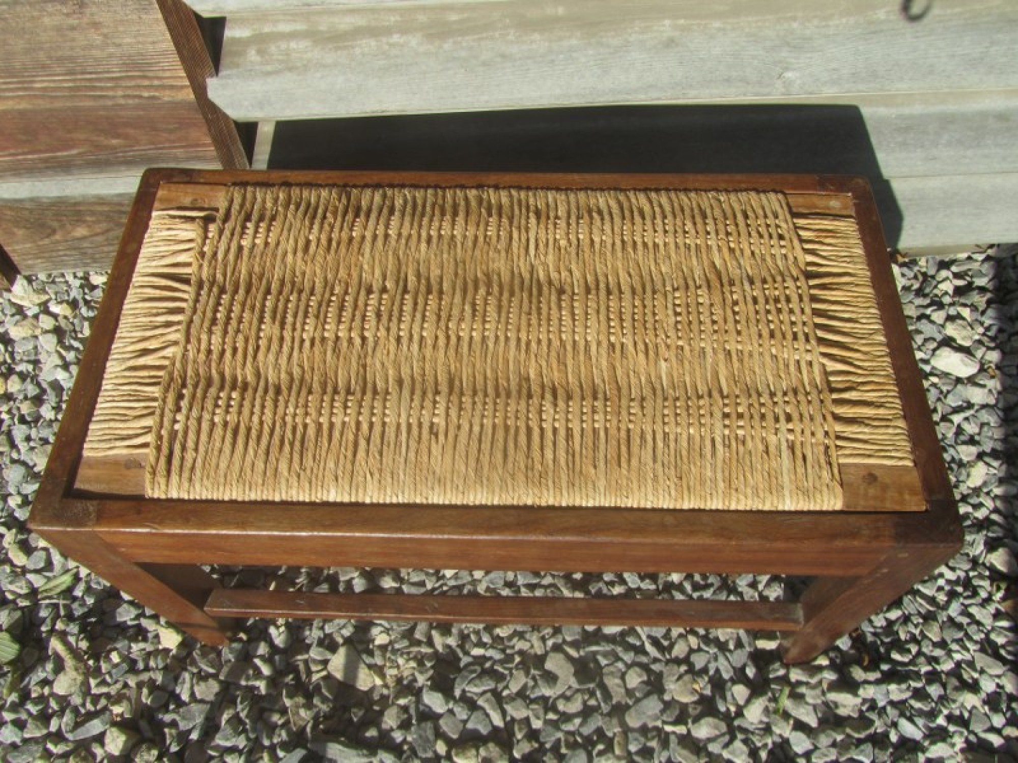 THIS IS A VINTAGE FOOT STOOL. MADE FROM SOLID WOOD. WITH A WOVEN SEAT TO GIVE A STYLISH VINTAGE LOOK. IN AVERAGE CONDITION, WEAR AND TEAR.