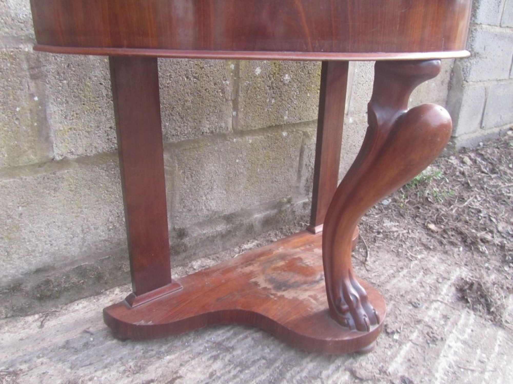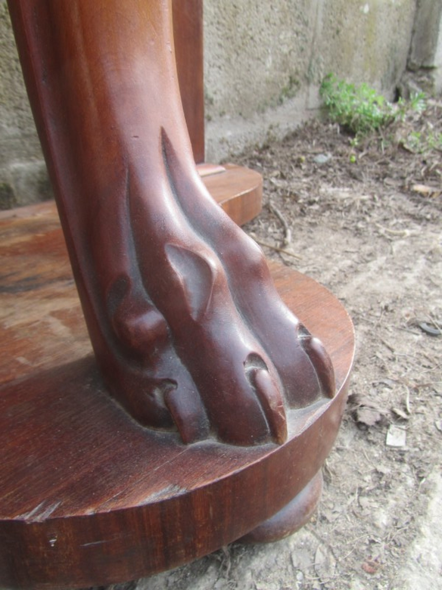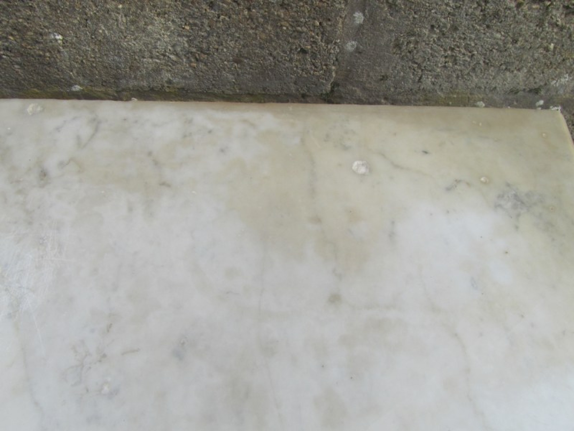 A MAHOGANY TABLE OR WASH STAND. WITH A MARBLE TOP. STAINED AT THE BASE.