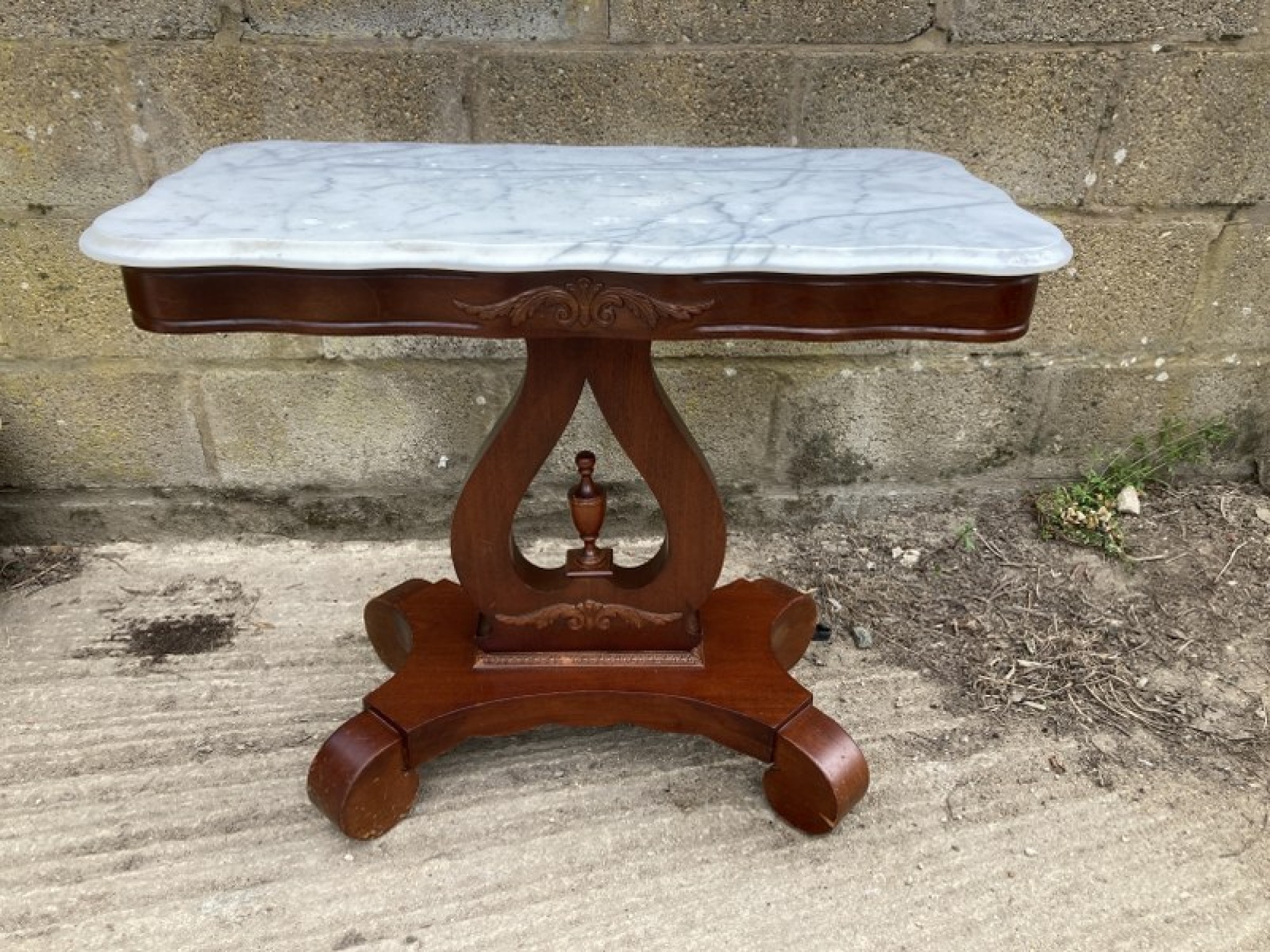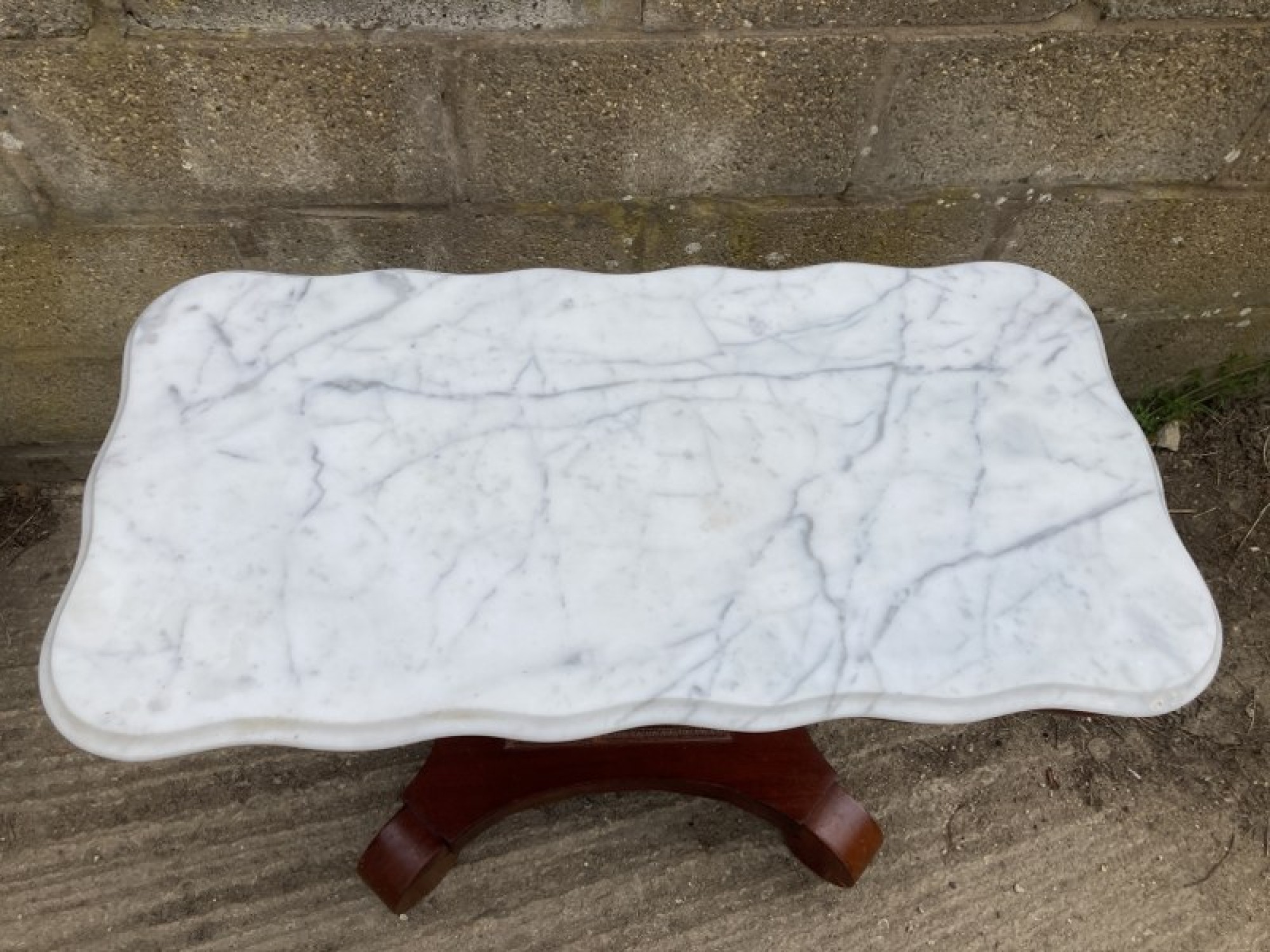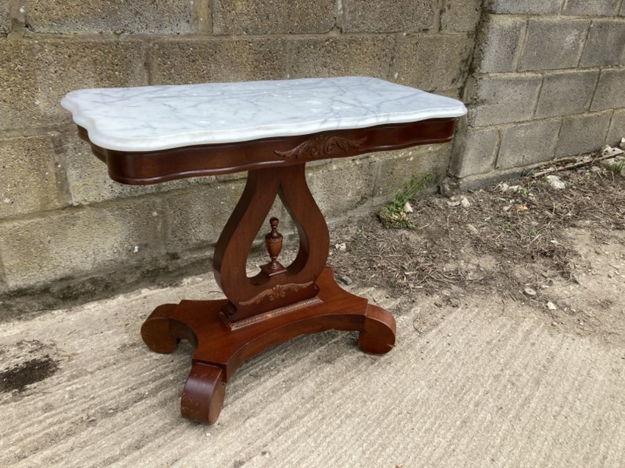 A MAHOGANY TABLE OR WASH STAND. WITH A MARBLE TOP. A REPRODUCTION PIECE IN AN ANTIQUE STYLE.