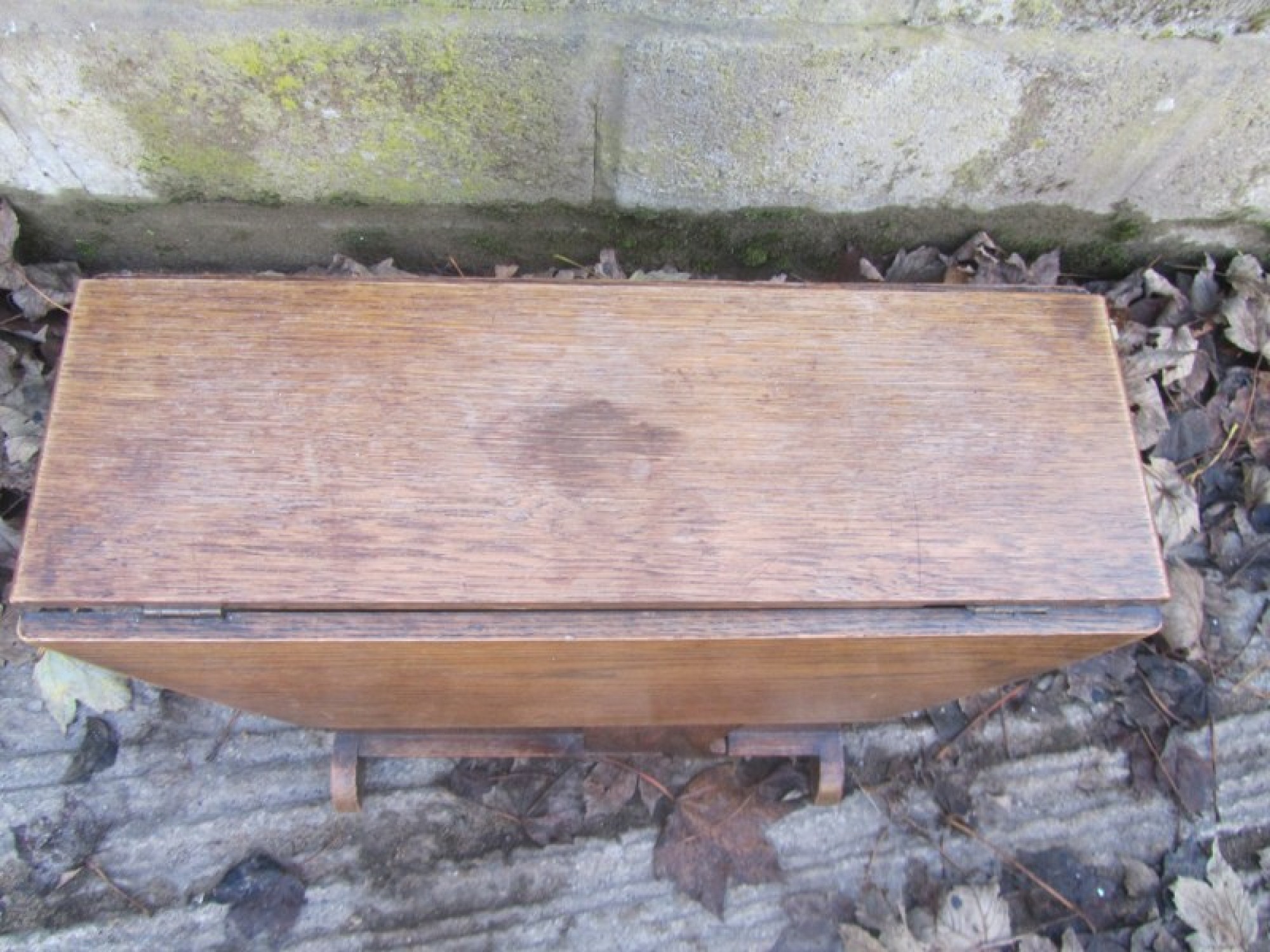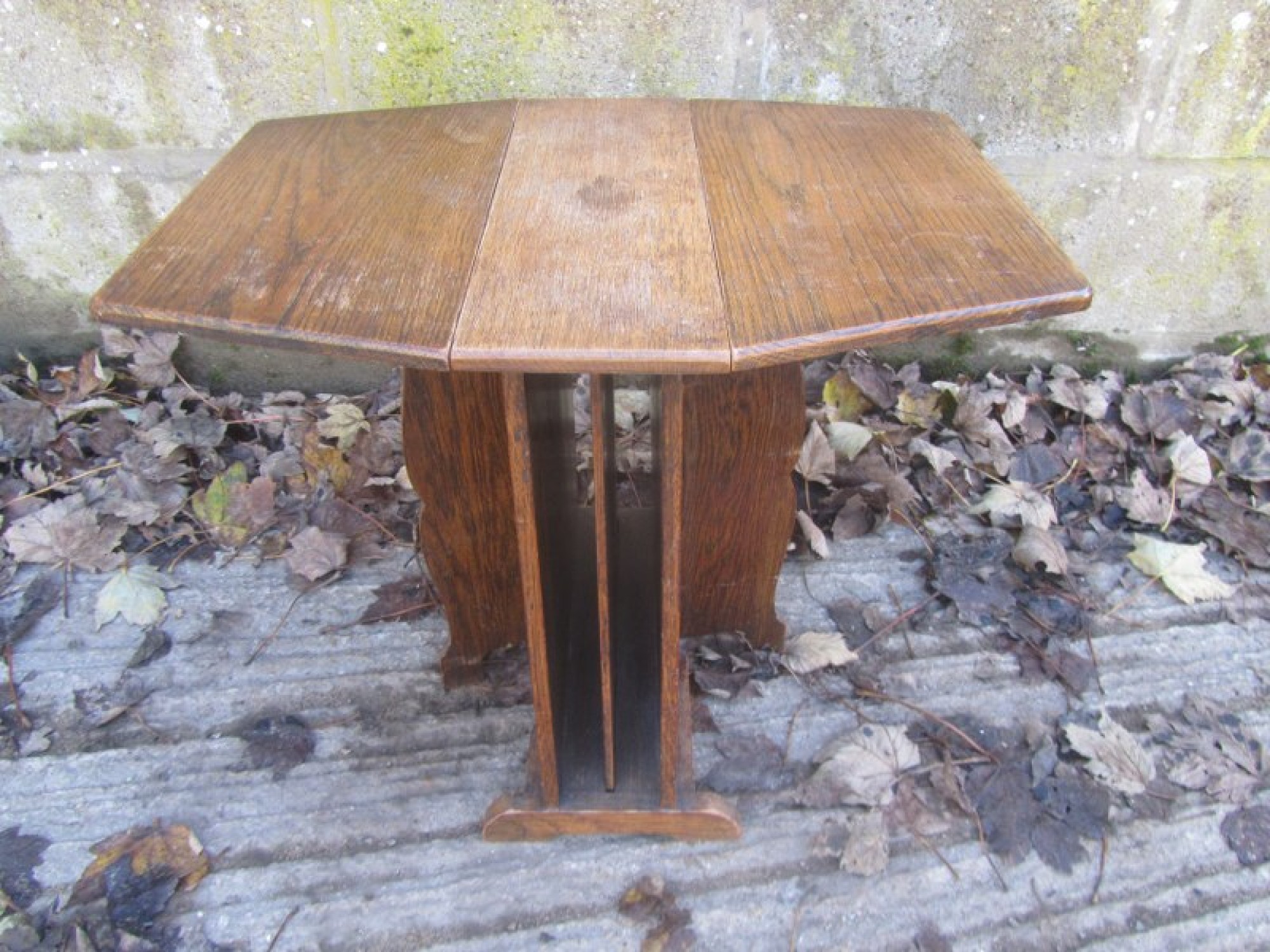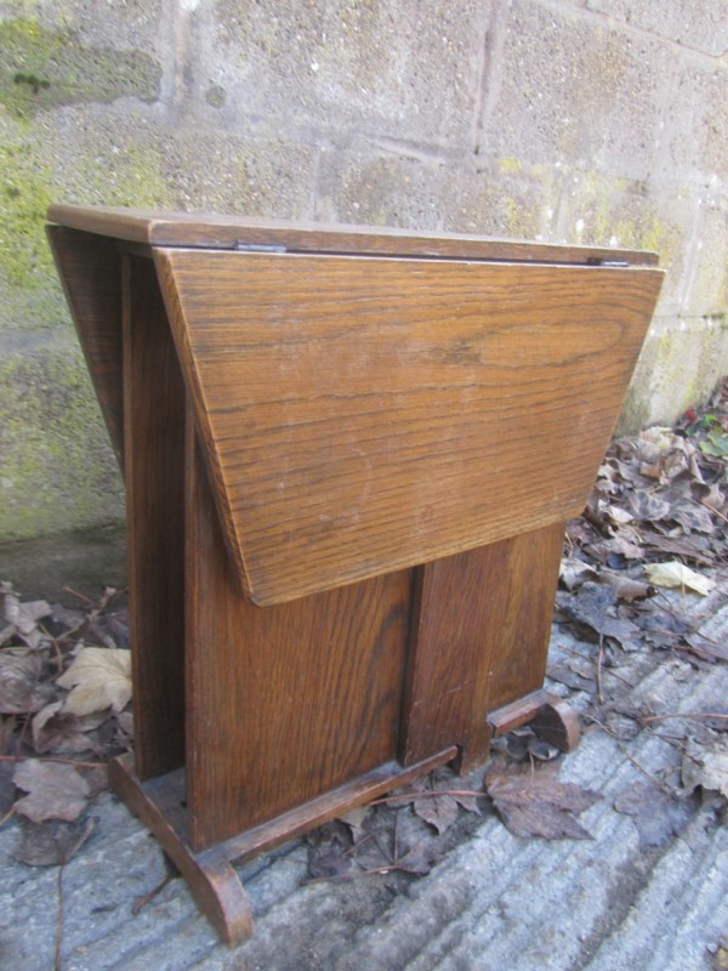 A SMALL SOLID OAK COFFEE TABLE. IT HAS DROP LEAVES, A STRONG AND STURDY TABLE. A GREAT VINTAGE PIECE, IDEAL FOR ANYWHERE IN THE HOME. WATER MARKS ON THE TOP.