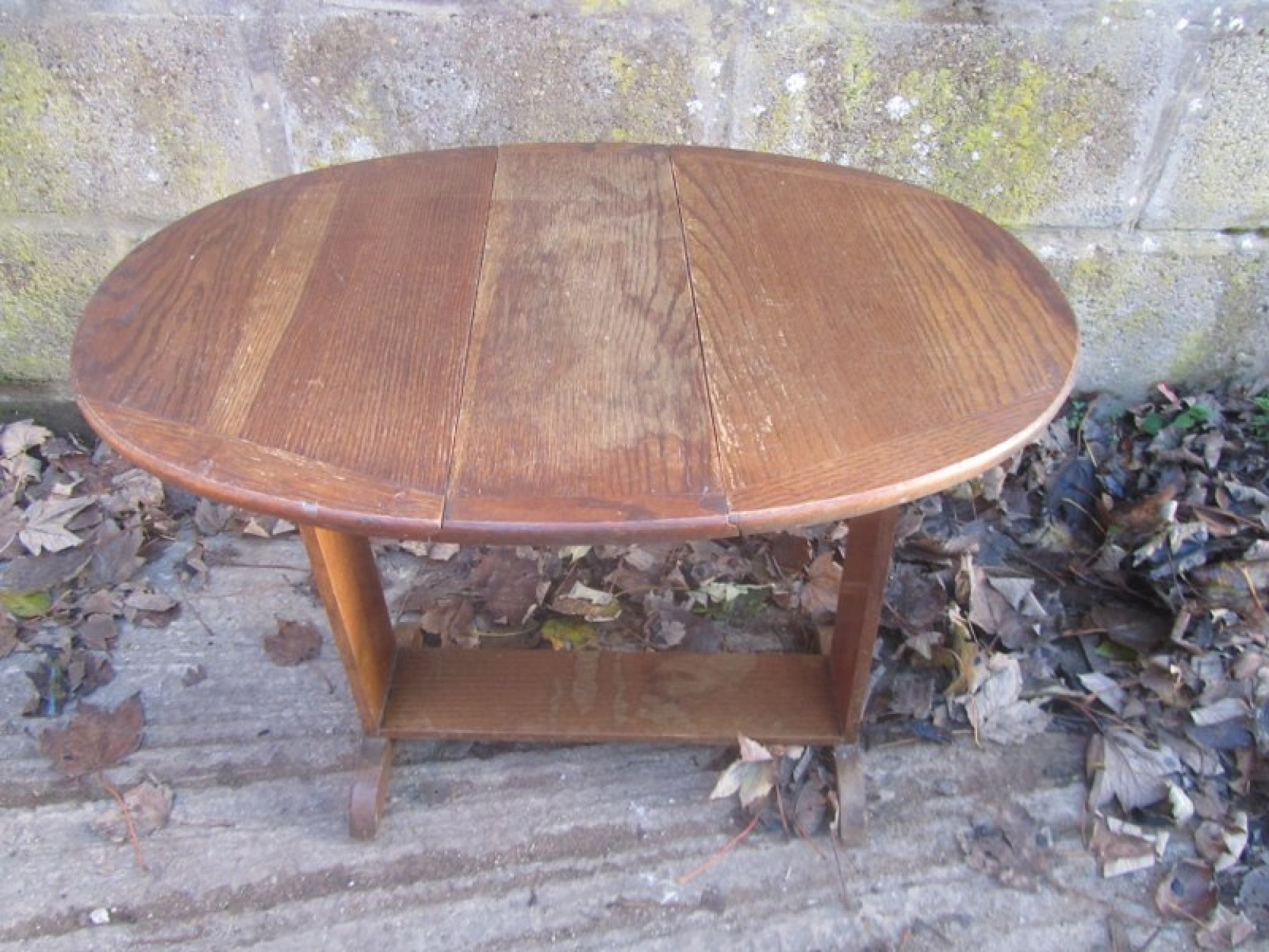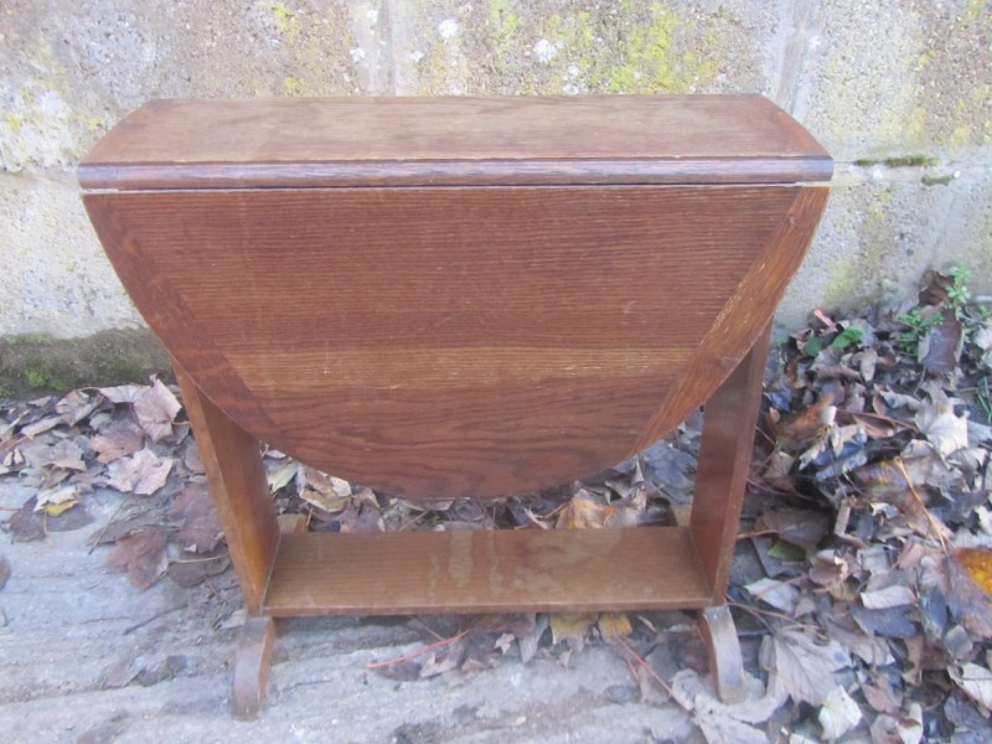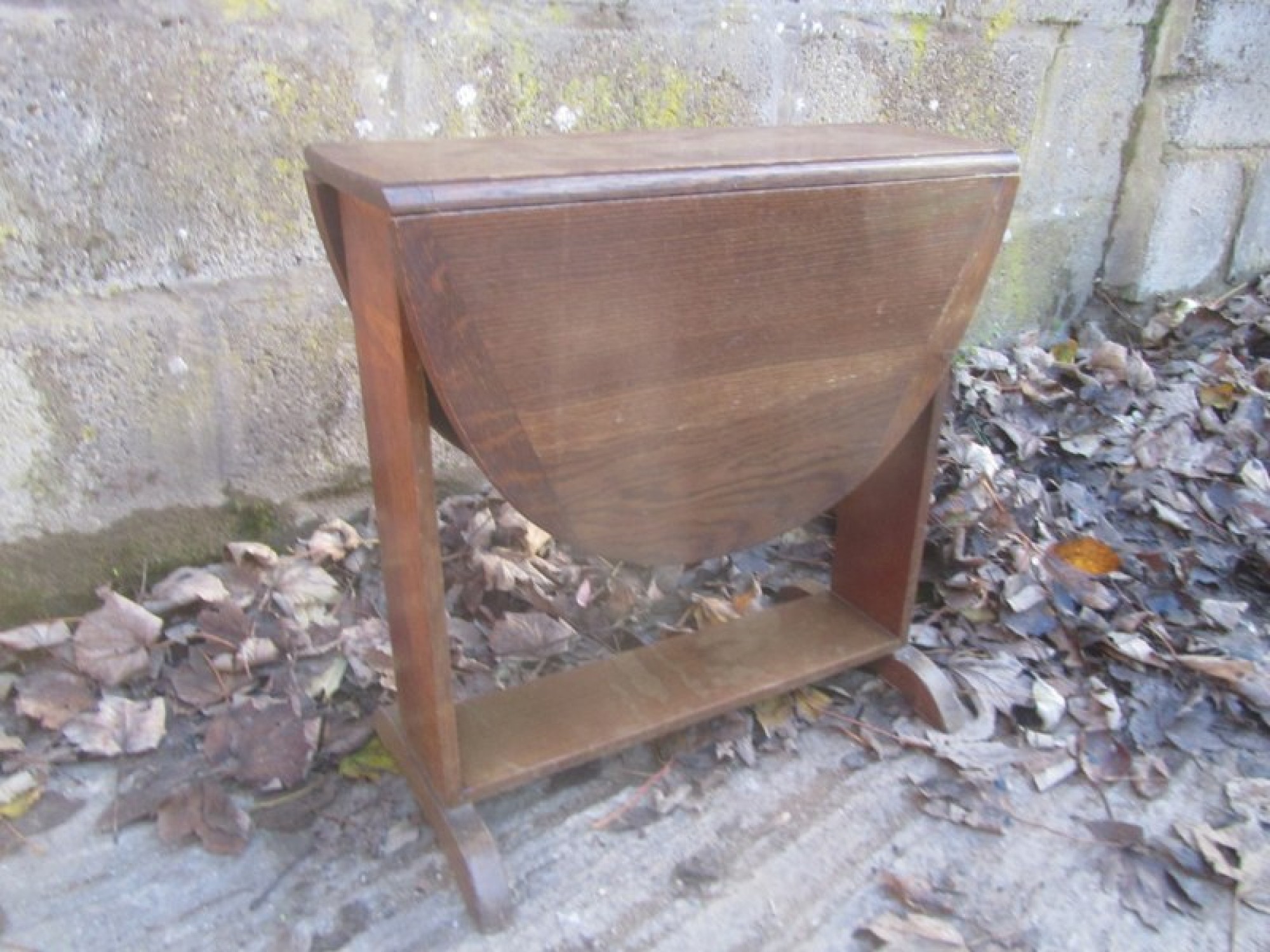 A SMALL OAK COFFEE TABLE. IT HAS DROP LEAVES, A STRONG AND STURDY TABLE. A GREAT VINTAGE PIECE, IDEAL FOR ANYWHERE IN THE HOME. WATER MARKS ON THE TOP.