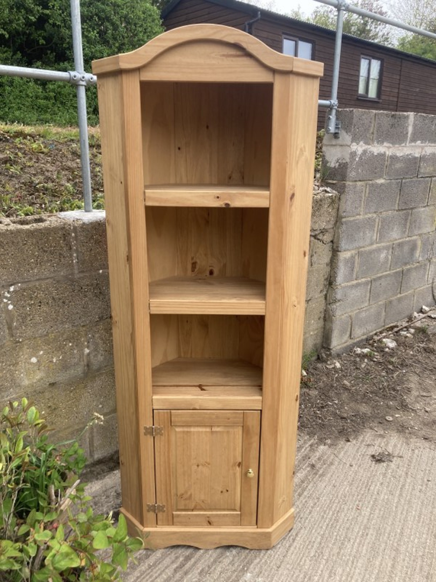 SOLID PINE TALL CORNER CABINET / SHELVES