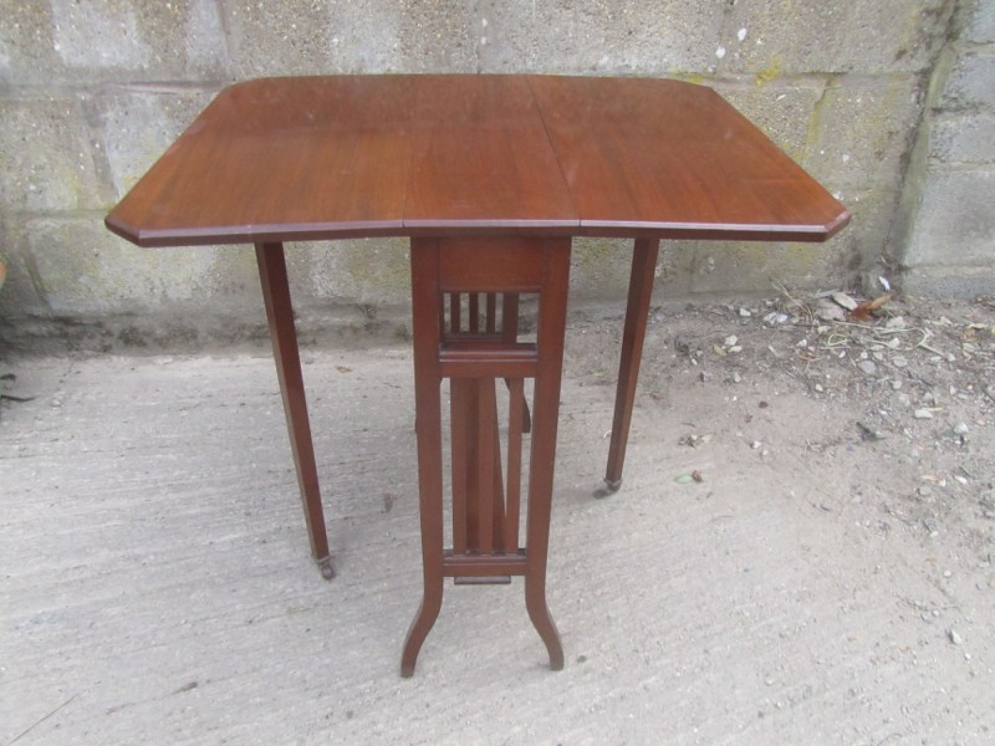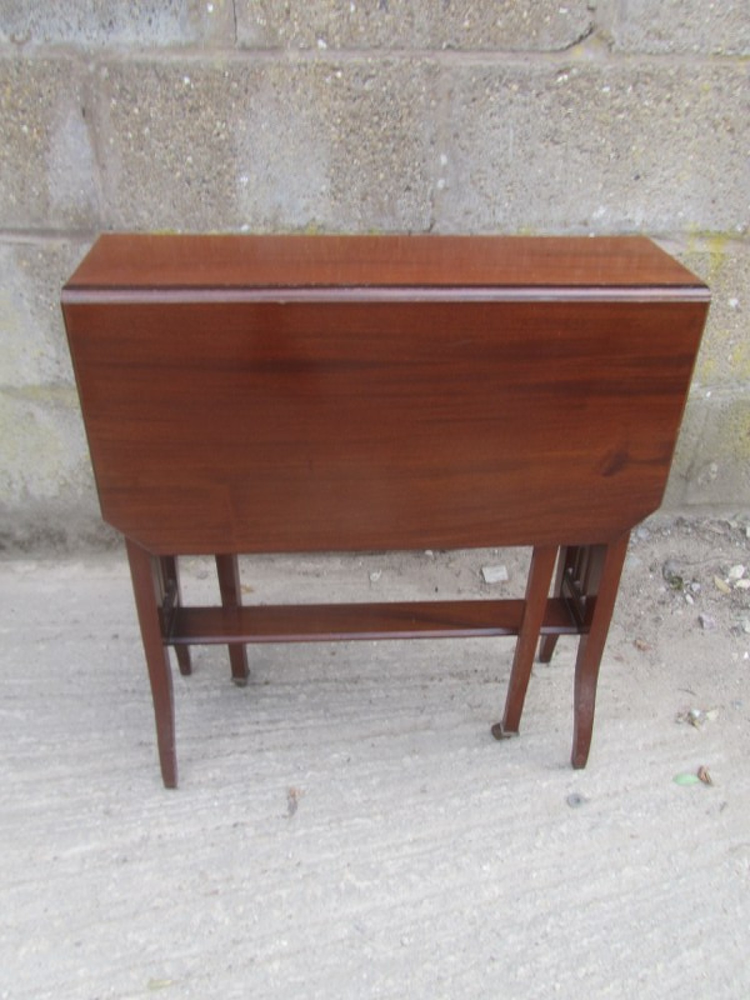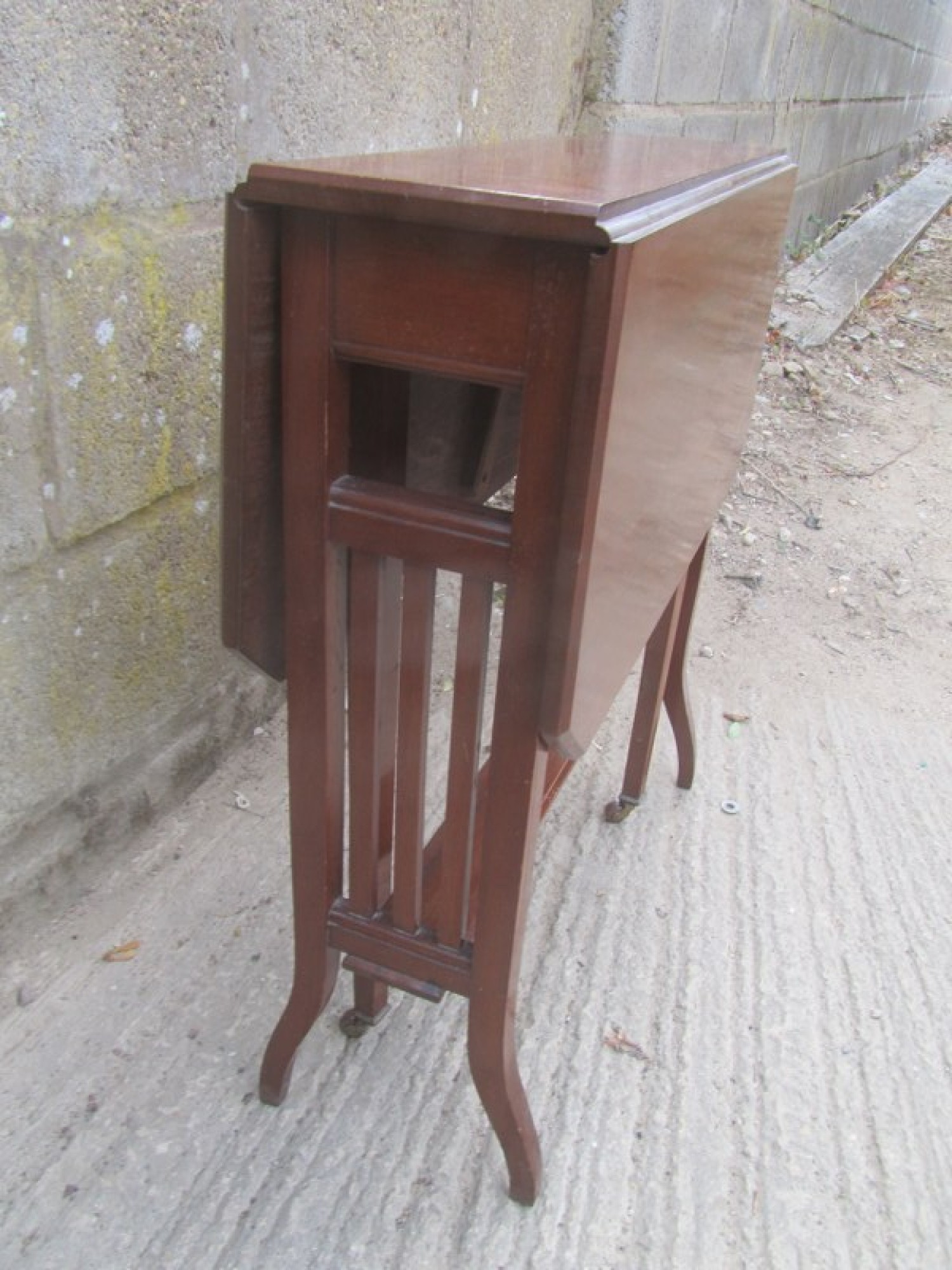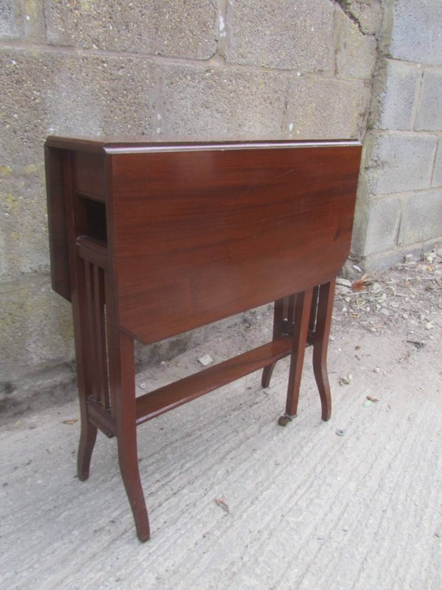 THIS IS AN ELEGANT VICTORIAN MAHOGANY SUTHERLAND TABLE. THE FRAME IS FAIRLY STURDY. IN THE CLOSED POSITION IT IS VERY SLIM. IT STANDS ON TURNED LEGS.