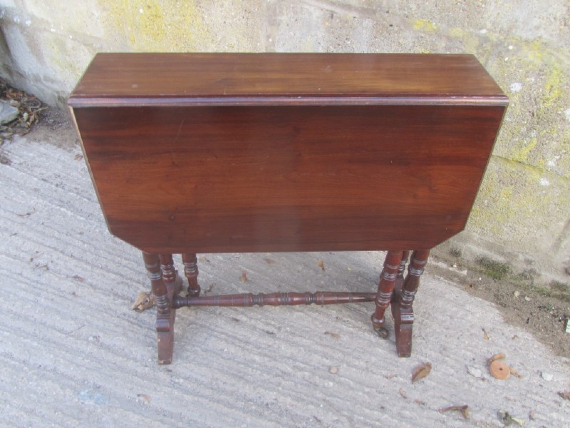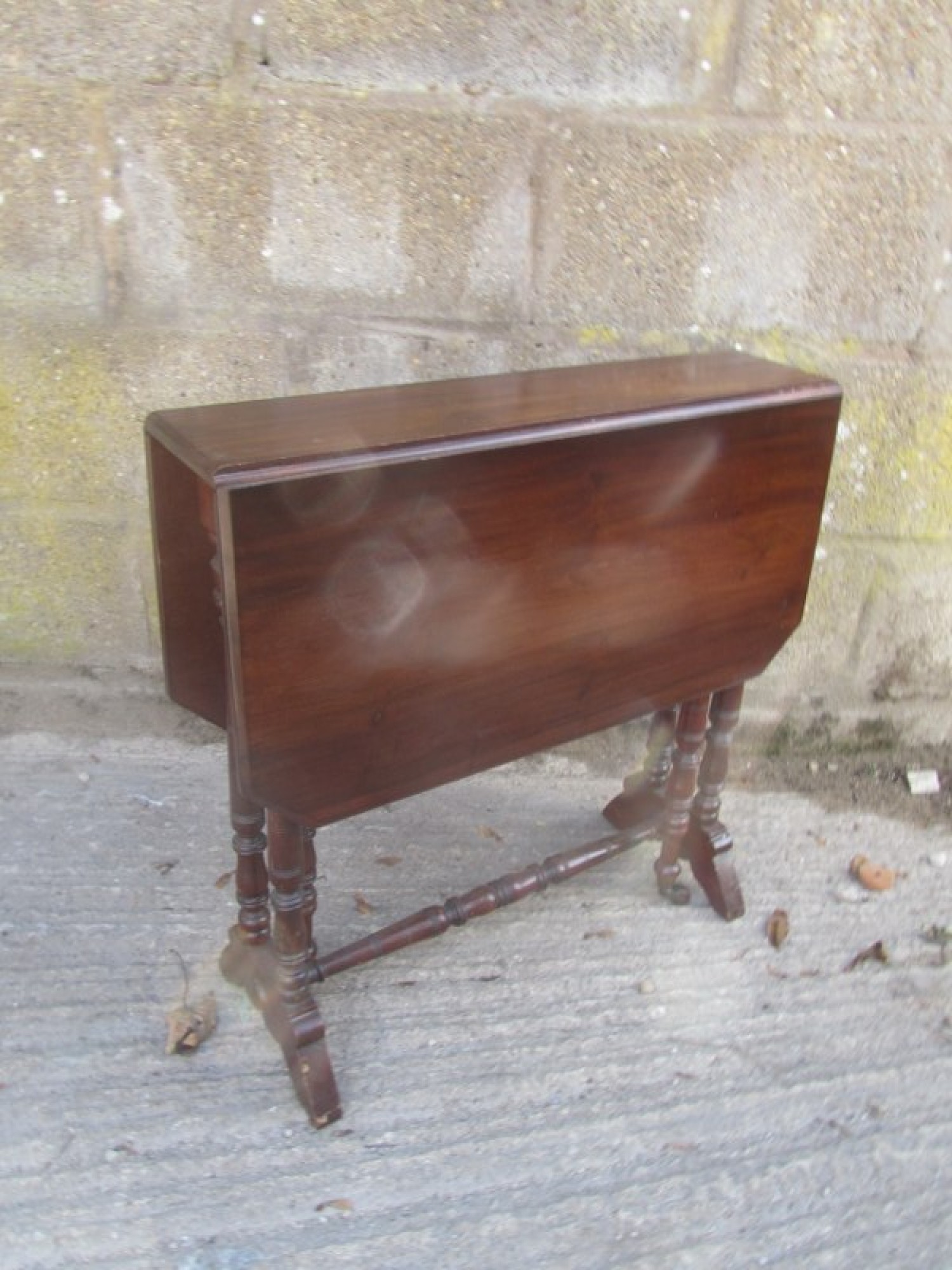 THIS IS AN ELEGANT VICTORIAN MAHOGANY SUTHERLAND TABLE. THE FRAME IS FAIRLY STURDY. IN THE CLOSED POSITION IT IS VERY SLIM. IT STANDS ON TURNED LEGS.