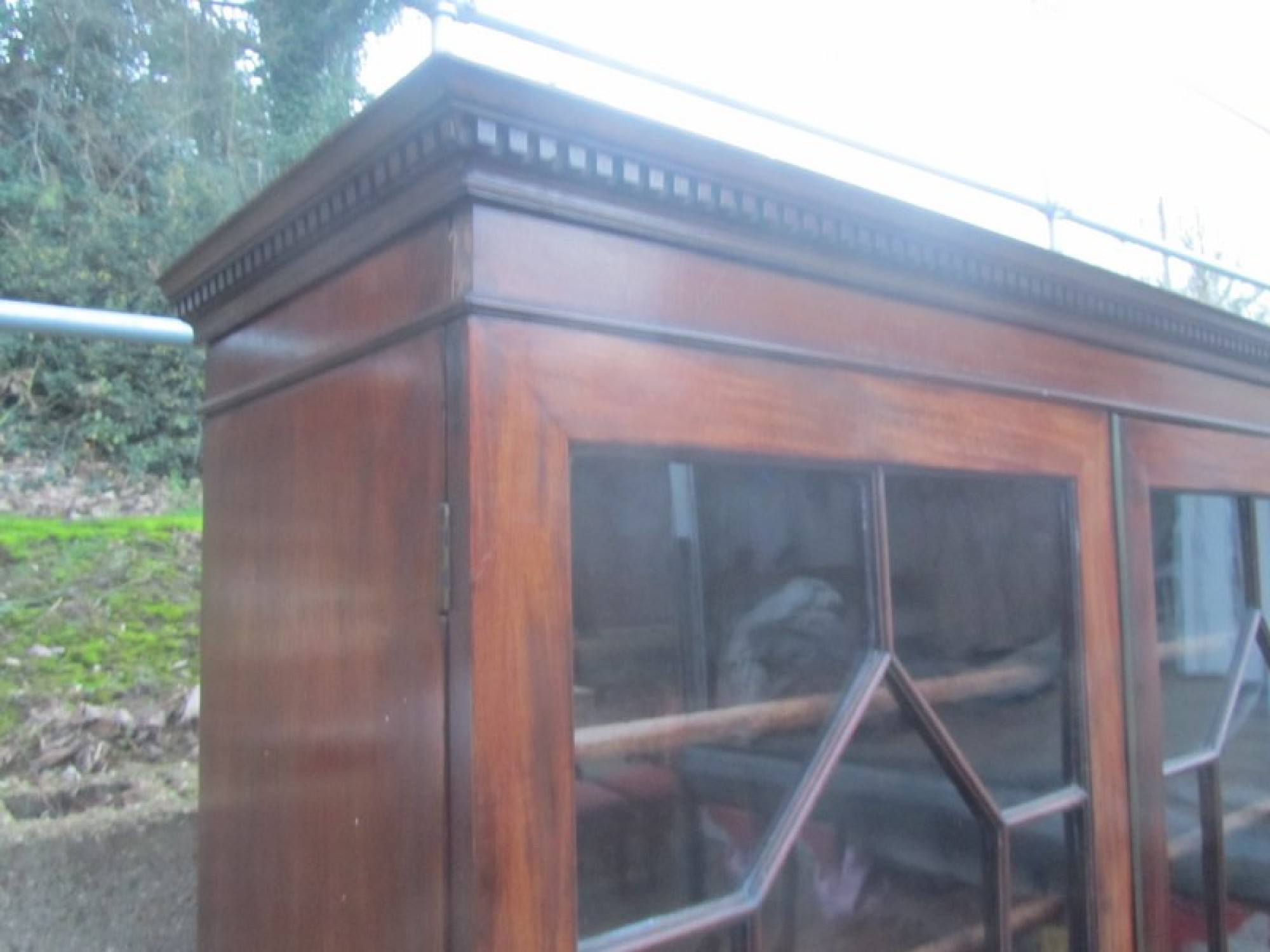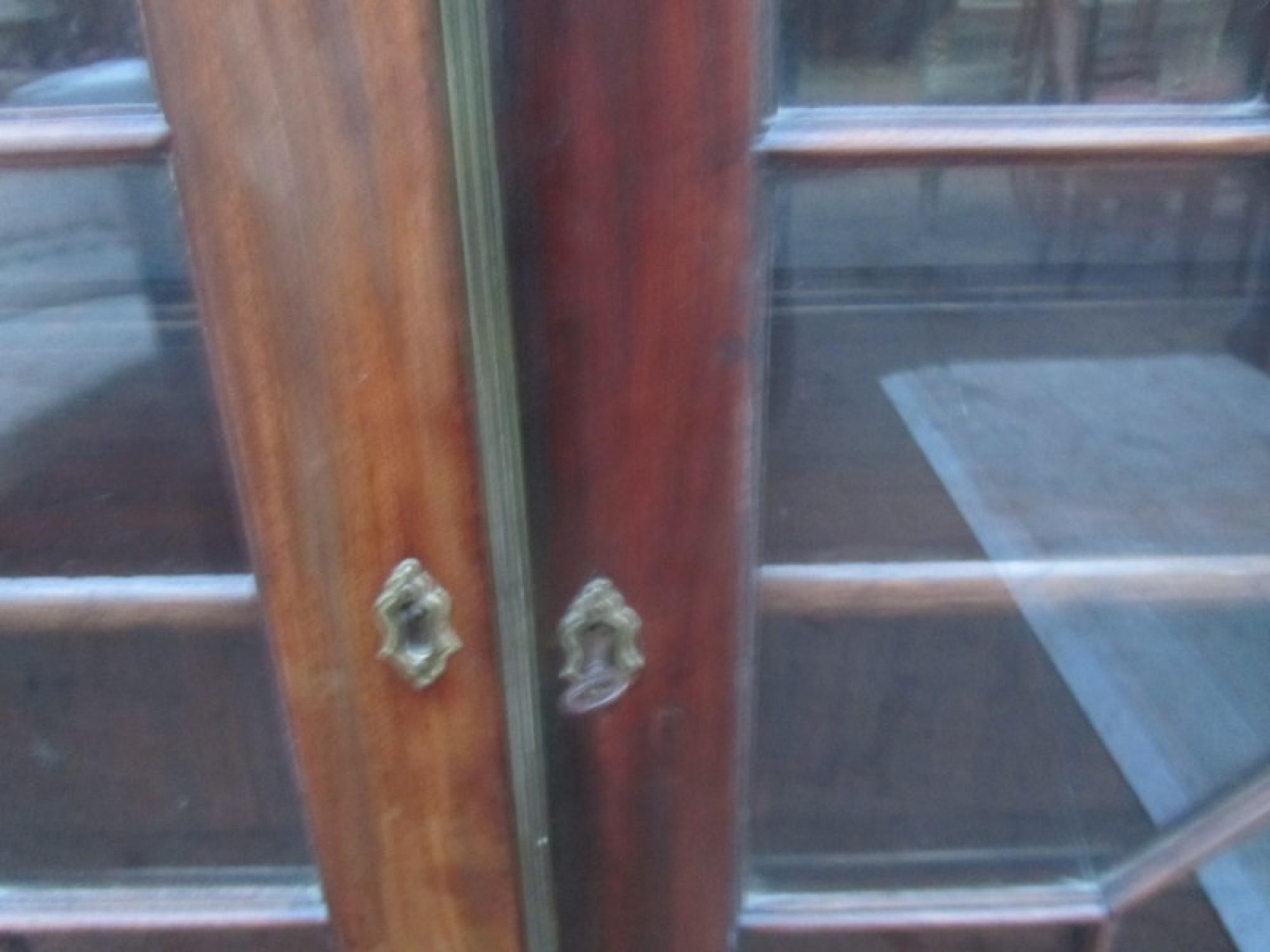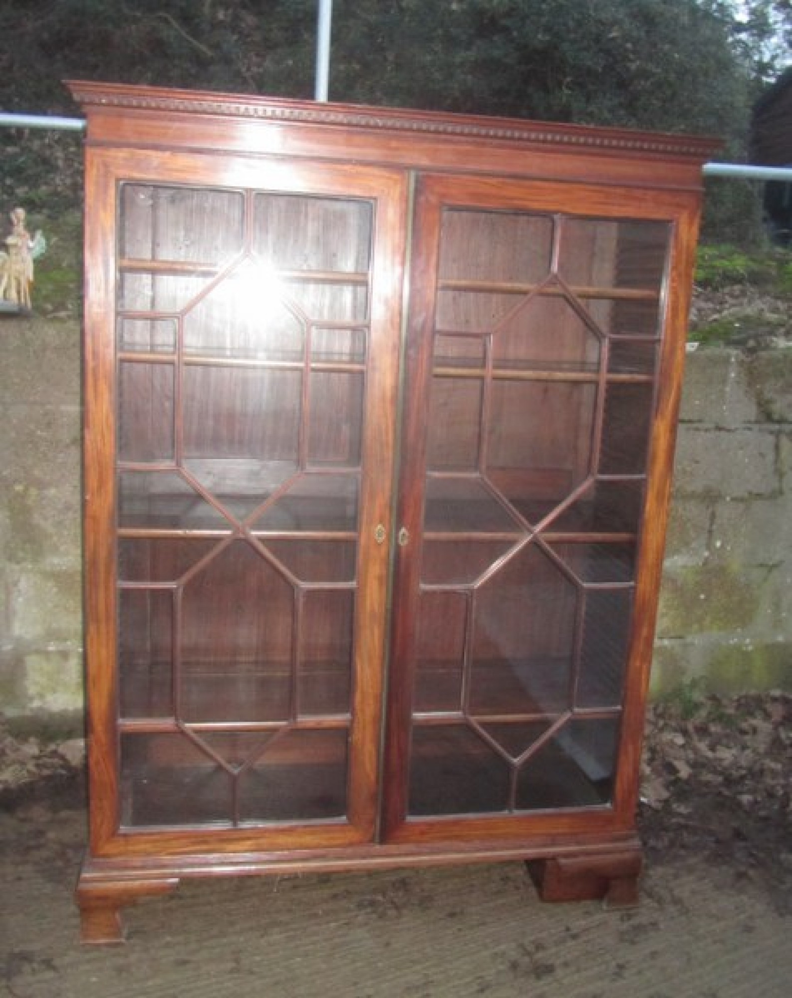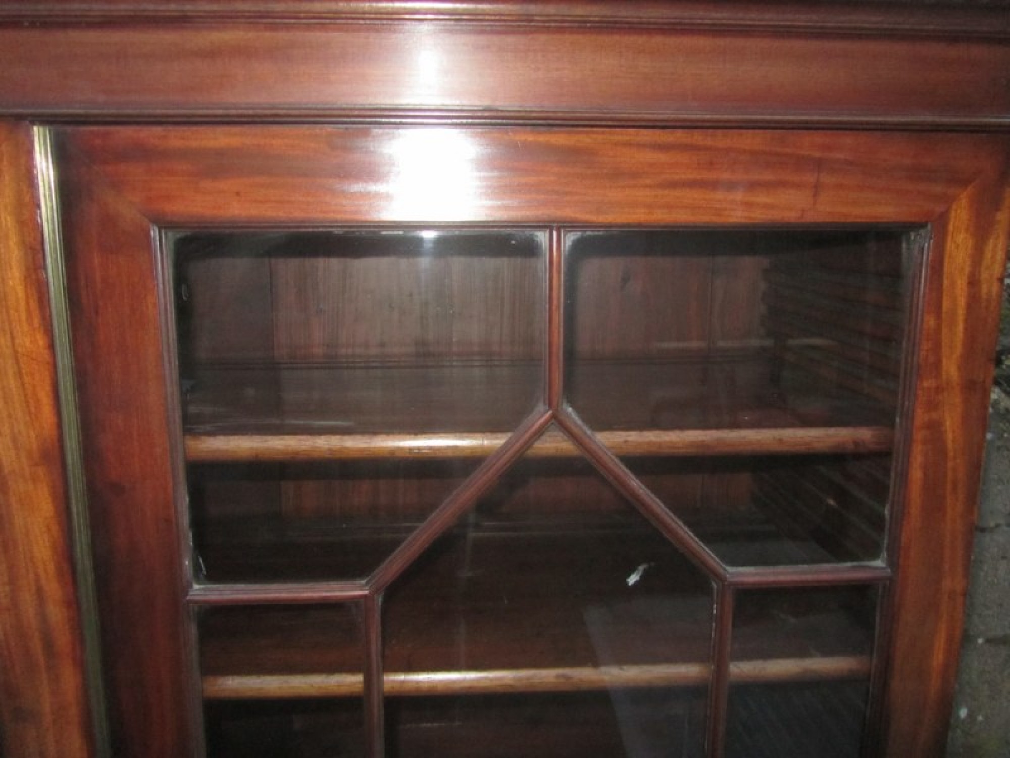 THIS IS A TALL MAHOGANY DISPLAY CABINET/ BOOKCASE. AN ELEGANT PIECE WITH 2 GLAZED DOORS IN THE FRONT. INSIDE THERE ARE WOODEN SHELVES. A STYLISH PIECE, IDEAL FOR DISPLAYING CHINA, TROPHIES, BOOKS, COLLECTIONS etc. CUPBOARDS BELOW.