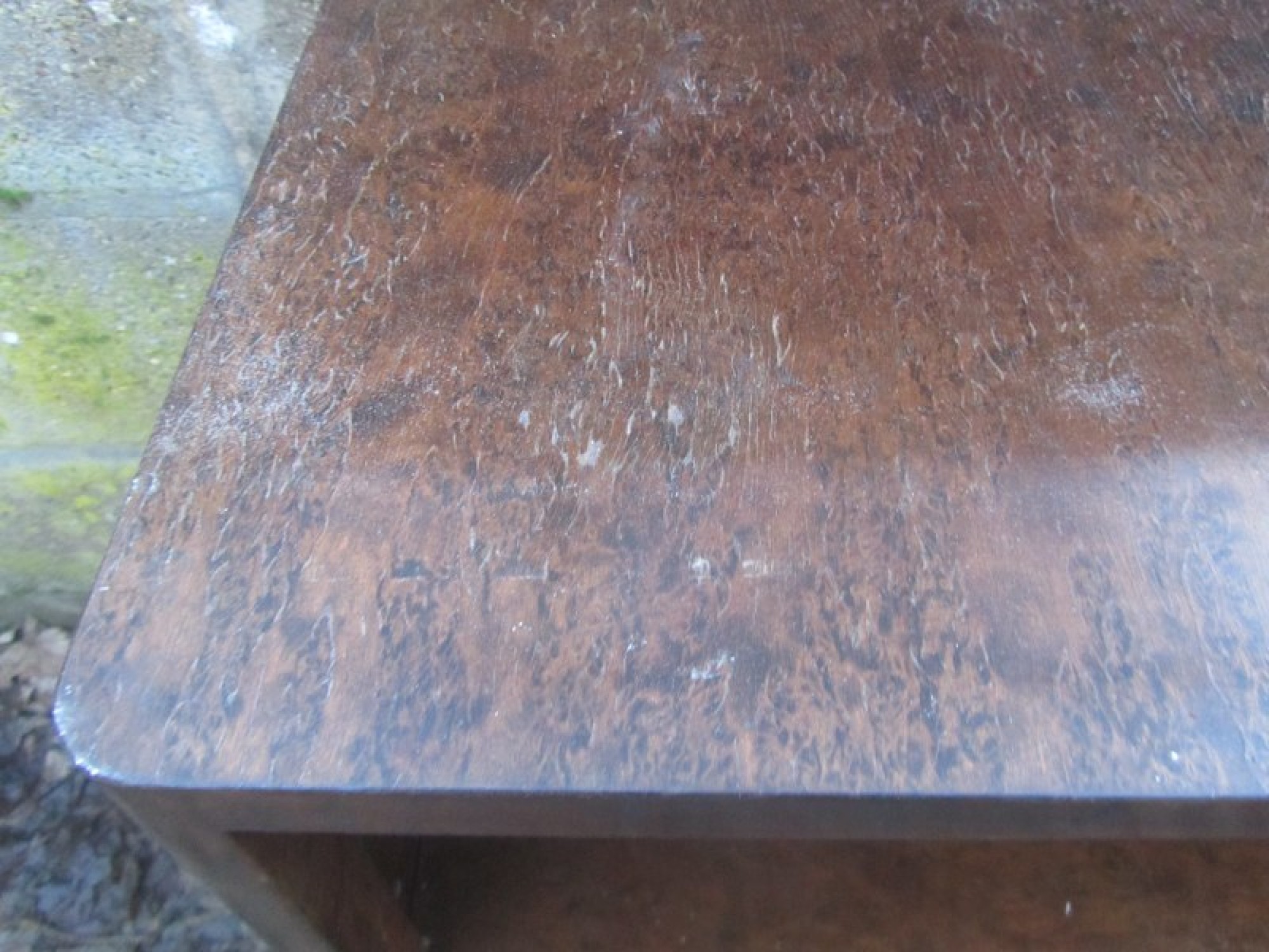 THIS IS A BURR WALNUT VENEERED CABINET. INSIDE THERE ARE WOODEN SHELVES. A SIMPLE PIECE, IDEAL FOR DISPLAYING CHINA, TROPHIES, COLLECTIONS etc. THE VENEER IS FADED AND WORN.