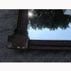 AN ANTIQUE MIRROR WITH WALNUT FRAME. REVERSE PAINTED DECORATION AT THE TOP.