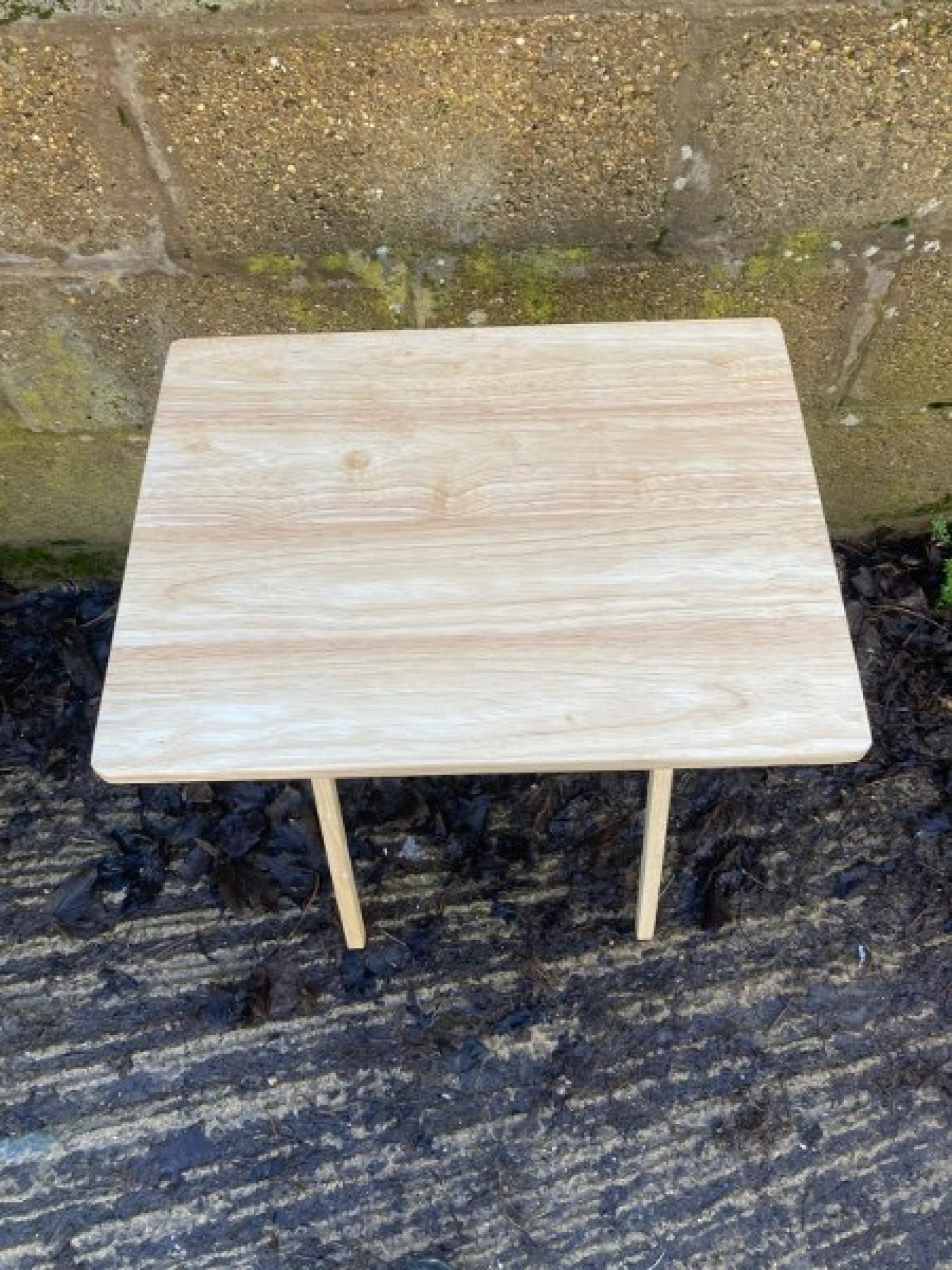 A SMALL TABLE IN SOLID BEECH WOOD. FOLDS FLAT FOR STORAGE. THIS LOOKS OK AS IT IS, BUT COULD EASILY BE STRIPPED OR PAINTED. PLEASE SEEK ADVICE BEFORE STRIPPING OLD PAINT AND USE THE CORRECT SAFETY EQUIPMENT. IT WOULD LOOK GREAT PAINTED IN A CONTEMPORY COLOUR TO GIVE IT A STYLISH NEW LOOK.