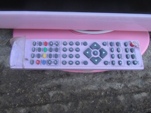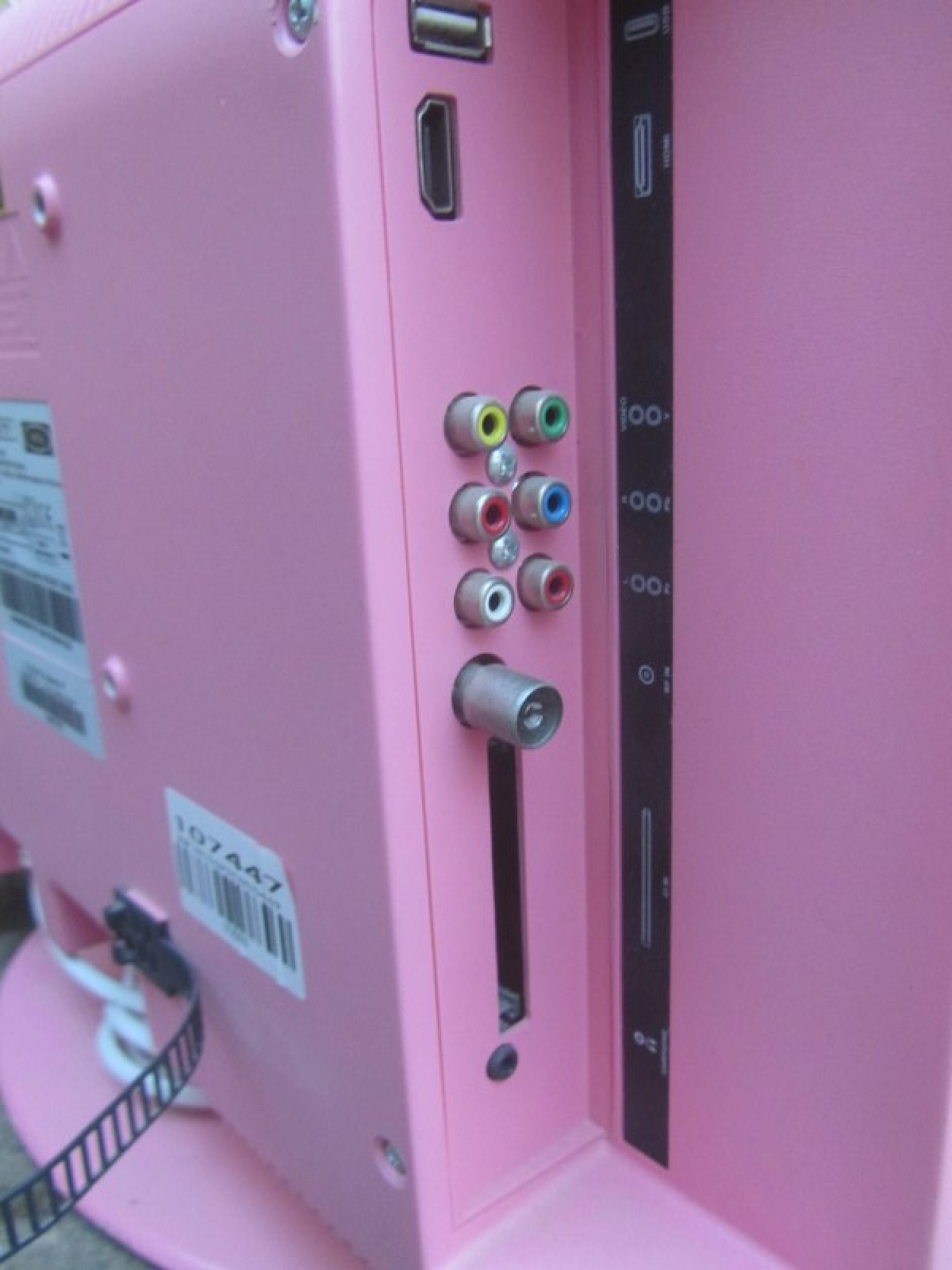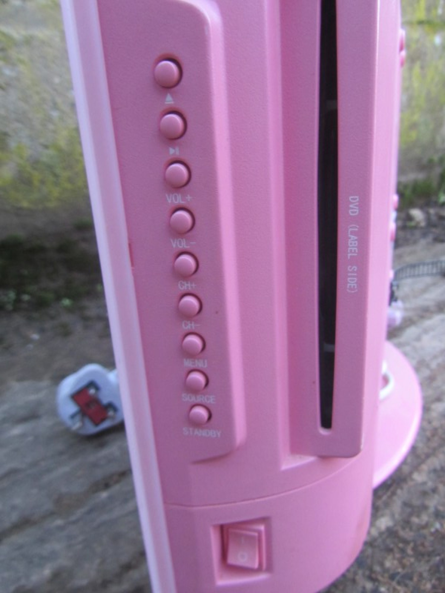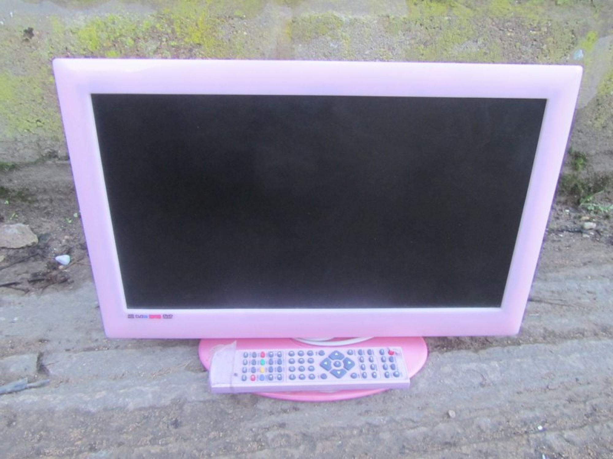 A SMALL MODERN FLAT SCREEN TV WITH BUILT IN DVD PLAYER. WITH REMOTE CONTROL. ON A STAND, BUT COULD BE FITTED TO THE WALL WITH A STANDARD TV BRACKET.