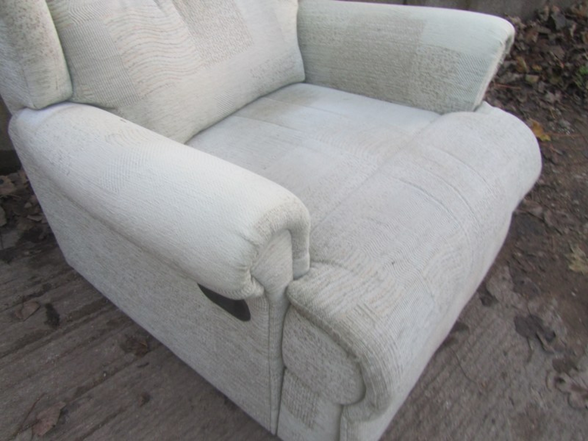 THIS IS A MANUAL RECLINING ARMCHAIR. AVERAGE CONDITION. SOME LIGHT WEAR AND FADING.