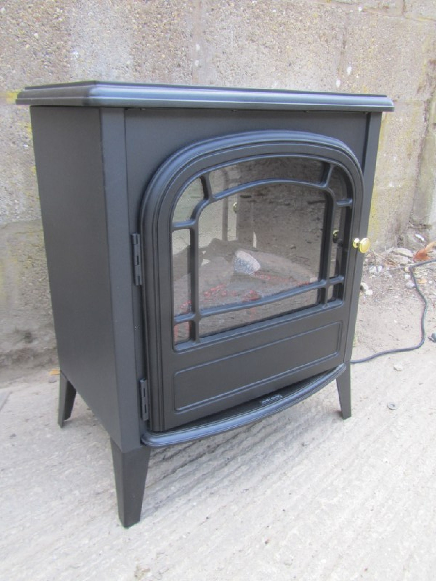 AN ELECTRIC HEATER IN A TRADITIONAL STYLE. IT IS MADE TO LOOK LIKE AN OLD STOVE / WOOD BURNER. IT HAS A FLAME EFFECT COAL FIRE. THERE IS A FAN HEATER UNDERNEATH, THERE ARE 2 HEAT SETTINGS.