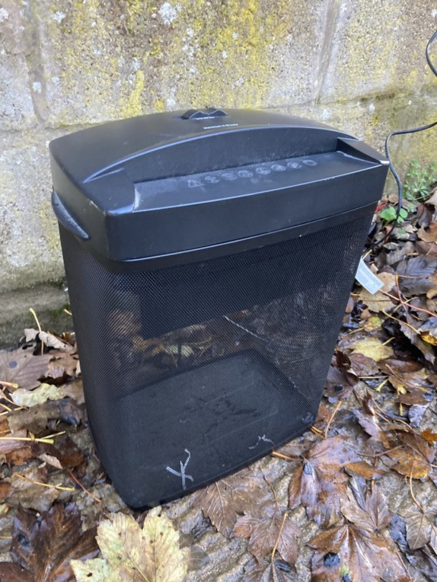 AN ELECTRIC PAPER SHREDDER FOR SHREDDING CONFIDENTIAL PAPERWORK OR PERSONAL DETAILS.