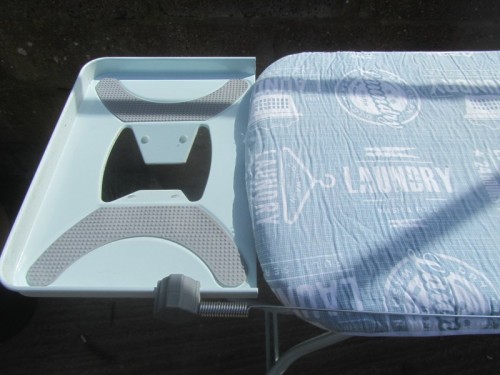 A SIMPLE IRONING BOARD, IT FOLDS FLAT WHEN NOT IN USE. WHEN UP THE HEIGHT IS ADJUSTABLE. COMES COMPLETE WITH A COVER.