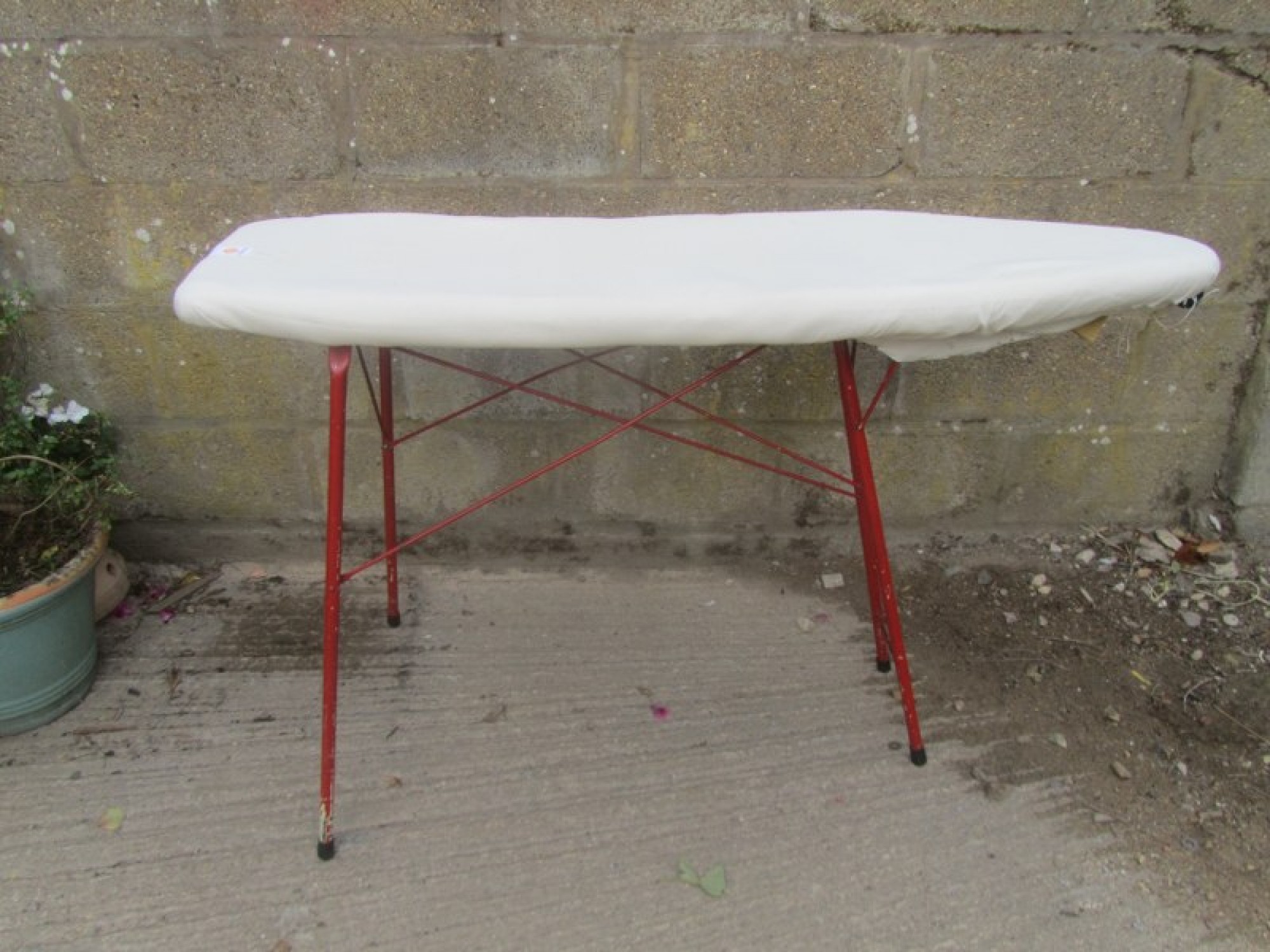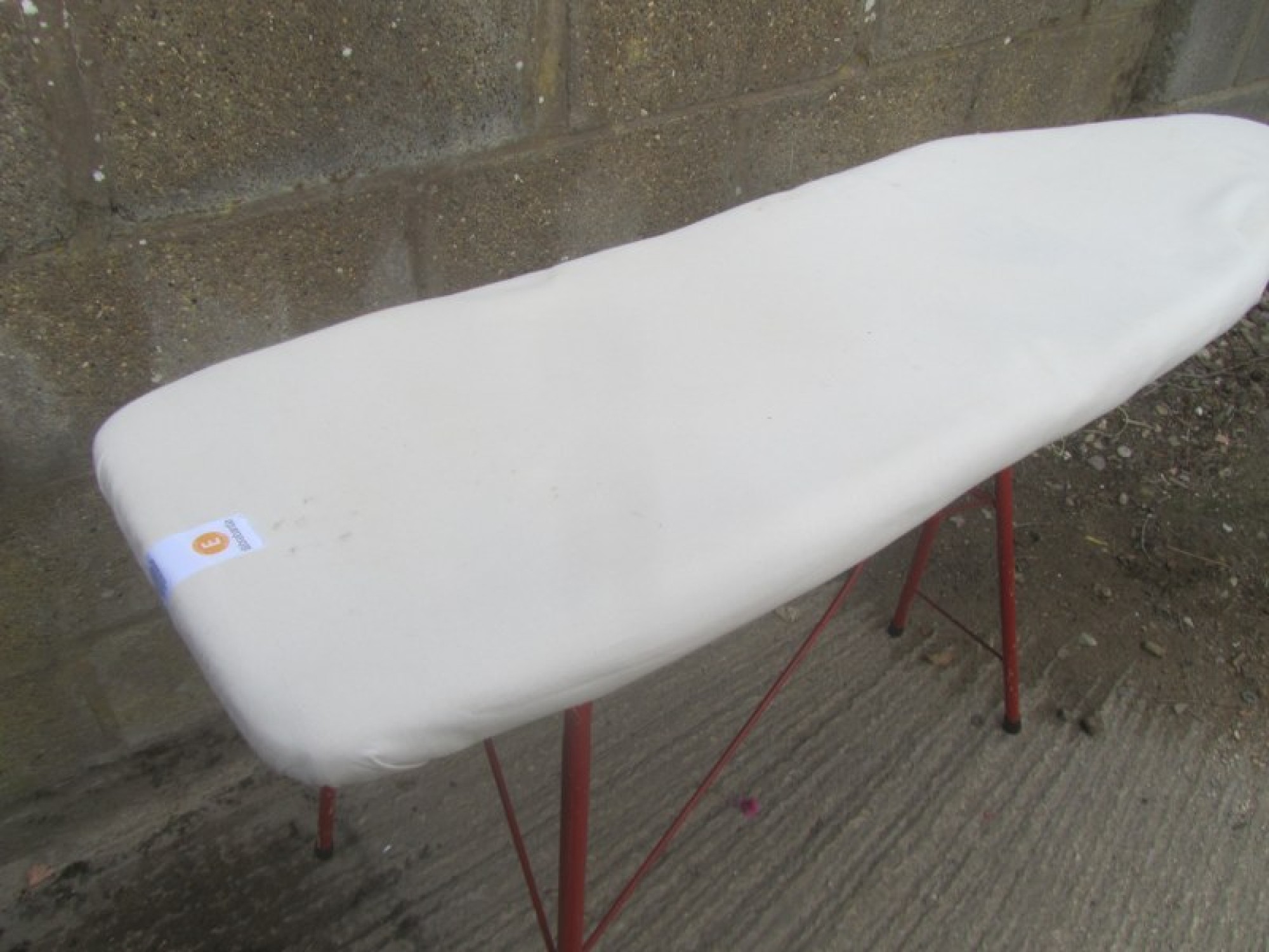 A SIMPLE IRONING BOARD, IT FOLDS FLAT WHEN NOT IN USE. 4 LEGS, STURDY.