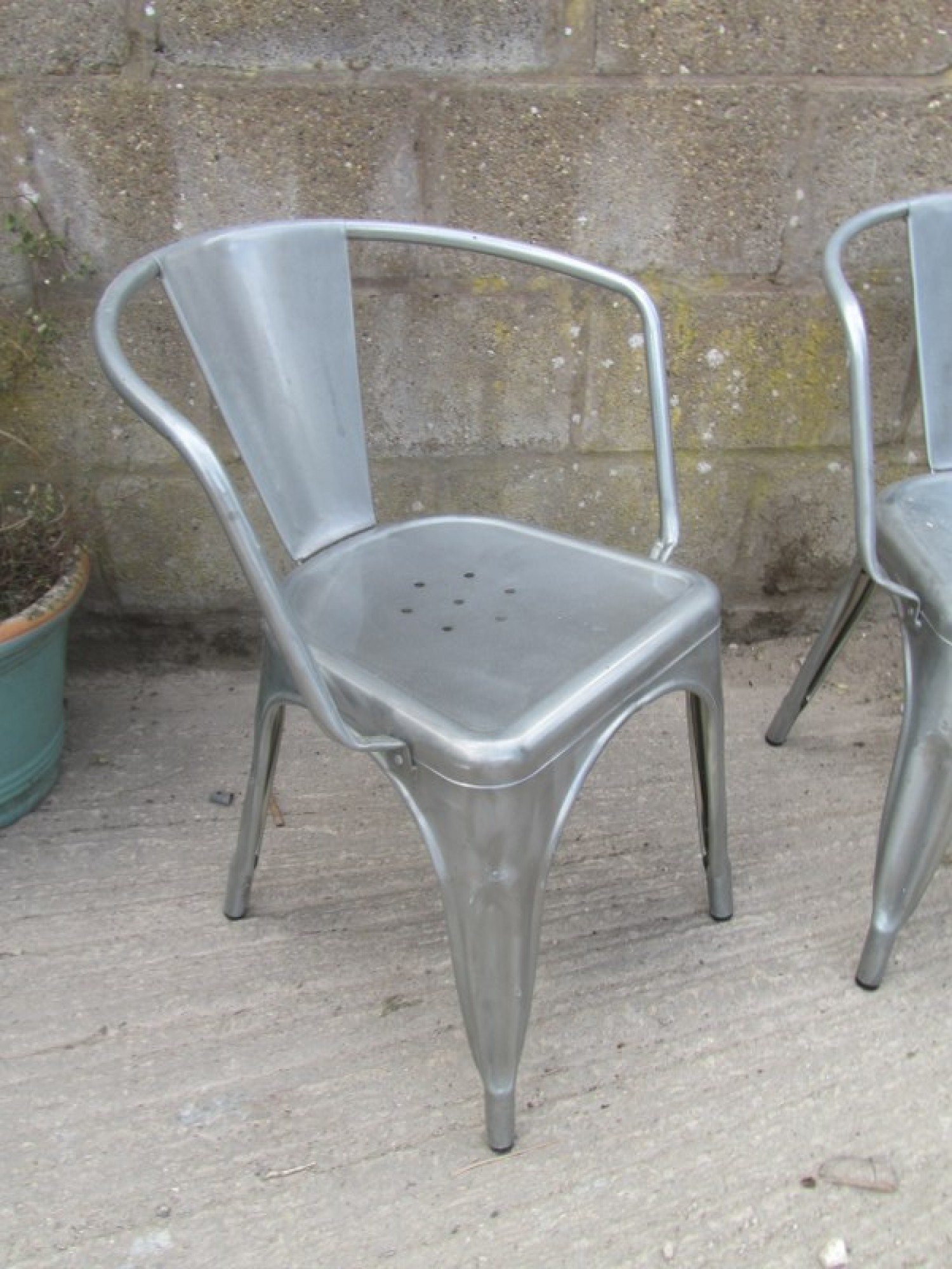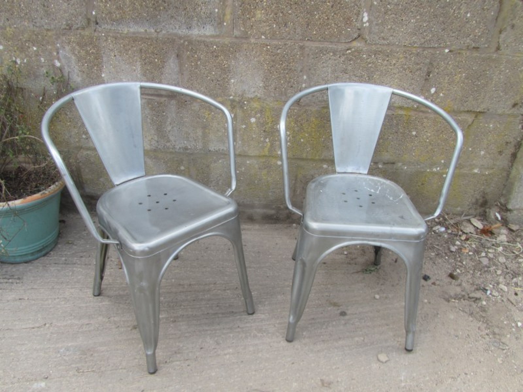 A SET OF 2 DINING CHAIRS, METAL FRAMES IN A POLISHED FINISH. STRONG AND STURDY. SEAT HEIGHT IS 45cm.