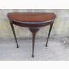 A HALF MOON HALL TABLE. IT IS IN A MAHOGANY COLOUR.