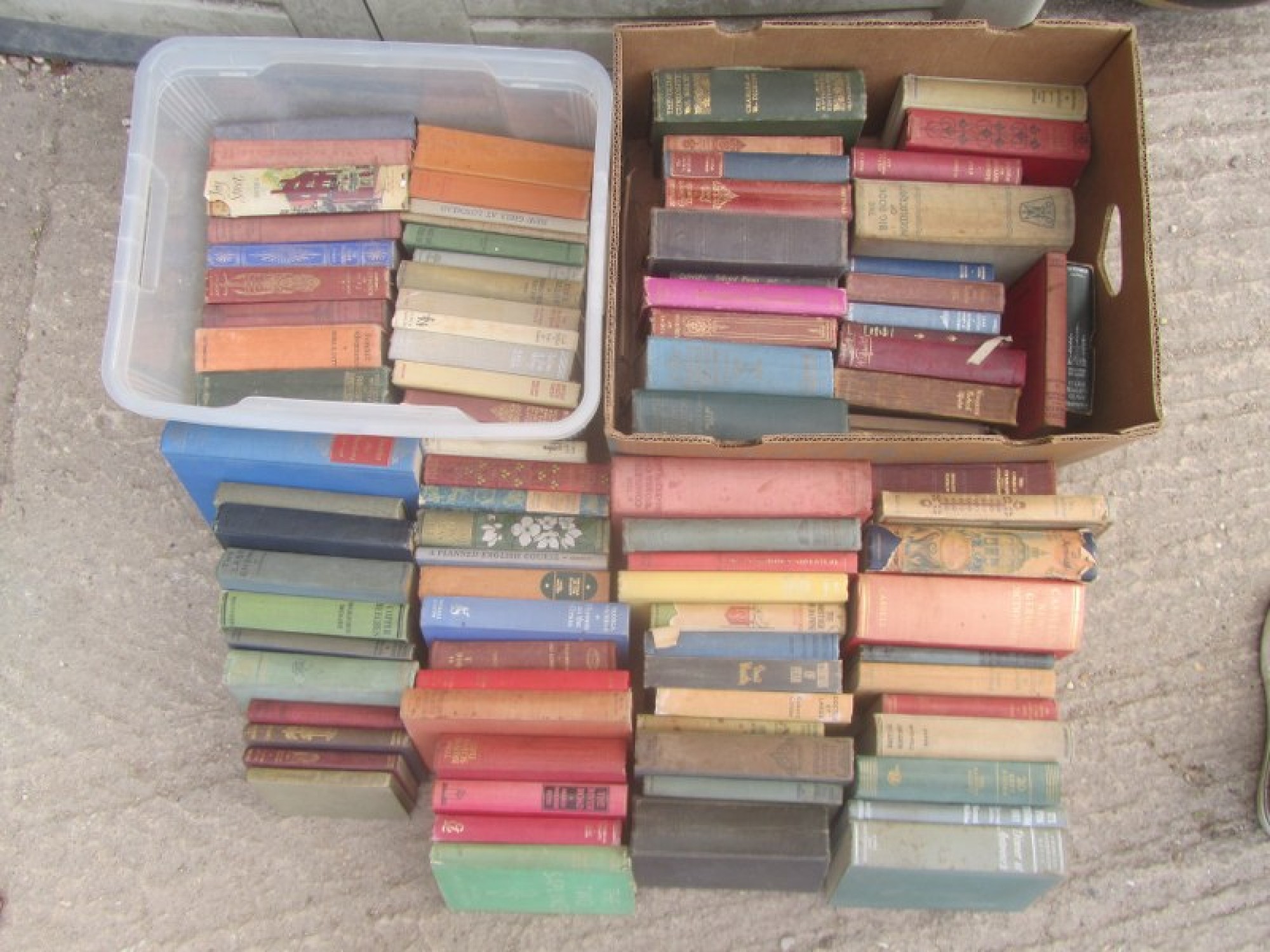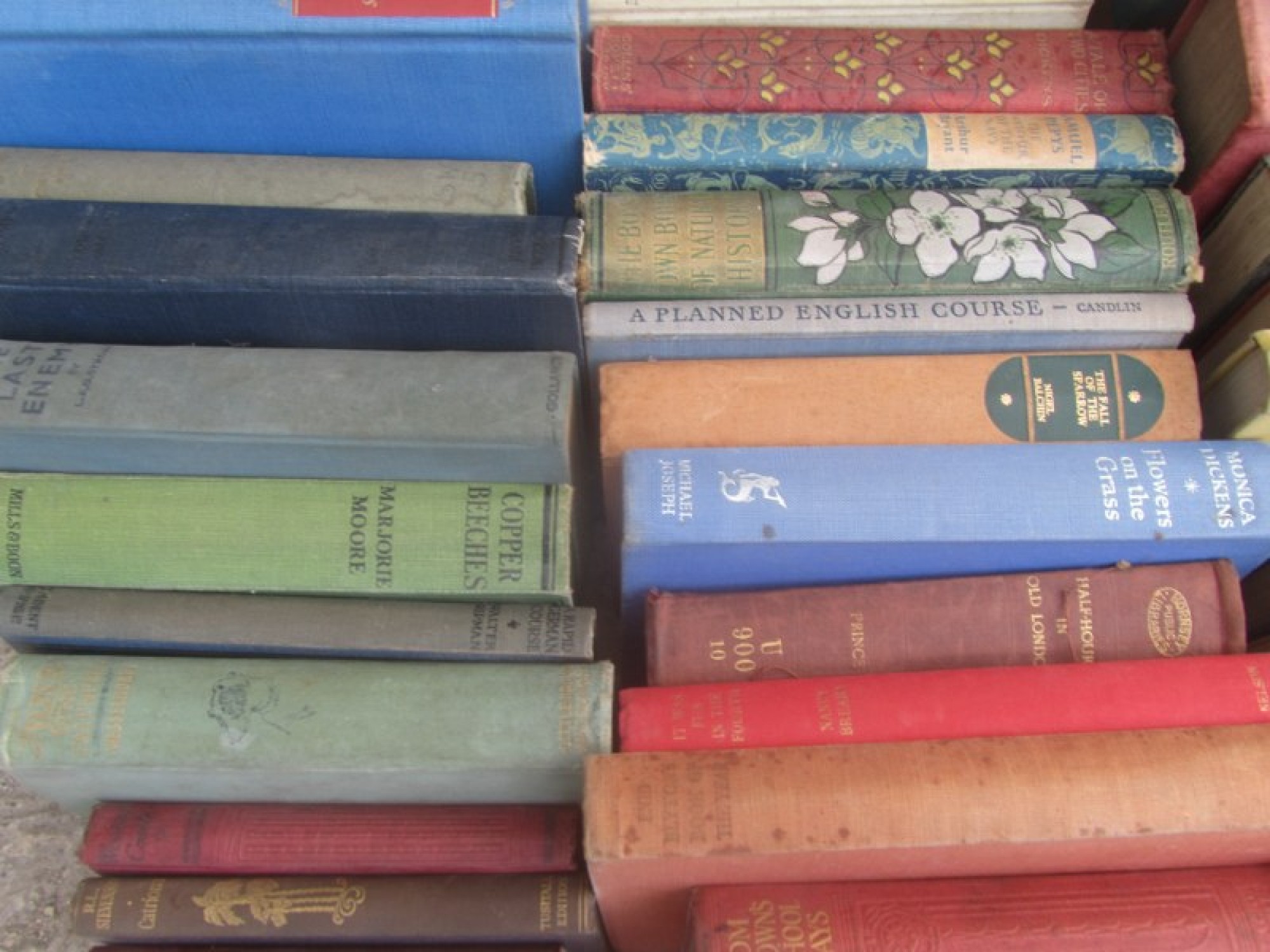 A JOB LOT OF DECORATIVE VINTAGE BOOKS. MOSTLY FROM THE EARLY-MID 20th CENTURY. FOR SALE AS A WHOLE LOT, GREAT FOR FILLING A BOOKCASE. OVER 90 BOOKS.