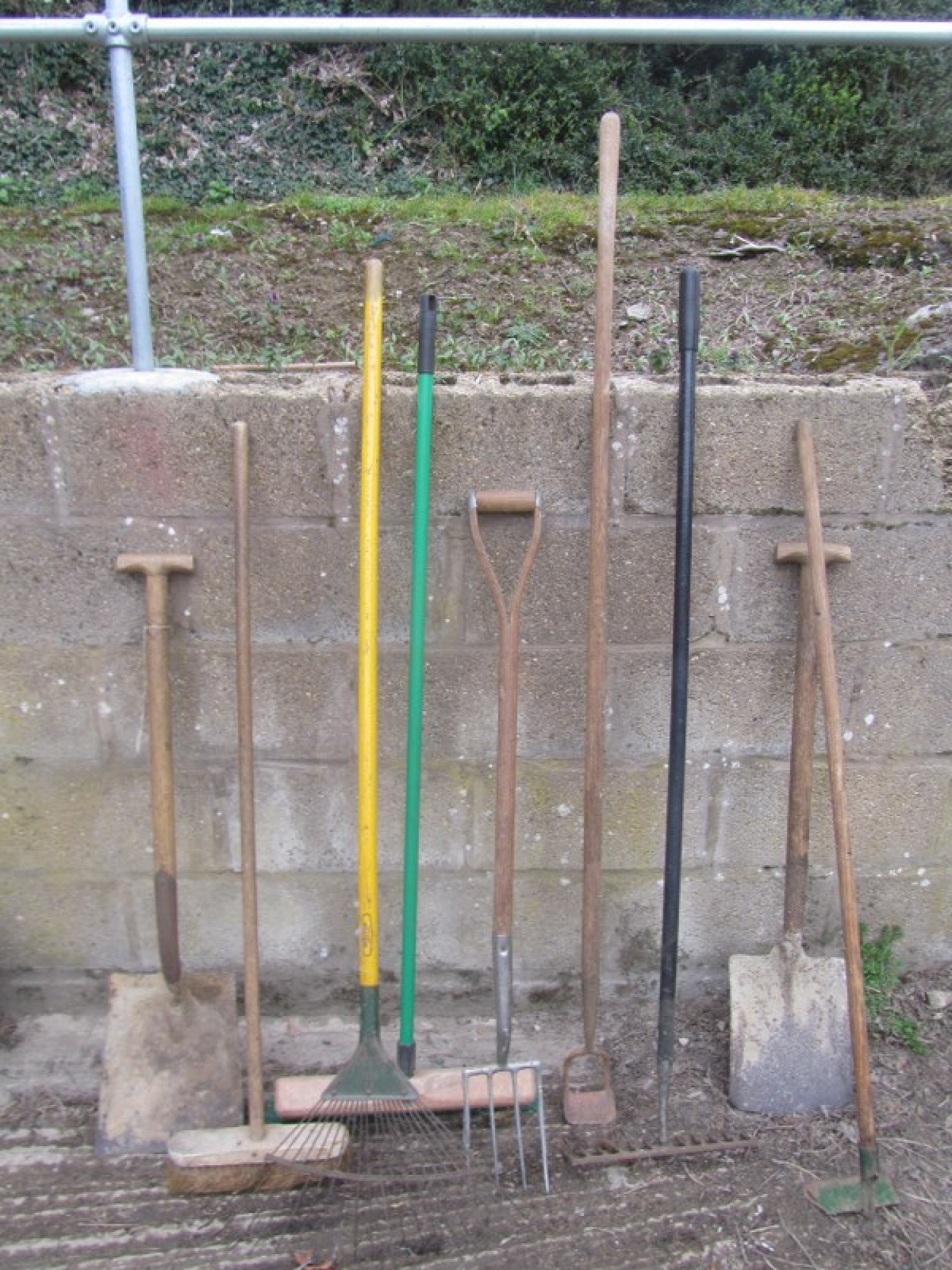 A LARGE JOB LOT OF GARDEN TOOLS, FOR SALE A JOB LOT. SOME OF THE OLDER TOOLS HAVE SUFFERED WITH WOOD WORM IN THE PAST, IT IS PROBABLY LONG DEAD! BUT I WOULD RECOMMEND TREATING IT TO BE SURE.