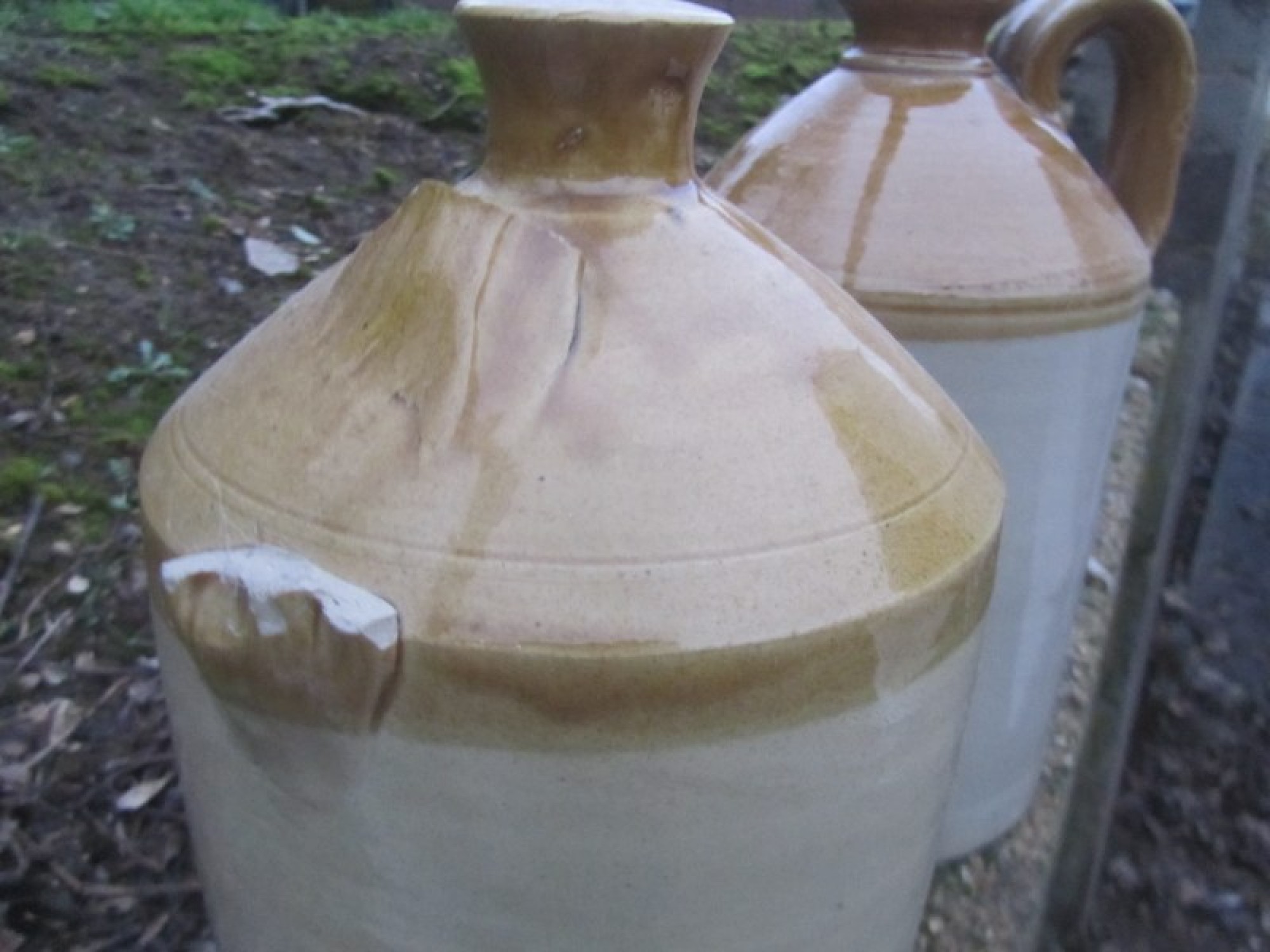 Items for Sale PAIR OF LARGE ANTIQUE STONEWARE FLAGGONS Share: View Larger Image View Larger Image Select to enlarge £ 15 - THE PAIR A PAIR OF LARGE ANTIQUE STONEWARE FLAGGONS. ONE HAS A BROKEN HANDLE. ADDITIONAL DETAILS RESERVE ITEM Condition:AVERAGE Height:38 cms Length:21 cms Depth:21 cms Item Number:41011 * Please complete all the fields below to send an enquiry about this product. Please reserve this item for me… Reset Send