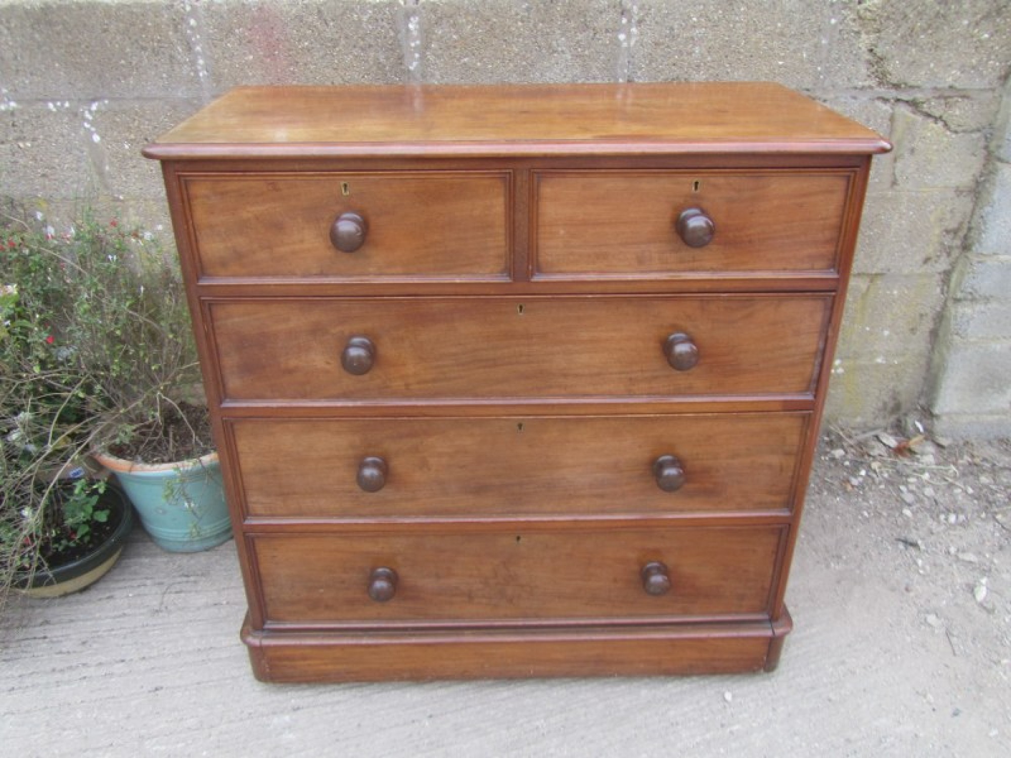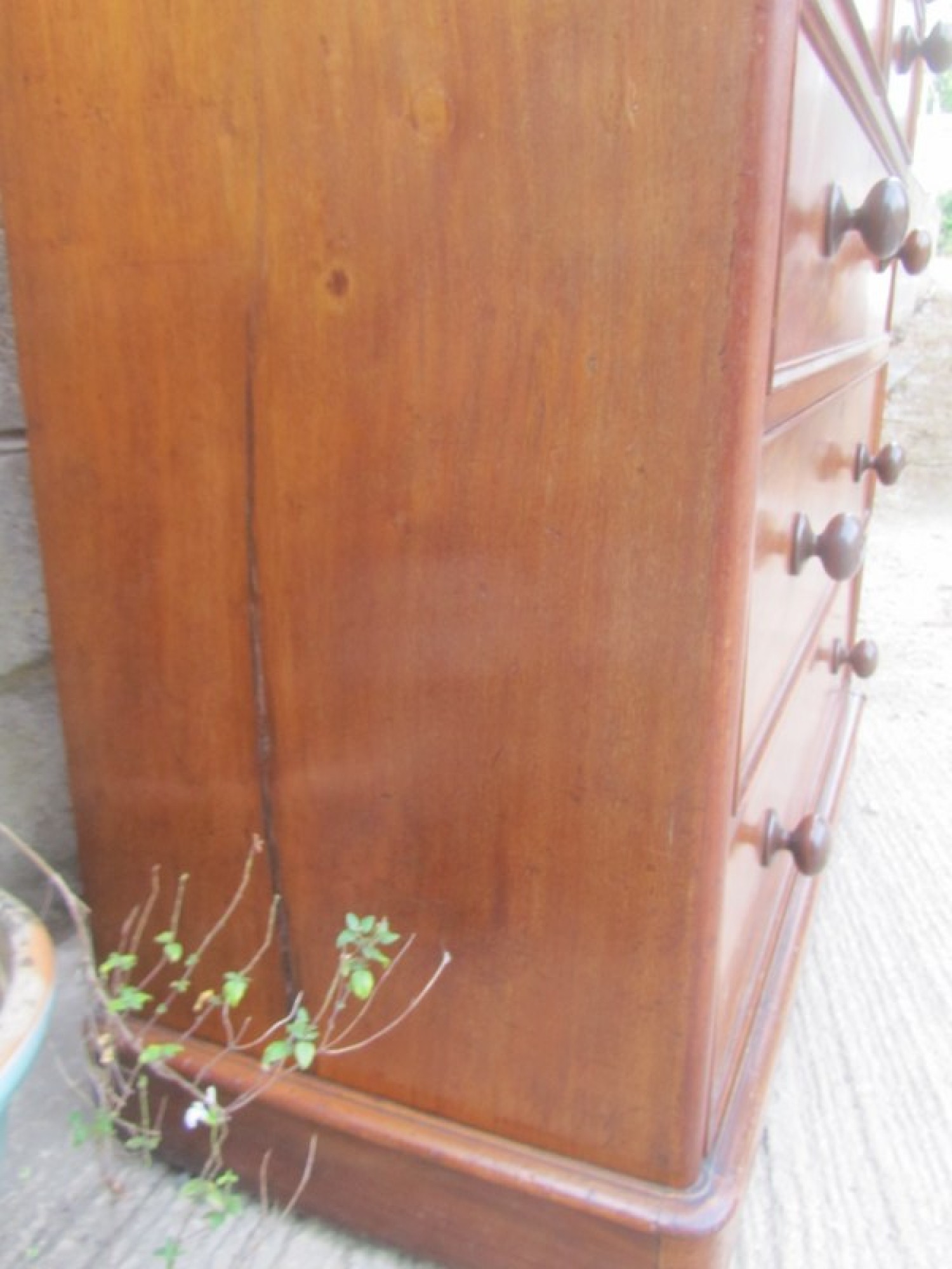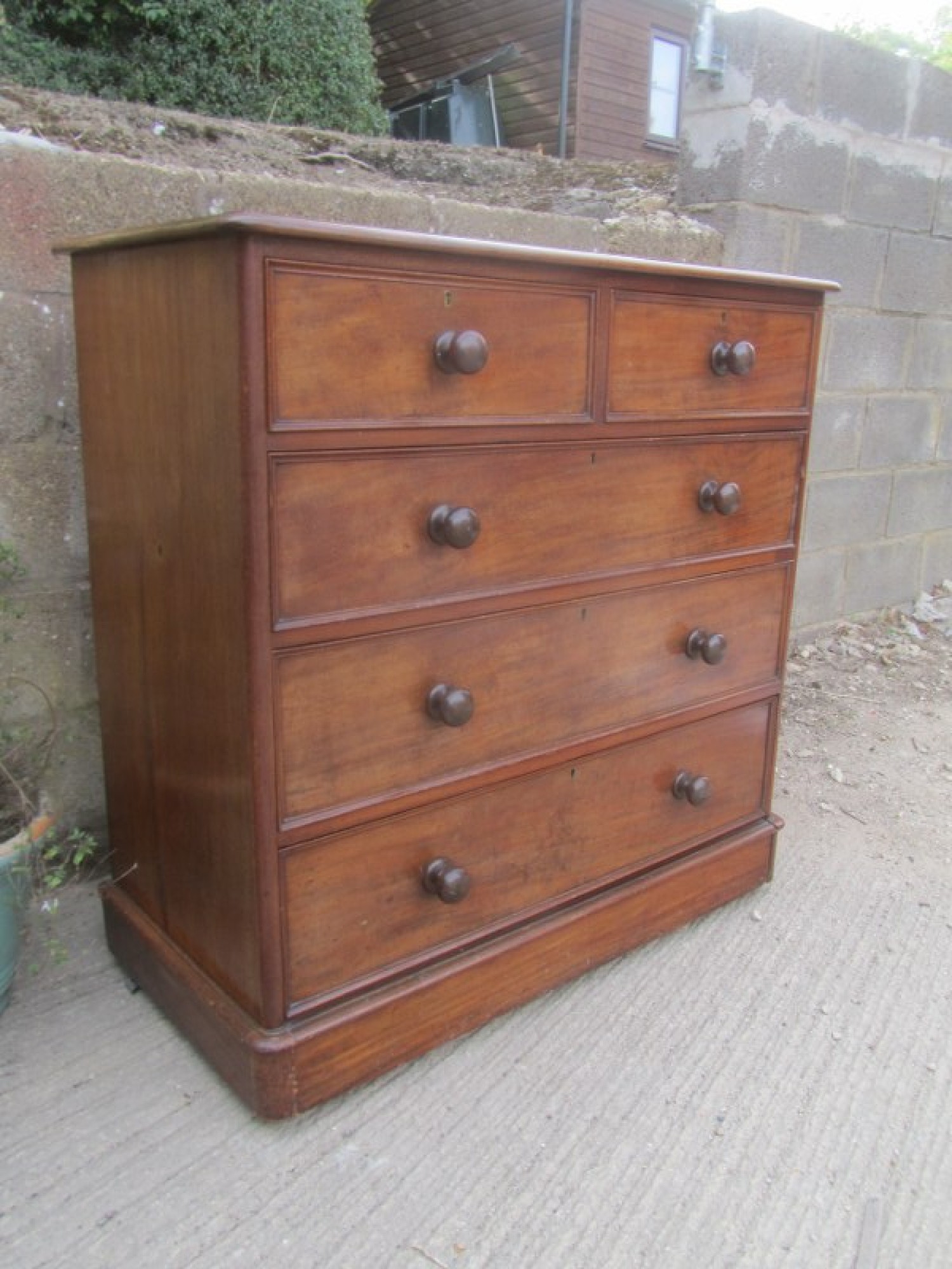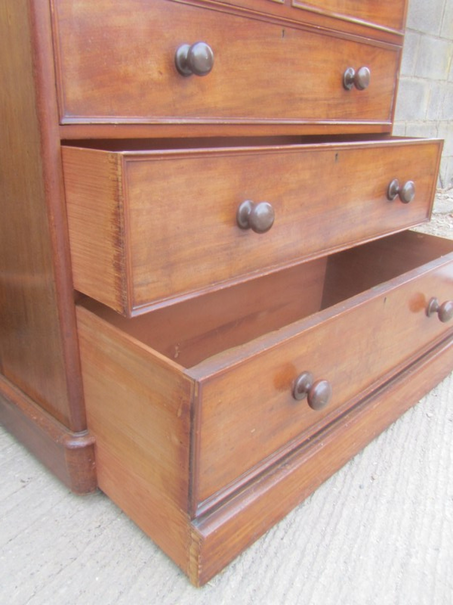 THIS IS A LARGE CHEST OF DRAWERS FROM THE VICTORIAN PERIOD. IT HAS 2 SMALL DRAWERS OVER 3 LARGE GRADUATED DRAWERS. MAHOGANY VENEER.