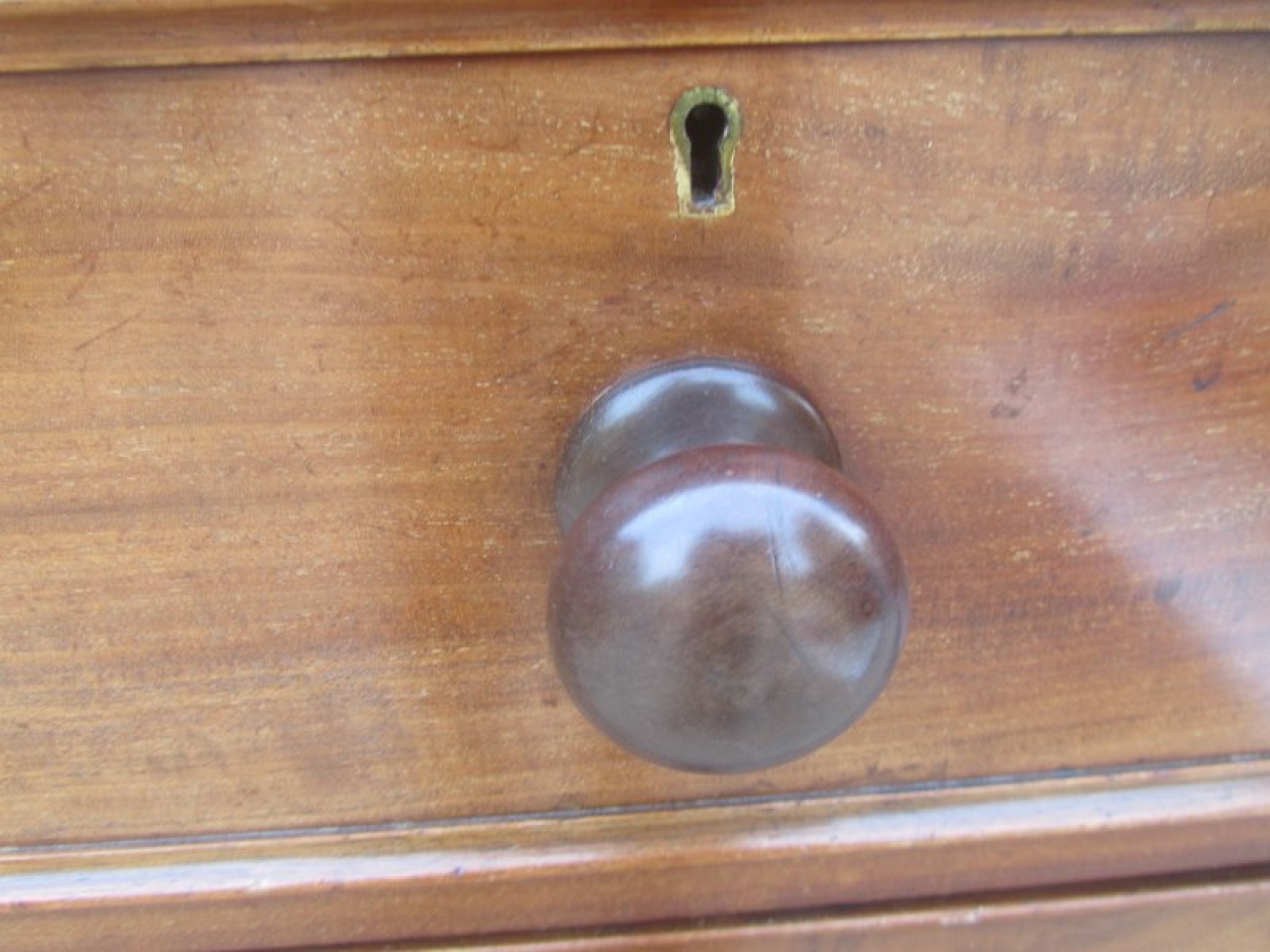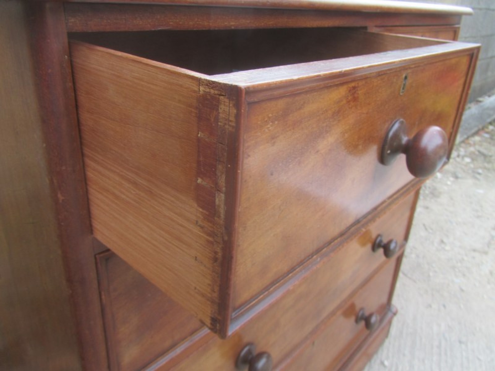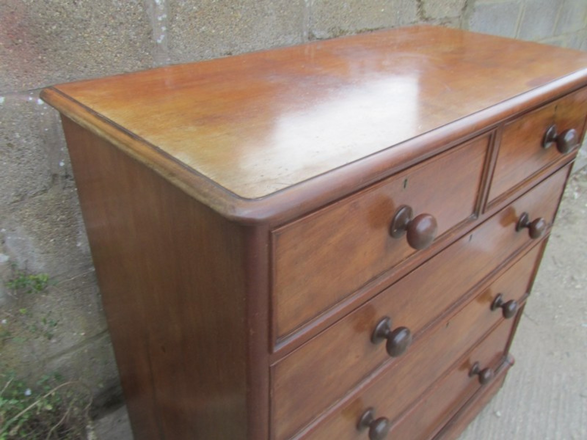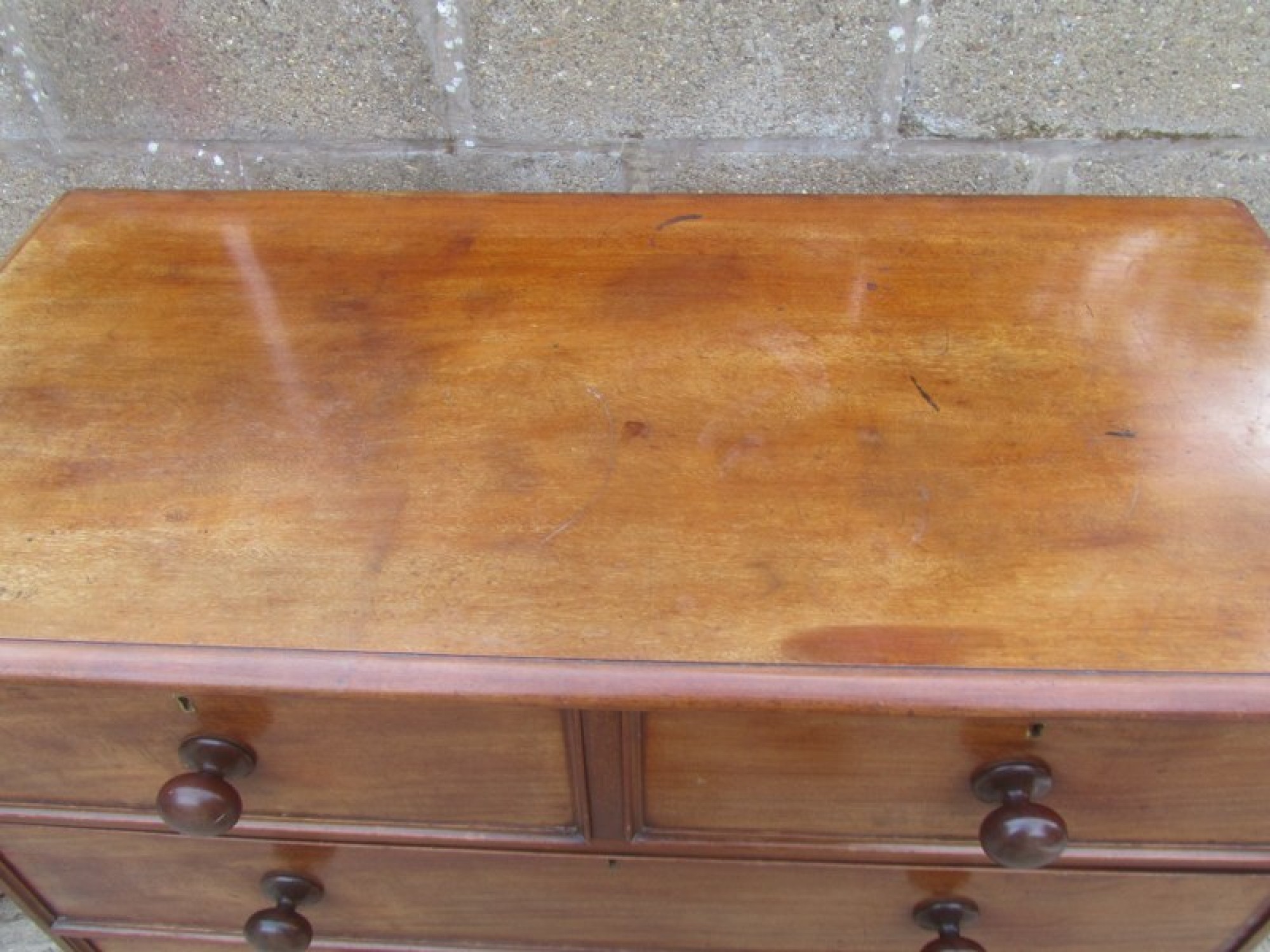 THIS IS A LARGE CHEST OF DRAWERS FROM THE VICTORIAN PERIOD. IT HAS 2 SMALL DRAWERS OVER 3 LARGE GRADUATED DRAWERS. MAHOGANY VENEER.