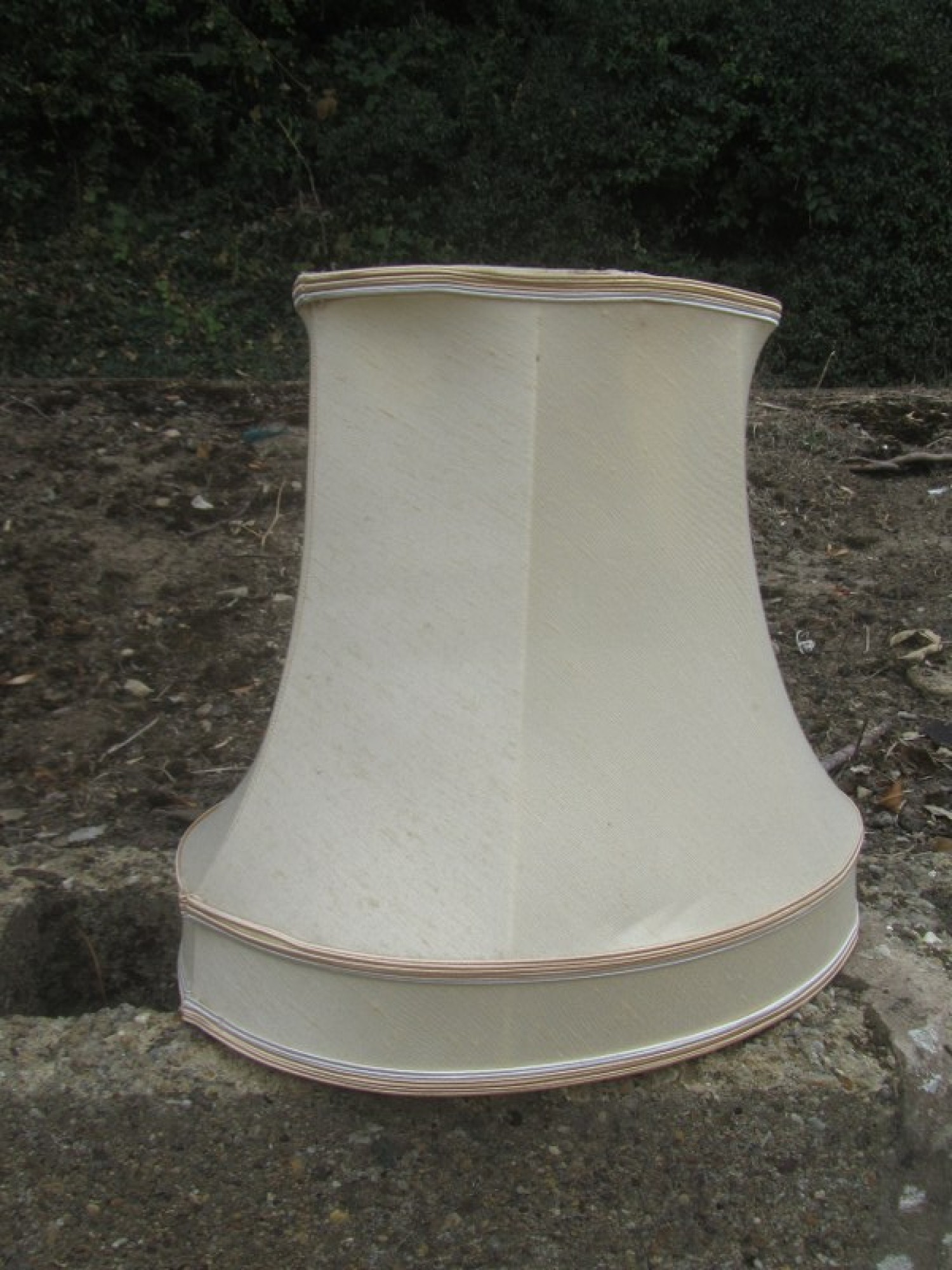 A SMALL LAMP SHADE FOR A TABLE LAMP OR STANDARD LAMP. AVERAGE CONDITION. LARGE RING TO FIT ON A LAMP.