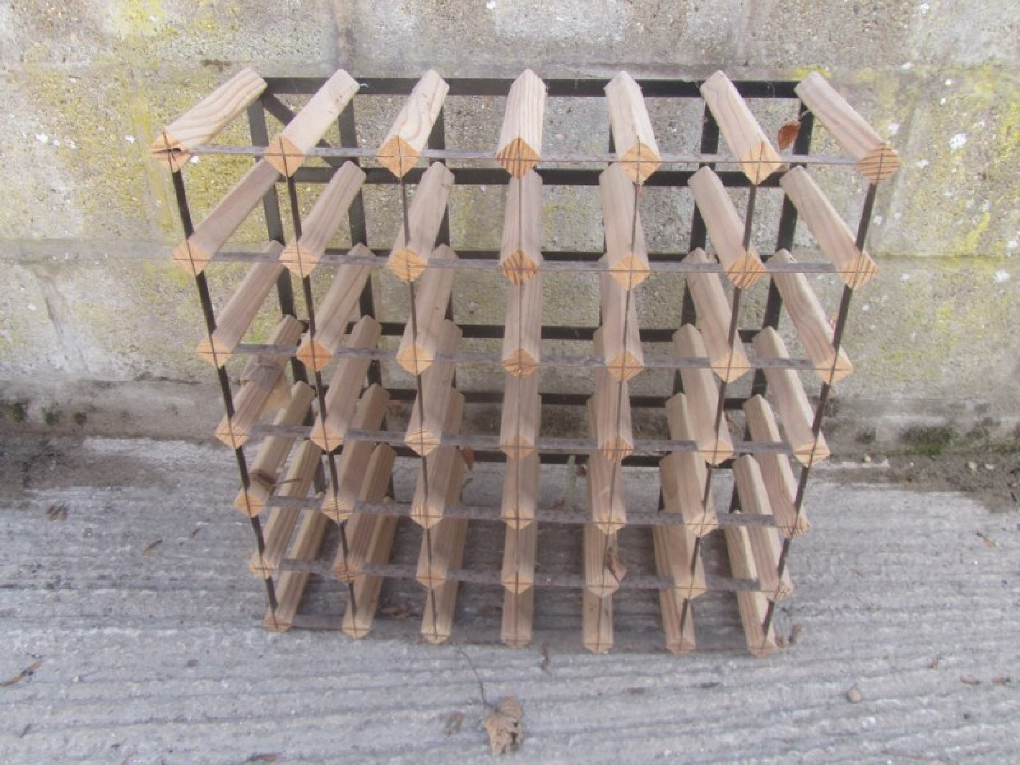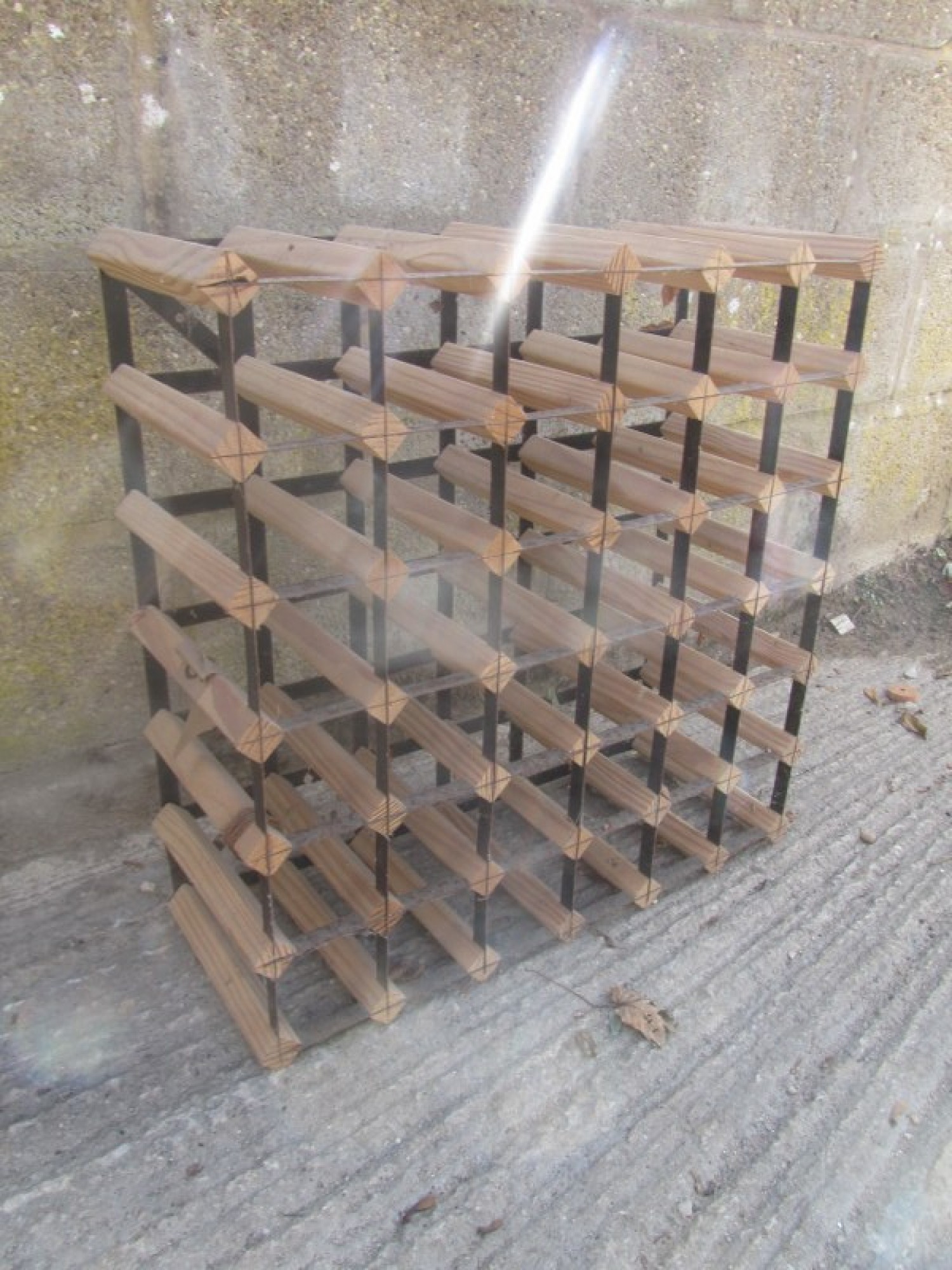 A SIMPLE METAL FRAMED WINE RACK. FLOOR STANDING, IDEALLY NEEDS FIXING TO A WALL TO AVOID IT TIPPING OVER!