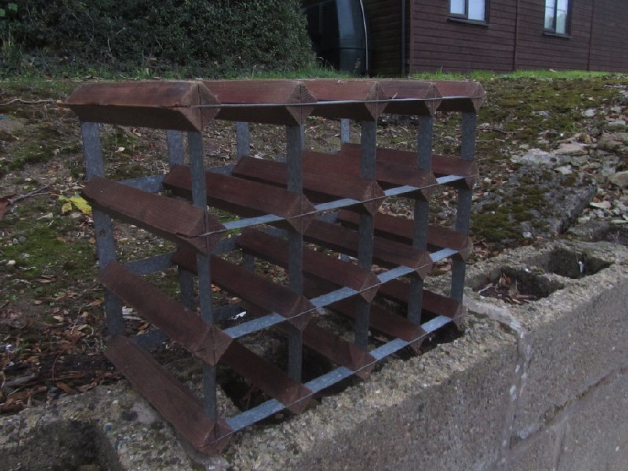 A SIMPLE METAL FRAMED WINE RACK. FLOOR STANDING, IDEALLY NEEDS FIXING TO A WALL TO AVOID IT TIPPING OVER!