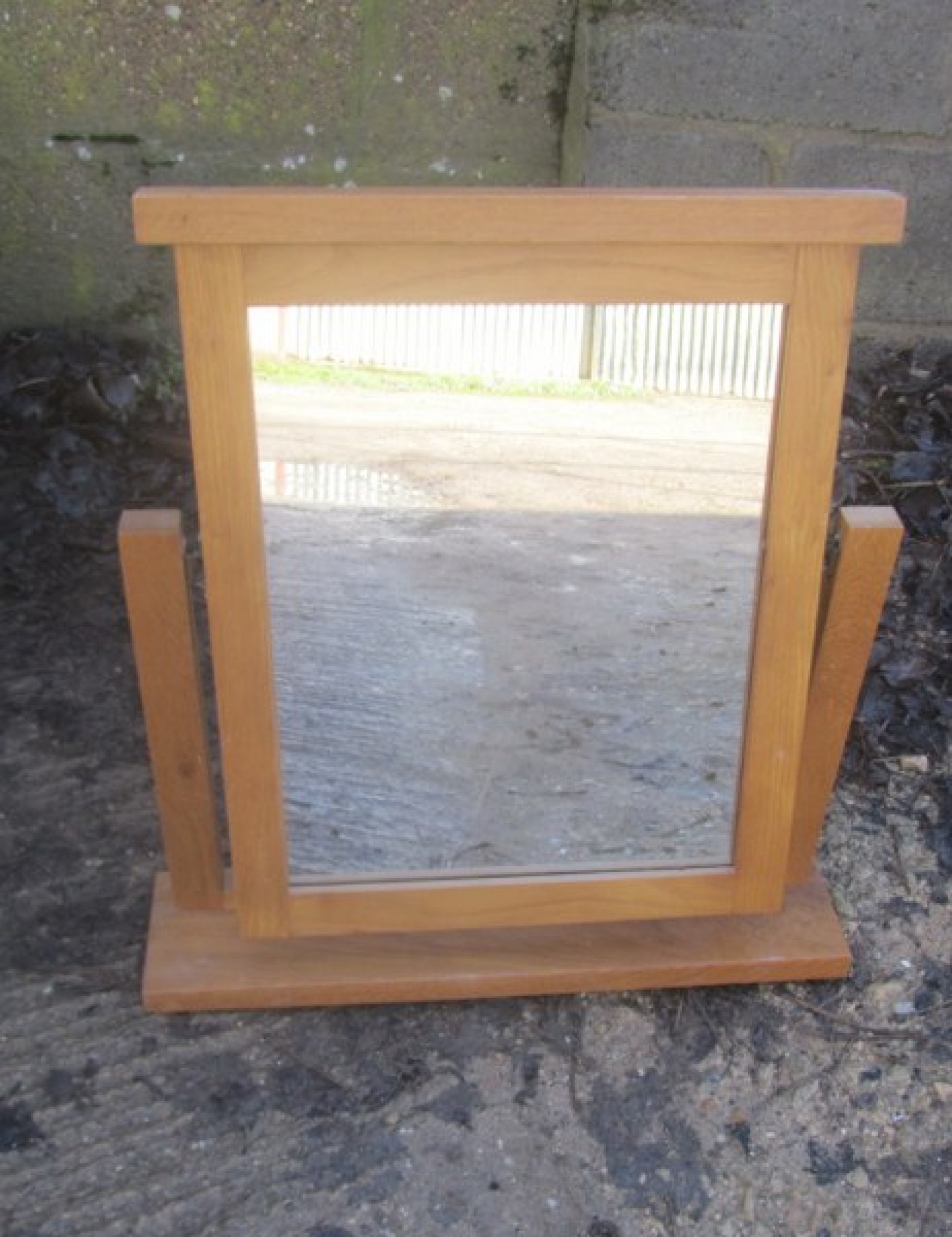 A MODERN SWING MIRROR, IT IS IN OAK, STRONG AND STURDY. GOOD QUALITY. IN GOOD CLEAN CONDITION.