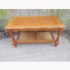 A MODERN COFFEE TABLE, OAK VENEER, IT IS STRONG AND STURDY. THE TABLE TOP IS VENEERED, IN AVERAGE CONDITION. SOME WEAR AND MARKS.