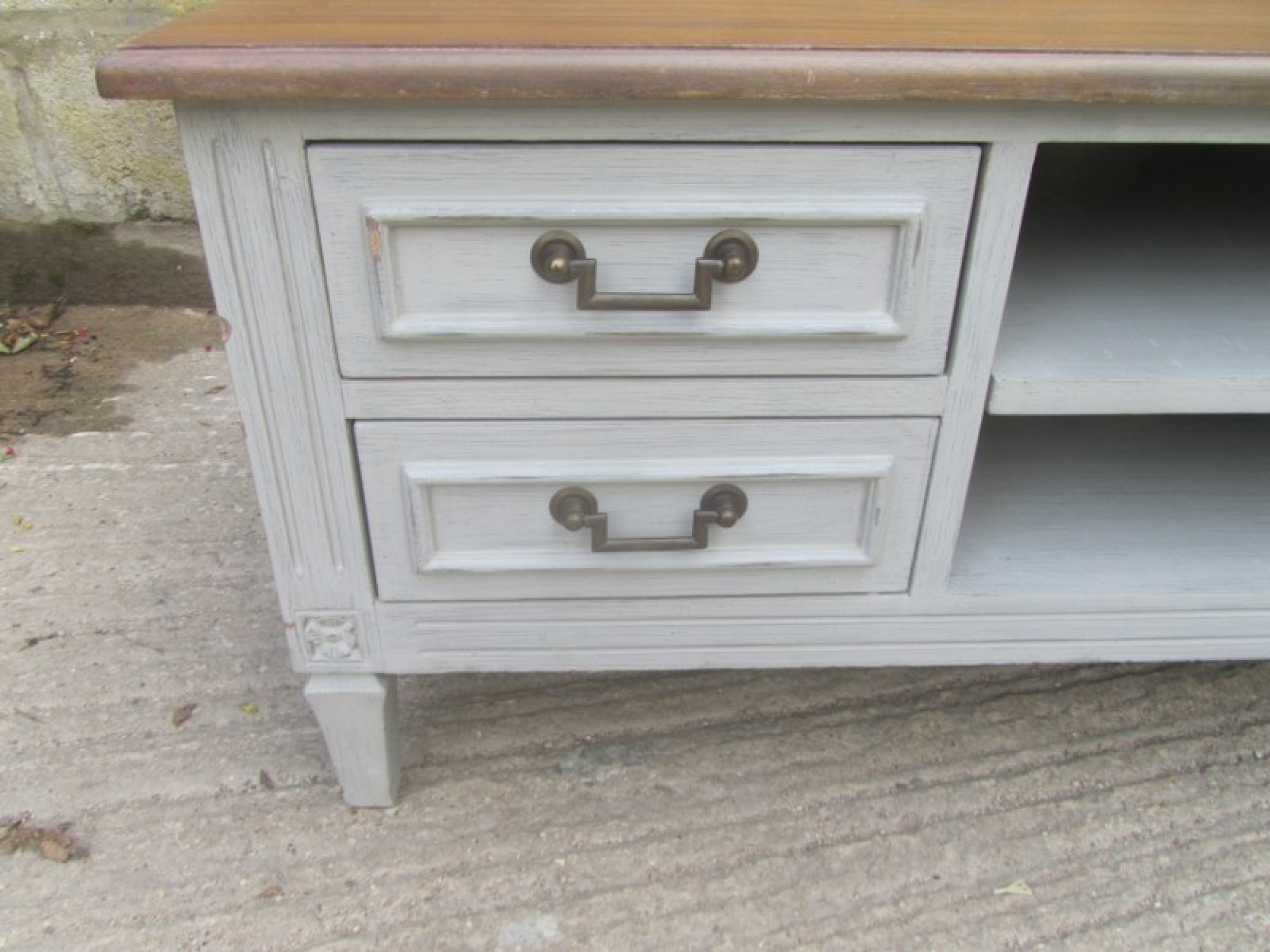 A MODERN TV UNIT / SIDEBOARD, IN A FRENCH STYLE, IT IS STRONG AND STURDY. PAINTED, SOME SCUFFS.